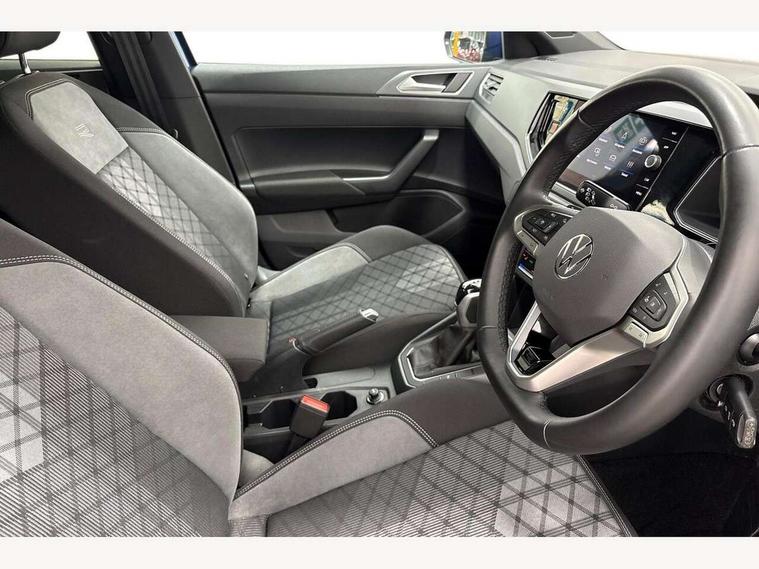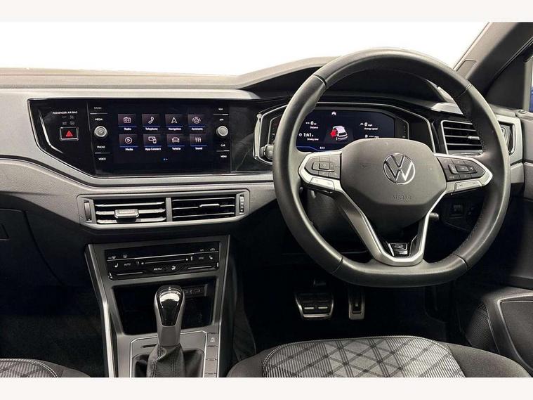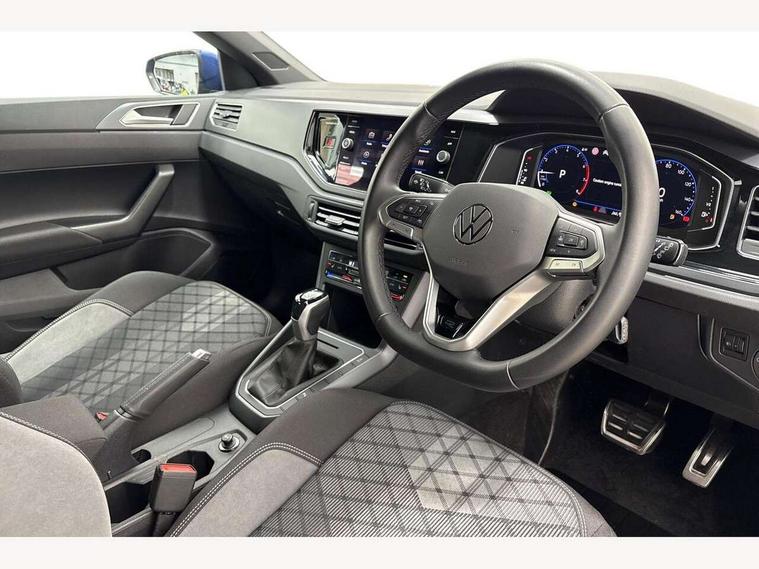 Adaptive cruise control with follow-to-stop and speed limiter, Advanced driver attention and drowsiness monitor, Bluetooth mobile phone interface, Digital Cockpit Pro with 10.25" Display, Dynamic road sign display, Emergency call service, Multifunction camera, Power assisted speed sensitive steering, Preparation for We connect and We connect plus, Speedo and rev counter, electronic odometer, trip, service interval display and fuel gauge, Standard rear axle, Travel Assist - Lane keeping system and traffic jam assist, Travel assist including emergency assist, Trip computer, Warning signal and warning light for front and rear seatbelts not fastened, Washer fluid level indicator, Wireless app connect, Front wheel drive, Rear shock absorpion, Start-stop system with battery regeneration (recuperation - energy recovery during braking), DAB Digital radio, Diversity antenna for FM reception, Front and rear 6 speakers, Body colour bumpers, Body colour door handles, Electric front windows, Front scuff plates with R-Line logo, Heat insulating glass windscreen, Power folding adjustable/heated exterior mirrors and front passenger exterior mirror lowering function, Rear electric windows, Rear fog light, Rear side wing doors, Rear windscreen washer and wiper with interval delay, Third brake light, 12V power socket in centre console, 2 USB-C ports in the front, 2 USB-C charging sockets on the center console in the rear, 3 rear head restraints, 60/40 split folding rear seat and rear seat bench not split, Air care climatronic air conditoning system with active combination filter and 2-zone temperature control, Black roof lining, Carpet mats, front and rear, Chrome plated radiator grille inserts, air vent surrounds and light switch surrounds, Door and side trim panel, Driver and front passenger seat height adjustment, Driver/passenger sunvisors with illuminated vanity mirrors, Front centre armrest, Front footwell illumination, Front seat backrest storage pockets, Front sports comfort seats, Handbrake lever handle in leather, Headliner in recycled material, Isofix child seat preparation easy-fit (for two outer rear seats, and front passenger seat) compatible with I-size, Karoso artvelours cloth upholstery, Leather trimmed gear knob, LED interior light with switch off delay and dimmer, 2 reading lights front and rear, Luggage compartment cover, Luggage compartment floor, Luggage compartment lighting, Lumbar adjustment for front seats, Single front passenger seat, Stainless steel pedals, Standard pedal cluster, Three spoke leather wrapped multifunction steering wheel with shifting paddles, Light and sight pack - Polo R-Line/Black Edition, 3 point height adj front seatbelts + pretensioners, 3x3 point rear seatbelts, ABS, Driver and front passenger airbag with front passenger airbag deactivation, Drivers and front passengers safety optimised head restraints, ESC (Electronic stability control) + EDL (Electronic Differntial lock) and ASR (Traction control), Extended and predictive pedestrian/ cyclist protection, Front curtain and side airbags with center airbag, Front/rear disc brakes, Hill hold control, Manual child lock in rear doors, Single tone horn, Tyre pressure loss indicator, Alarm with interior protection, Anti-theft alarm system with interior monitoring, backup horn, and towing protection, Anti-theft wheel bolts, Electronic engine immobiliser, Chrome applications on rotary light, mirror adjustment, window regulator switches, outlet with frame in black, Dark grey anodised matt decorative inserts in dash and front door panels, 16" Coventry alloy wheels, Low rolling resistance tyres,
