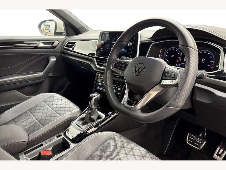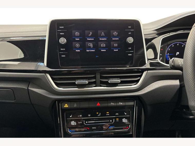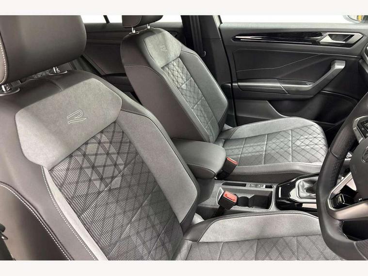 10.25" Digital cockpit pro, Advanced driver attention and drowsiness monitor, Emergency call service, Lane keeping system Lane Assist, Mobile phone interface, Modified key software - reduce switch off time for key status change to Long no motion, Online services, Park assist including front and rear parking sensors, Service interval indicator, Tailgate/trunk lid release from outside, Think blue trainer driver tips and journey analysis, Warning sound and light for front seatbelts unfastened, Wireless app connect, Battery regeneration during braking, Start/stop function with battery regeneration, DAB Digital radio, Diversity antenna for FM reception, Front and rear 6 speakers, Music playback - MP3, WMA and AAC files, Premium USB cable in choice of either Apple or Android smartphone compatibility, SD card slot, Simultaneous pairing of 2 compatible mobile devices, Title and cover art display, We Connect and We Connect Plus functionality, Auto dimming interior rear view mirror, Automatic hazard lights activation under emergency braking, Automatic headlight control with LED separate daytime running lights with coming/leaving home function, Body coloured exterior mirror housings and door handles, Electrically adjustable and heated door mirrors, Extended roof spoiler, Exterior mirrors aspherical on driver side, convex on front passenger side, External USB type C socket and charging sockets, Front windscreen wiper with intermittent wipe and 4 position delay, Heated rear window, LED 3rd brake light, LED rear combination lamps, LED rear number plate lights, Power windows with comfort operation and circuit breaker, Privacy glass for rear side windows and rear window, R-Line design body coloured bumpers, Rain sensor, Rear exhaust tailpipe, Rear fog light on one side and reversing lights on both sides, Rear side wing doors, Rear wash/wipe with intermittent wipe setting, Remote electrically foldable door mirrors, puddle lights and reverse activated passenger's door mirror, 12V power socket in centre console, 3 rear head restraints, 3 seat bench in 2nd row, 4 load lashing points in luggage compartment, Air care climatronic air conditoning system with active combination filter and 2-zone temperature control, Black roof lining, Chrome plated decorative trims, Chrome plated radiator grille inserts, air vent surrounds and light switch surrounds, Door and side trim panel with leatherette insert, Front + rear carpet mats, Front centre armrest, Front cupholders x 2, Front footwell illumination, Front reading light, Front scuff plates with R Line logo, Front seat back storage pockets, Glove compartment door with light, Instrument lighting, white adjustable panel illumination, Interior ambient lighting and surround lighting, Interior light delay, Isofix child seat preparation, Leather gearshift handle, Load-through provision with cup holder when folded down ('Unsplit rear seat bench, split folding backrest, with centre armrest), Luggage compartment lighting, Single front passenger seat, Stainless steel pedals, Storage compartment in left and right luggage area, Storage compartment in rear doors, Storage compartments in driver and front passenger doors, Sunvisors with illuminated vanity mirrors, Variable boot floor, height adjustable and removable, Driver assistance pack without proactive passenger protection - T-Roc, 3 point height adj front seatbelts + pretensioners, 3 point seatbelts in outer rear with ECE label, ABS, Child locks on rear doors, City emergency braking and pedestrian monitoring, Driver and front passenger airbag with front passenger airbag deactivation, Driver and front passenger safety-optimised head restraints, Drivers seatbelt reminder, Electronic parking brake, Electronic Stability Control (ESC) inc EDL (Electronic Differential Lock) and ASR (Traction Control), Front and rear passengers curtain airbag system including front side airbags, Hill start assist, Predictive pedestrian protection, Rear disc brakes, Two tone horn, Tyre pressure loss indicator, Volkswagen roadside assistance, Piano black decorative inserts in dashboard and front door trim panels, Trims for alloy wheels,