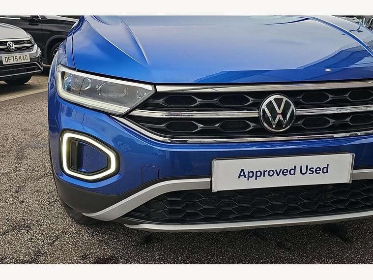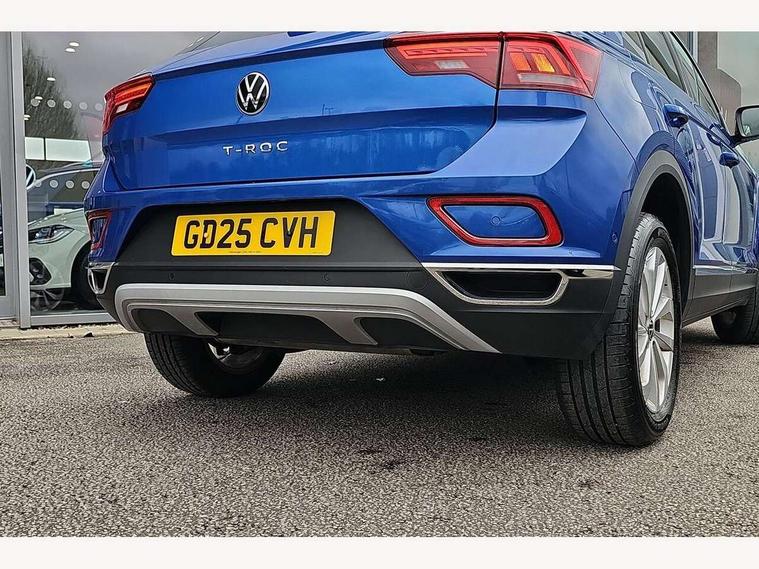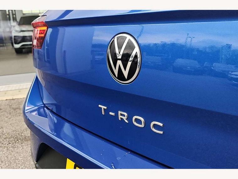 10.25" Digital cockpit pro, Advanced driver attention and drowsiness monitor, Emergency call service, Lane keeping system Lane Assist, Mobile phone interface, Modified key software - reduce switch off time for key status change to Long no motion, Online services, Park assist including front and rear parking sensors, Power assisted speed sensitive steering, Service interval indicator, Tailgate/trunk lid release from outside, Think blue trainer driver tips and journey analysis, Warning sound and light for front seatbelts unfastened, Wireless app connect, Battery regeneration during braking, Start/stop function with battery regeneration, DAB Digital radio, Diversity antenna for FM reception, Front and rear 6 speakers, Music playback - MP3, WMA and AAC files, Premium USB cable in choice of either Apple or Android smartphone compatibility, SD card slot, Simultaneous pairing of 2 compatible mobile devices, Title and cover art display, We Connect and We Connect Plus functionality, Auto dimming interior rear view mirror, Automatic hazard lights activation under emergency braking, Automatic headlight control with LED separate daytime running lights with coming/leaving home function, Body colour sports bumpers with silver metallic underbody fascia, Body coloured exterior mirror housings and door handles, Dynamic headlight range control with self adjusting whilst driving, Electrically adjustable and heated door mirrors, Extended roof spoiler, Exterior mirrors aspherical on driver side, convex on front passenger side, External USB type C socket and charging sockets, Front windscreen wiper with intermittent wipe and 4 position delay, Heated rear window, LED 3rd brake light, LED rear combination lamps, LED rear number plate lights, Light mode for poor weather, rain, fog or snow, Power windows with comfort operation and circuit breaker, Privacy glass for rear side windows and rear window, Rain sensor, Rear exhaust tailpipe, Rear fog light on one side and reversing lights on both sides, Rear side wing doors, Rear wash/wipe with intermittent wipe setting, Remote electrically foldable door mirrors, puddle lights and reverse activated passenger's door mirror, 12V power socket in centre console, 3 rear head restraints, 3 seat bench in 2nd row, 4 load lashing points in luggage compartment, Air care climatronic air conditoning system with active combination filter and 2-zone temperature control, Chrome plated radiator grille inserts, air vent surrounds and light switch surrounds, Door and side trim panel with leatherette insert, Drawer under drivers seat, Front + rear carpet mats, Front centre armrest, Front comfort sports seats, Front cupholders x 2, Front footwell illumination, Front seat back storage pockets, Glove compartment door with light, Instrument lighting, white adjustable panel illumination, Interior ambient lighting and surround lighting, Interior light delay, Isofix child seat preparation, Leather gearshift handle, LED interior light with switch off delay/dimmer and 2 front/rear LED reading lights, Load-through provision with cup holder when folded down ('Unsplit rear seat bench, split folding backrest, with centre armrest), Luggage compartment lighting, Non-folding front passenger seat backrest, Single front passenger seat, Storage compartment in left and right luggage area, Storage compartment in rear doors, Storage compartments in driver and front passenger doors, Sunvisors with illuminated vanity mirrors, Variable boot floor, height adjustable and removable, Driver assistance pack without proactive passenger protection - T-Roc, 3 point height adj front seatbelts + pretensioners, 3 point seatbelts in outer rear with ECE label, ABS, Child locks on rear doors, City emergency braking and pedestrian monitoring, Driver and front passenger airbag with front passenger airbag deactivation, Driver and front passenger safety-optimised head restraints, Drivers seatbelt reminder, Electronic parking brake, Electronic Stability Control (ESC) inc EDL (Electronic Differential Lock) and ASR (Traction Control), Front and rear passengers curtain airbag system including front side airbags, Predictive pedestrian protection, Rear disc brakes, Two tone horn, Tyre pressure loss indicator, Volkswagen roadside assistance, Deep iron grey decorative inserts in dashboard, centre console and front door trim panels, Trims for alloy wheels,