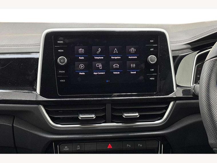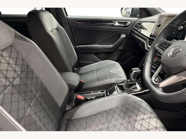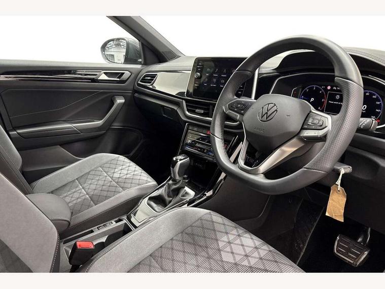10.25" Digital cockpit pro, Advanced driver attention and drowsiness monitor, Dynamic road sign display, Emergency call service, Lane keeping system Lane Assist, Mobile phone interface, Modified key software - reduce switch off time for key status change to Long no motion, Online services, Park assist including front and rear parking sensors, Service interval indicator, Tailgate/trunk lid release from outside, Think blue trainer driver tips and journey analysis, Warning sound and light for front seatbelts unfastened, Wireless app connect, Battery regeneration during braking, Start/stop function with battery regeneration, DAB Digital radio, Diversity antenna for FM reception, Front and rear 6 speakers, Music playback - MP3, WMA and AAC files, Premium USB cable in choice of either Apple or Android smartphone compatibility, SD card slot, Simultaneous pairing of 2 compatible mobile devices, Title and cover art display, We Connect and We Connect Plus functionality, Auto dimming interior rear view mirror, Automatic hazard lights activation under emergency braking, Automatic headlight control with LED separate daytime running lights with coming/leaving home function, Body coloured exterior mirror housings and door handles, Electrically adjustable and heated door mirrors, Extended roof spoiler, Exterior mirrors aspherical on driver side, convex on front passenger side, External USB type C socket and charging sockets, Front windscreen wiper with intermittent wipe and 4 position delay, Heated rear window, LED 3rd brake light, LED rear combination lamps, LED rear number plate lights, Power windows with comfort operation and circuit breaker, Privacy glass for rear side windows and rear window, R-Line design body coloured bumpers, Rain sensor, Rear exhaust tailpipe, Rear fog light on one side and reversing lights on both sides, Rear side wing doors, Rear wash/wipe with intermittent wipe setting, Remote electrically foldable door mirrors, puddle lights and reverse activated passenger's door mirror, 12V power socket in centre console, 3 rear head restraints, 3 seat bench in 2nd row, 4 load lashing points in luggage compartment, Air care climatronic air conditoning system with active combination filter and 2-zone temperature control, Black roof lining, Chrome plated decorative trims, Chrome plated radiator grille inserts, air vent surrounds and light switch surrounds, Door and side trim panel with leatherette insert, Front + rear carpet mats, Front centre armrest, Front cupholders x 2, Front footwell illumination, Front reading light, Front scuff plates with R Line logo, Front seat back storage pockets, Glove compartment door with light, Instrument lighting, white adjustable panel illumination, Interior ambient lighting and surround lighting, Interior light delay, Isofix child seat preparation, Leather gearshift handle, Load-through provision with cup holder when folded down ('Unsplit rear seat bench, split folding backrest, with centre armrest), Luggage compartment lighting, Single front passenger seat, Stainless steel pedals, Storage compartment in left and right luggage area, Storage compartment in rear doors, Storage compartments in driver and front passenger doors, Sunvisors with illuminated vanity mirrors, Variable boot floor, height adjustable and removable, Driver assistance pack without proactive passenger protection - T-Roc, 3 point height adj front seatbelts + pretensioners, 3 point seatbelts in outer rear with ECE label, ABS, Child locks on rear doors, City emergency braking and pedestrian monitoring, Driver and front passenger airbag with front passenger airbag deactivation, Driver and front passenger safety-optimised head restraints, Drivers seatbelt reminder, Electronic parking brake, Electronic Stability Control (ESC) inc EDL (Electronic Differential Lock) and ASR (Traction Control), Front and rear passengers curtain airbag system including front side airbags, Hill start assist, Predictive pedestrian protection, Rear disc brakes, Two tone horn, Tyre pressure loss indicator, Volkswagen roadside assistance, Piano black decorative inserts in dashboard and front door trim panels, Trims for alloy wheels,
