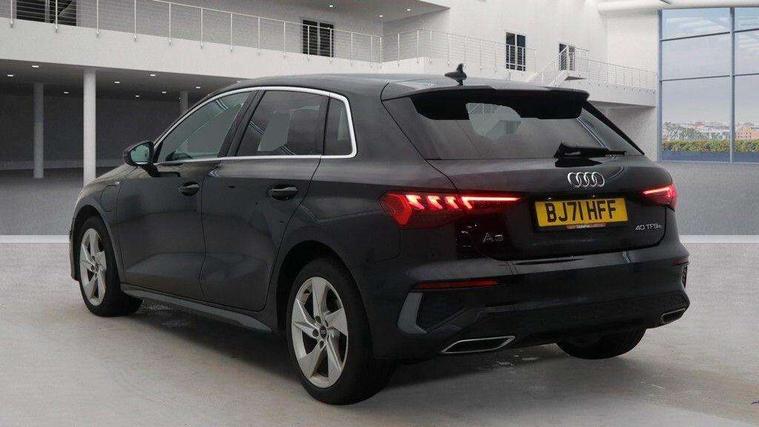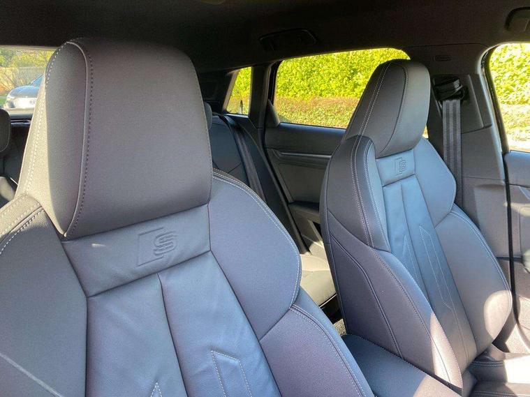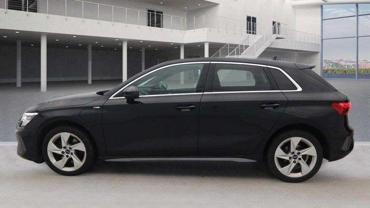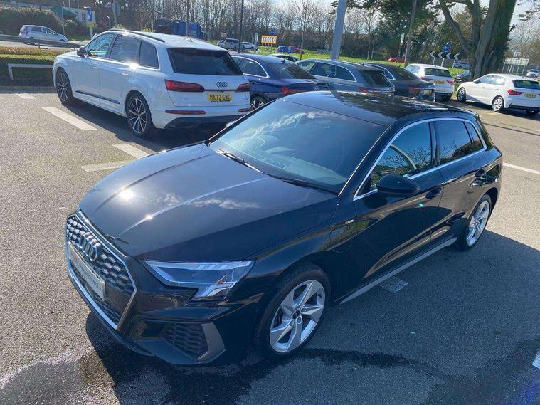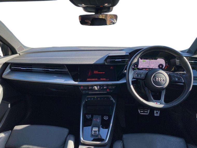 Audi connect emergency call and service, Audi drive select (Auto, Comfort, Dynamic, Efficiency and Individual), Audi smartphone interface, Audi Virtual Cockpit - 10.25" digital and colour instrument cluster, Automatic start/stop system with recuperation, Bluetooth interface, Collision avoidance assistant, Electromechanical power speed sensitive steering, Lane departure warning system, MMI Navigation Plus with high resolution 10.1" colour touch screen display, Service indicator, Trip computer, Voice control system with natural language interaction, 3 pin 10 amp domestic charging cable, Type 2 mode 3 32 amp charging cable, Type 2 socket for AC charging, 2xUSB-C connection with data and charging functions, 6 passive loudspeakers, DAB Digital radio, 3rd brake light, Acoustic glass windscreen, Aluminium window trim, Auto dimming frameless rear view mirror, Electrically adjustable/heated/folding/auto dimming door mirrors with integrated LED indications + kerb view function for passenger side, Front electric windows, Illuminated aluminium inserts front door sills with S logo, LED daytime running lights, LED headlights with LED rear lights and dynamic rear indicators, Light and rain sensors, Privacy glass - dark tinted rear window, rear door and side windows, Rear electric windows, Rear side air outlets in grained matt black, Rear wiper, S line bumpers, S roof spoiler, 12V socket and storage compartment in front centre console, 40/20/40 split folding rear seat bench with cupholder, Black cloth headlining, Dual zone electronic climate control, Front and rear centre armrest in leather, Front and rear headrests, Front/rear floor mats, Height and reach adjustable steering wheel, Interior lighting - glove compartment light and right hand side, Luggage compartment floor covering, Manual boot compartment lid, Manually adjustable front seats, Seat side bolsters, Stainless steel pedals and front footrest, Twin leather upholstery with front sports seats S embossed logo, Aluminium interior elements pack - A3 Sportback, S line styling pack - A3 Sportback, 3x3 point rear seat belts, Driver and front passenger airbag with passenger airbag deactivation, Electronic Stabilisation Control (ESC) including ABS, ASR and EDL, First aid kit with warning triangle and 2 safety vests, Front side airbags with head airbags and interaction airbag, Hill hold assist, Pre-sense front with pedestrian and cyclist detection, Seatbelt monitoring, Tyre pressure loss indicator, Anti theft alarm, Anti-theft wheel bolts, Electronically operated child lock, Immobiliser, Remote control central locking, Accent surfaces in the dashboard and centre console in platinum grey silk effect paint finish, Dark spectrum aluminium inlays, Tool kit, Tyre repair kit,
