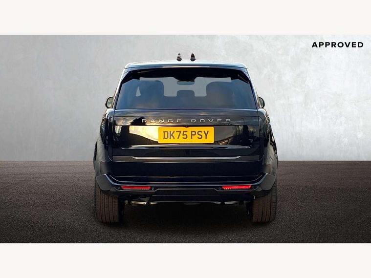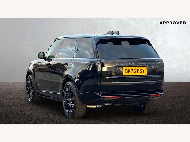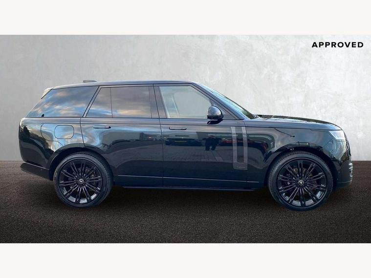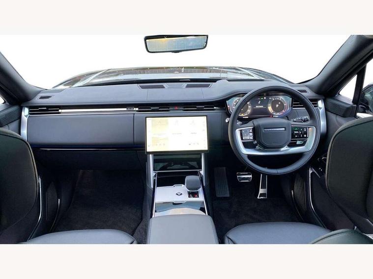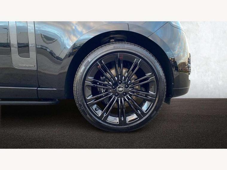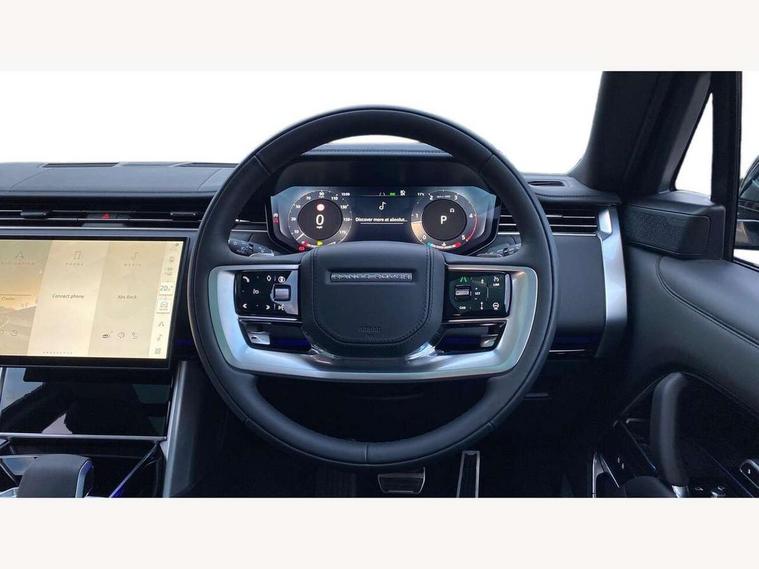 13.1" Touchscreen, 3D surround camera inc frwd traffic detection, vehicle clearance guidance, 3D view, clearsight ground view, manoevure light, 360 parking aid, wade sensing, Adaptive cruise control with steering assist, All Terrain Info Centre, All wheel steering, Blind spot assist, Bluetooth connectivity streaming, Configurable programs, Driver monitoring and response with driver facing camera & driver distraction monitor, Eco mode, Electric power assisted steering (EPAS), Emergency call service, Front and rear parking aid, Head up Display, Interactive driver display, Lane keep assist, Park assist, Powered gesture tailgate/boot lid, Rear collision monitor, Rear traffic monitor, Remote, Traffic sign recognition with adaptive speed limiter, Wi-Fi Enabled with data plan, Wireless Apple CarPlay/Android Auto, Wireless device charging, 8 speed automatic transmission, Active damper technology system, Adaptive dynamics, Adaptive off-road cruise control, All Wheel Drive (AWD), Automatic access height, Terrain Response 2 Auto, Twin speed transfer box, Digital Audio Broadcast radio-DAB, Meridian 1600W signature sound system, Pivi pro including smart settings, Connected navigation pro, nuance speech, USB socket, Acoustic laminated windscreen, Animated directional indicators, Automatic headlights, Automatic levelling headlights, Centre high mounted stop light, ClearSight interior rear view mirror, Electric windows with one touch open/close and anti trap, Engine cover, Flush deployable exterior door handles, Front and rear recovery eyes, Front fog lights including cornering lamp, Headlamp power wash, Heated rear window, Heated washer jets, Illuminated metal treadplates with Autobiography script, Laminated front and rear side glass, LED tail lights, Power fold, auto-dimming, heated door mirrors with approach lights, Rain sensing windscreen wipers, Rear boot, Rear fog lights, Rear side wing doors, Side repeater indicators in mirror, Solar attenuating windscreen, Standard bonnet, Winter wiper park position, 3 seat bench in 2nd row, 30 Colours configurable cabin lighting with 4 lighting zones, Air quality sensor, Auto folding loadspace cover, Bright metal pedals, Cabin air purification pro, Customer configurable single point entry, Driver and passenger front seat armrests, Easy boot loading, Ebony Carpet, Electric rear side window sunblinds, Four zone climate control, Front and rear cupholders, Front and rear grab handles, Front centre console refrigerator compartment, Front head restraints, Heated steering wheel, Hook in load space, Loadspace light, Luggage tie down in loadspace, Multifunction steering wheel, Rear centre armrest, Rear head restraints, Rear ISOFIX, Satin chrome gearshift paddles, Single front passenger seat, Soft close doors, SV bespoke carpet mats, Twin blade sunvisors with Illuminated vanity mirrors, Upper and lower glovebox, Online pack with data plan - Range Rover, 3x3 point rear seat belts, Anti-lock braking system (ABS), Black brake calipers, Brake hold function, Cornering brake control (CBC), Customer configurable autolock, DSC - Dynamic Stability Control, Electronic brake force distribution, Electronic parking brake, Electronic traction control, Emergency braking, Front airbags with passenger seat occupant detector, Front side airbags, Hill descent control, Hill launch assist, Illuminated seat belt buckles, Low traction launch, Occupant protection assist, Power operated child locks, Roll stability control, Tyre pressure monitoring system (TPMS), Immobiliser, Intrusion sensor and alarm, Keyless entry, Locking wheel nuts, Remote central locking, Noble chrome controls,