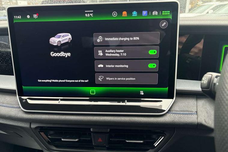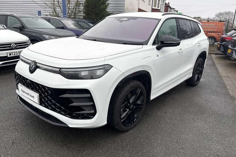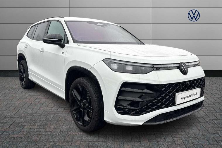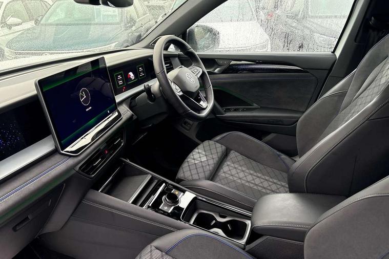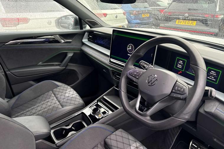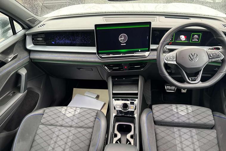 Adaptive cruise control (ACC), Digital Cockpit Pro - 10.25" high resolution dash display screen with customisable menus and information, Driver alert system, Driver attention monitoring system, Dynamic road sign display, E-Sim card for online connectivity, eCall emergency call system, Lane change system, Side assist, Rear traffic alert and Exit warning system, Multifunction front facing camera, Oncoming vehicle braking when turning including swerve support, Progressive steering, Start/stop system with regenerative braking, Voice activation spoken voice commands for telephone and navigation system, Warning signal and warning light for front and rear seatbelts not fastened, Wireless App-Connect, Adaptive chassis control DCC pro includes driving mode selection, Charging cable Mode 2 Type 2 / G (10A), Charging cable Mode 3 Type 2 / 3 (16A), Front shock absorption G08, Front wheel drive, Rear shock absorption, Digital radio reception (DAB), Diversity antenna for FM reception, Air intake with Chrome trim, Auto dimming interior rear view mirror, Automatic headlight control system, Body colour door handles, Chrome moldings on the side windows, Coming/leaving home lighting function, Dynamic headlight range control with dynamic cornering light, Exterior mirrors convex on the left and aspherical on the right, Heat insulating glass in side and rear windows, Illuminated Volkswagen logo rear with animation, Laminated safety glass windshield, heat insulating, LED 3rd brake light, LED separate signature day time running light, Puddle lights, Rain sensor windscreen wipers, Rear fog light on one side, reversing light on both sides, Rear side wing doors, Rear wiper, Reverse activated passenger's door mirror, Surround lighting with welcome light, Volkswagen logo in front, illuminated lighting animation with wake up/goodbye scenario and illuminated door handles, 10 colour interior ambient lighting, 12V outlet in center console rear and in luggage compartment, 3 rear headrests, 3 rear seat bench in 2nd row, split folding, longitudinally movable and folding with load-through hatch, Black roof lining, Brushed stainless steel pedals, Carpet mats, front and rear, Centre console with illuminated storage compartment with sliding cover and two drinks holders, Chrome elements on the mirror switch and power window switches and door pulls, Door and side trim panel insert in Art velour, Flat luggage compartment floor, Front centre armrest, Front scuff plates in aluminium, ISOFIX anchors for child seats on outer rear seats and front passenger seat compatible with i-Size, Mechanical rear seat release, Power adjustable lumbar support in front, Single front passenger seat, Sports comfort seats in front, Sun visors with illuminated vanity mirrors, 3 Point seat belts in front with pretensioners, 3 point seatbelts in outer rear with ECE label, Autonomous emergency braking front assist with pedestrian and cyclist monitoring, Driver and front passenger airbag with front passenger airbag deactivation, Electronic parking brake with auto hold, First aid kit with warning triangle and safety vest, Front and rear curtain airbags, Front and rear side airbags, Front centre airbag, Front disc brakes, Hill start assist, Rear disc brakes, Two tone horn, Decorative material set R-Line, Interior door handle in matte chrome, Tool kit for tyre mobility set, Tyre mobility kit including compressor and sealing foam. In lieu of spare wheel,