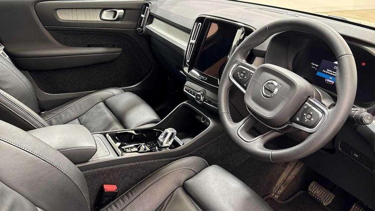 12.3" Progressive Driver Display, 9" centre console portrait touch screen, Adjustable steering wheel force, Bluetooth hands free telephone kit, Cruise control, Driver awareness - blind spot information system with steer assist, cross traffic alert with autobrake, rear collision warning and migitation, E-call, Front park assist, Google automatic services - Nav with google maps, apple carplay/android auto, voice recognition with google assistant, Hands free power tailgate, Lane keep assist with driver alert control, Oncoming Lane Mitigation, Rear park assist, Rear park assist camera, Speed limiter, Speed sensitive steering, Wireless/Inductive Mobile Phone Charging, Dynamic chassis, DAB Digital radio, High performance sound, 8 speakers/250W, front USB and 2 rear type C USB, Steering wheel mounted remote controls, Adaptive brake lights with high level LED brake lights, Auto dimming feature for exterior door mirrors, Auto dimming interior mirror, Automatic headlamp levelling, Automatic LED Headlights + Active high beam incorporating daytime running lights, Front aluminium tread plates, Front and rear electric windows, High gloss black front and rear skid plate, High gloss black mesh front grille with high gloss black surround, High gloss black window trim, Home safe and approach lighting, Integrated roof rails in high gloss black, LED front fog lights, Puddle lights, Rain sensor with automatic windscreen wiper activation, Rear side wing doors, Rear wiper, Roof antenna, Roof spoiler, Visible VIN plate, 12V socket in front tunnel console and luggage compartment, 2-Zone electronic climate control with CleanZone air quality system and pollen filter, 3 seat bench in 2nd row, 3 Spoke tailored steering wheel with chrome trim, 60/40 versatile split folding rear seat, A-pillar parking ticket holder, Ambient front door and instrumental panel lighting, Centre console cupholders and storage, Flexible load floor and grocery bag holder, Floor mats, Front door pocket and front cupholder illumination, Front footwell illumination, Front headrests, Front reading light and theatre lighting, Front seat cushion extensions, Front tunnel pocket, Glovebox bag hook, Heated front seats, Height adjustable passenger seat, Height/reach adjustable steering column, High gloss centre tunnel deco, Illuminated glovebox, Illuminated luggage compartment, Illuminated tailgate, Illuminated vanity mirrors, Integrated waste bin, Isofix attachments on outer rear seats, Load protection net, Multi directional lumbar support, Power driver seat with memory + exterior mirrors memory, Rear armrest / integral cup holders / storage tray, Rear headrests, Rear reading and courtesy lights, Single front passenger seat, Underfloor cargo storage, Climate pack without heated front seats - XC40, 3x3 point rear seatbelts, City safety with steering support with Pedestrian + cyclist + front collision warning with full auto brake and rear auto brake, Drivers knee airbag, Dual stage driver/passenger airbags, Electronic parking brake with auto hold, First aid kit, Front and outer rear seatbelt reminder and pretensioners, Front seats SIPS airbags, Hill descent control, Hill start assist, Inflatable curtain, Passenger airbag cut-off device, Power child locks on rear doors, Road sign information display, Run off Road Mitigation, Run off Road Protection, SIPS (Side Impact Protection System), Slippery road and hazard light alert, Stability and Traction Control with Spin control, Engine Drag Control and Corner Traction Control, Tyre pressure monitoring system, Vehicle deceleration control with Anti-lock Brake System, Electronic Brake Distribution and Emergency Brake Assist, Warning triangle, WHIPS whiplash protection system - front, Anti-theft alarm including immobiliser/volume sensor + level sensor, Key integrated remote control central locking + fuel flap with deadlocking system and auto open/close power windows, Keyless drive includes keyless entry and keyless start, Locking wheel nuts,