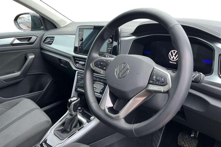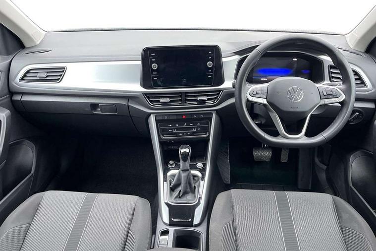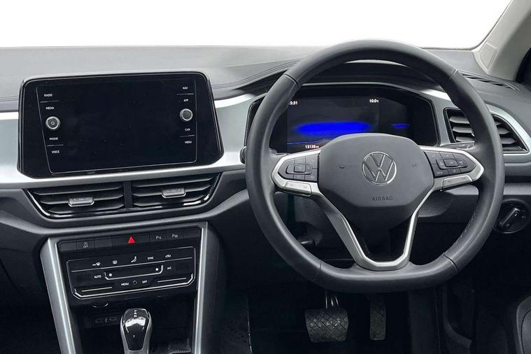 Advanced driver attention and drowsiness monitor, Dynamic road sign display, Emergency call service, Lane keeping system Lane Assist, Mobile phone interface, Modified key software - reduce switch off time for key status change to Long no motion, Online services, Park assist including front and rear parking sensors, Power assisted speed sensitive steering, Rear view camera, Service interval indicator, Tailgate/trunk lid release from outside, Think blue trainer driver tips and journey analysis, Warning sound and light for front seatbelts unfastened, Wireless app connect, Battery regeneration during braking, Front shock absorption, Rear shock absorption chassis with increased ride height, Start/stop function with battery regeneration, DAB Digital radio, Diversity antenna for FM reception, Front and rear 6 speakers, Music playback - MP3, WMA and AAC files, Premium USB cable in choice of either Apple or Android smartphone compatibility, SD card slot, Simultaneous pairing of 2 compatible mobile devices, Title and cover art display, We Connect and We Connect Plus functionality, Auto dimming interior rear view mirror, Automatic hazard lights activation under emergency braking, Automatic headlight control with LED separate daytime running lights with coming/leaving home function, Black roof rails, Body coloured bumpers and radiator grille with chrome trim and front fog lamps with chrome bezel, Body coloured exterior mirror housings and door handles, Electrically adjustable and heated door mirrors, Extended roof spoiler, Exterior mirrors aspherical on driver side, convex on front passenger side, External USB type C socket and charging sockets, Front windscreen wiper with intermittent wipe and 4 position delay, Heated rear window, LED 3rd brake light, LED rear combination lamps, LED rear number plate lights, Power windows with comfort operation and circuit breaker, Privacy glass for rear side windows and rear window, Rain sensor, Rear exhaust tailpipe, Rear fog light on one side and reversing lights on both sides, Rear side wing doors, Rear wash/wipe with intermittent wipe setting, Remote electrically foldable door mirrors, puddle lights and reverse activated passenger's door mirror, 12V power socket in centre console, 3 rear head restraints, 3 seat bench in 2nd row, 4 load lashing points in luggage compartment, Air care climatronic air conditoning system with active combination filter and 2-zone temperature control, Black stitching for floor mats, Ceramique roof liner, Cloth upholstery, Door and side trim panel in cloth, Drawer under drivers seat, Driver/front passenger seat height adjustment, Front centre armrest, Front comfort sports seats, Front cupholders x 2, Front reading light, Front seat back storage pockets, Glove compartment door with light, Instrument lighting, white adjustable panel illumination, Interior ambient lighting and surround lighting, Interior light delay, Isofix child seat preparation, Leather gearshift handle, Load-through provision with cup holder when folded down ('Unsplit rear seat bench, split folding backrest, with centre armrest), Luggage compartment lighting, Lumbar support for driver's and front passengers seat, Non-folding front passenger seat backrest, Single front passenger seat, Storage compartment in left and right luggage area, Storage compartment in rear doors, Storage compartments in driver and front passenger doors, Sunvisors with illuminated vanity mirrors, Variable boot floor, height adjustable and removable, Driver assistance pack without proactive passenger protection - T-Roc Life/Match, 3 point height adj front seatbelts + pretensioners, 3 point seatbelts in outer rear with ECE label, ABS, Child locks on rear doors, City emergency braking and pedestrian monitoring, Driver and front passenger airbag with front passenger airbag deactivation, Driver and front passenger safety-optimised head restraints, Drivers seatbelt reminder, Electronic parking brake, Electronic Stability Control (ESC) inc EDL (Electronic Differential Lock) and ASR (Traction Control), Front and rear passengers curtain airbag system including front side airbags, Front disc brakes, Hill start assist, Predictive pedestrian protection, Rear disc brakes, Two tone horn, Tyre pressure loss indicator, Volkswagen roadside assistance, Alarm with interior protection, Keyless locking and starting system keyless access with safelock, Pewter matt decorative inserts for intrument panel, centre console and door panels at the front, Trims for alloy wheels,