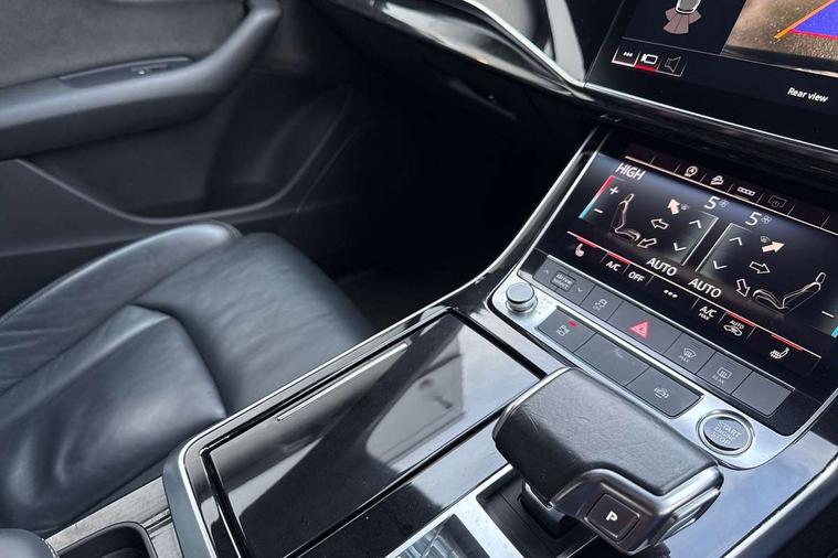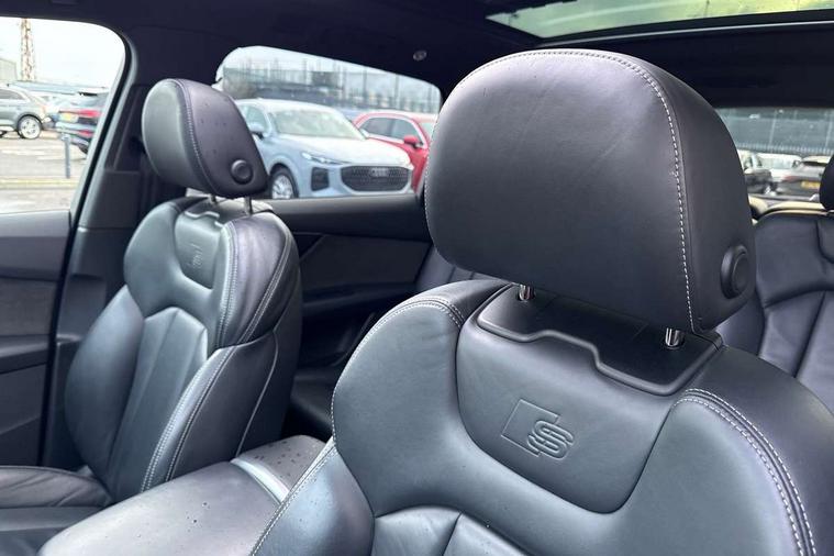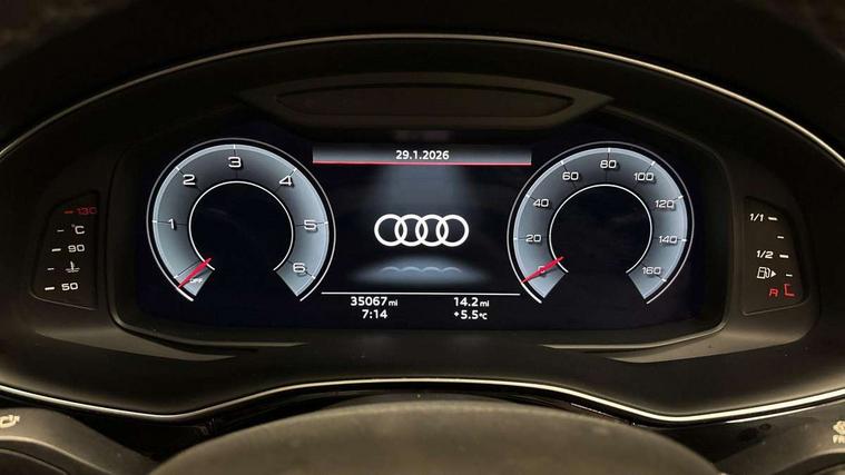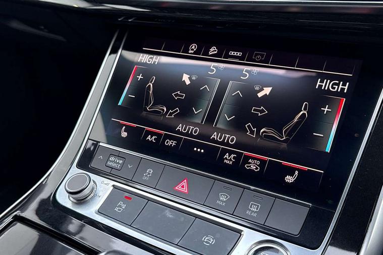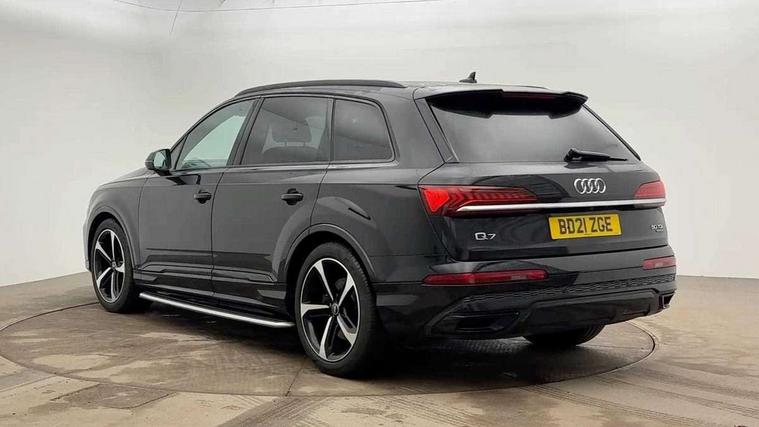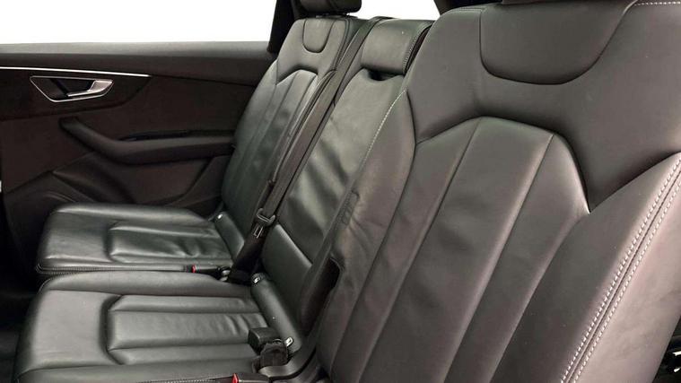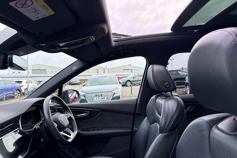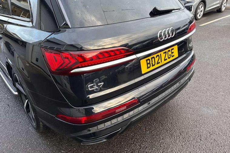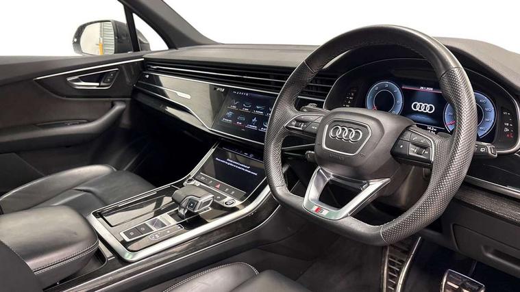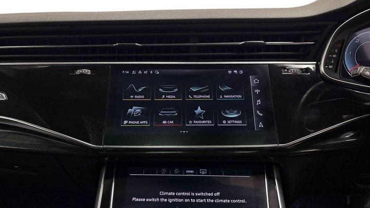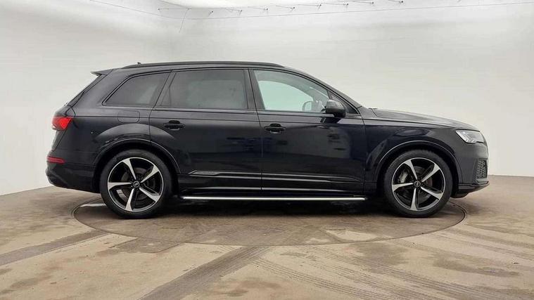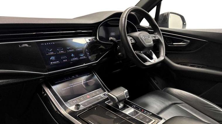 Audi connect safety and service (e-call), Audi drive select (Auto, Comfort, Dynamic, Efficiency, Individual, Off-road and All road), Audi phone box with wireless charging, Camera based traffic sign recognition, Electromechanical steering, MMI navigation plus with MMI touch screens includes 10.1" and 8.6" screens with haptic feedback, Natural voice recognition, Parking system plus with 360 degree display (front, rear and side sensors) - acoustic and visual park assist system, Power operated tailgate, Rear view camera, Smartphone interface includes wireless Apple carplay/Android Auto, Start/stop system, 48V Mild hybrid technology, Adaptive air sports suspension, Quattro all wheel drive with self locking centre differential, Audi music interface - front 2 USB-C ports with charger and data functions, Audi sound system with 6 channel amplifier, 180 watt amplifying capacity and 10 loudspeakers including subwoofer, DAB digital radio module, Audi matrix LED headlights with dynamic front and rear indicators, Auto dimming frameless rear view mirror, Black roof rails, Bumpers in contrast paint scandium grey finish includes door trim and wheel arch trim strips, inlays in door strip contain quattro embossing, Electrically adj heated/folding + automatically dimming exterior mirrors with memory + automatic kerb side function for passenger side exterior mirror, Heat insulating glass in windshield, Integrated LED indications in door mirrors, LED daytime running lights, LED rear tail lights, Privacy glass - dark tinted rear and rear side windows from B-pillar backwards, 4 zone deluxe automatic climate control, 7 seat layout with ISOFIX points for the front passenger seat and rear passenger seat, Black cloth headlining, Comfort front centre armrest, Folding rear seats, Front head restraints, Front/rear floor mats, Heated front seats, Illuminated door sill trims with S logo, LED interior ambient lighting, Luggage compartment cover, Luggage compartment sill protection in stainless steel, Rear head restraints, Stainless steel pedals, Sunvisors with illuminated vanity mirrors, Titanium black styling pack - Q7/SQ7, 3 point seatbelts on all rear seats, Audi pre sense front, Driver and front passenger, front side and curtain airbags, Electromechanical parking brake, Electronic Stabilisation Control (ESC) including ABS, ASR and EDL, Extended pedestrian protection measures, Hill hold assist, Seatbelt monitoring, Tyre pressure loss indicator, Warning triangle and first aid kit, Anti theft alarm, Anti-theft wheel bolts and wheel loosening detection, Keyless Go, Remote central locking, Polished oak trim with grey finish inlay, Tool kit, Tyre repair kit,