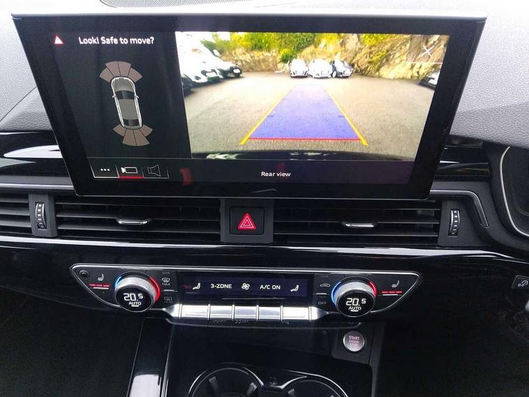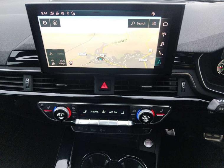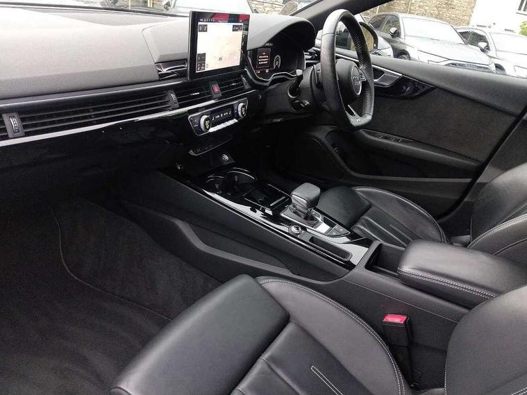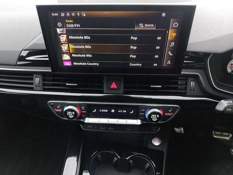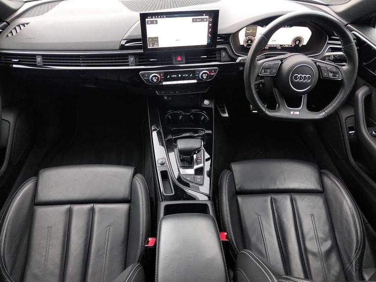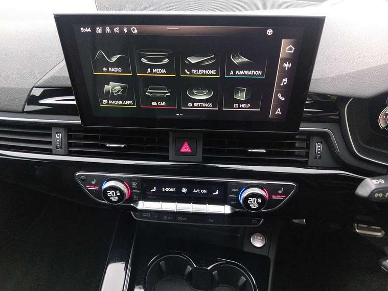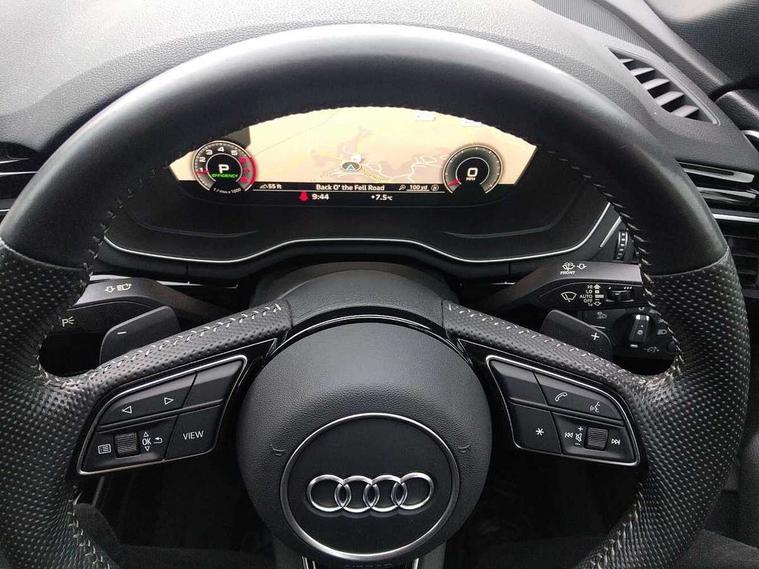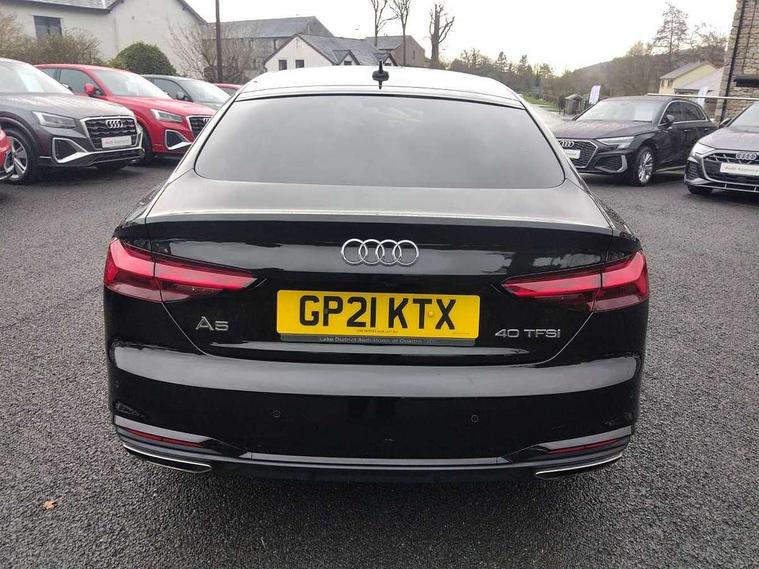 Piano black finish inlay, Black styling pack - A5 Coupe/Sportback, LED interior light pack - A5/RS5, 20" 5 twin spoke polygon design alloy wheels in gloss anthracite black and gloss turned finish, Tyre repair kit, Anti theft alarm system, Anti theft wheel bolts, Immobiliser, Keyless Go, Remote central locking, 8 passive loudspeakers, CD player, DAB digital radio reception, Two additional USB ports for rear passenger in rear centre console, Two SDXC card slots, 3x3 point rear seatbelts, 6 airbags - Driver, front passenger, curtain and side airbags, Electromechanical parking brake, Electronic Stabilisation Control (ESC) including ABS, ASR and EDL, Front passenger airbag deactivation, Height adjustable front seatbelts, Hill hold assist, Multi collision brake assist, Pop-up bonnet for pedestrian protection, Seatbelt monitoring, Tyre pressure warning, Variable restraint system, Warning triangle and first aid kit, Auto dimming rear view mirror, Black door mirror housings, Body colour bumpers, Body colour door handles, Body colour front spoiler lip, Body colour side sill trim, Electric adjustable heated door mirrors, Electric folding door mirrors, Electric front windows, Front fog lights, Honeycomb structure radiator grille in grained matt black, Matrix LED headlights with Audi laser light, dynamic light sequencing and dynamic indicator, Matt aluminium silver tailpipe trim, Privacy glass, Rain and light sensors, Rear diffuser in matt titanium black with trim strip in matt aluminium silver, Side air inlets in grained matt black with matt aluminium silver inlay, Sport front and rear bumpers with side skirts, Towbar preparation, Windscreen with acoustic glazing, 4 way electric lumbar support for driver and front passenger, 40/20/40 split folding 3 seater rear bench seat, Adjustable steering column, Black cloth headlining, Black perforated leather gearknob, Contrast stitching on seats, steering wheel and gear lever gaiter, Deluxe 3 zone electronic climate control, Electrically adjustable front seats, Fine Nappa leather upholstery with front sports seats S embossed logo, Front centre armrest, Front head restraints, Front/rear floor mats, Heated front seats, Illuminated door sill trim with S logo, ISOFIX child seat mounting and top tether, Luggage compartment mat, Rear headrests, Stainless steel pedals, Sunvisors with vanity mirrors, Tool kit, Audi connect safety and service (e-call), Audi drive select (Auto, Comfort, Dynamic, Efficiency and Individual), Audi parking system plus with front and rear sensors, Audi phone box with wireless charging, Audi smartphone interface, Audi virtual cockpit - 12.3" full colour digital instrument cluster, vehicle/engine speed, 3D navi map, Radio/media information+Driver assistance systems, Automatic start-stop system with coasting functionality and efficiency programme, Bluetooth interface, Electro-mechanical power steering, Email, calendar and text messages displayed via MMI, MMI nav+ with MMI touch - 10.1" high resolution MMI display, touch sensitive, 3D map, route/country info, dynamic route guide, personal route assist, Power operated tailgate, Rear view camera, Service interval indicator, Voice control system, Sports suspension lowered by 23mm,