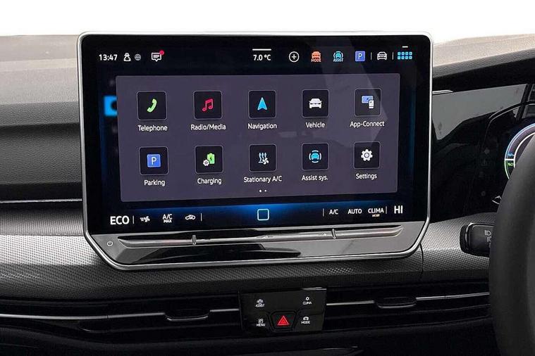 Activated carbon canister, Adaptive cruise control (ACC), Advanced driver attention and drowsiness monitor, Dynamic road sign display, E-Sim card for online connectivity, eCall emergency call system, Multi-color Digital cockpit pro, selection of different info profile possible, Multifunction front facing camera for distance control, Navigation system, Oncoming vehicle braking when turning including swerve support, Side assist blind spot lane change system, rear traffic alert and exit warning system, Speed limiter, Speedo, rev counter, electronic odometer, trip, service interval display, exterior temperature and fuel gauge, Traffic jam assist, Voice enhancer and voice control, Warning signal and warning light for front and rear seatbelts not fastened, We connect plus preparation, We connect preparation, Wireless app connect, Charging cable Mode 2 Type 2 (10A), Charging cable mode 3, type 2 32 A, Hybrid propulsion system, Start-stop system with battery regeneration (recuperation - energy recovery during braking), XDS electronic differential lock for improved traction and handling, 2 USB C ports in front, 2 USB charging sockets on the centre console in the rear charging capacity upto 45W, 6 Speakers - 4 in front and 2 in rear with central speaker, Digital radio reception (DAB), Diversity antenna for FM reception, Gaming platform via car app, Infotainment system with 12.9" display, Mobile phone interface with inductive charging feature, 3rd brake light, Automatic headlamp activation with Coming home and Leaving home feature, Body colour bumpers, Body colour door handles, Body colour door mirrors, Chrome trimmed front air intake surrounds, Chrome trims on the side window bottom, Exterior mirrors convex on the left and aspherical on the right, Front and rear electric windows, Heat insulating windshield made of laminated glass, LED separate daytime running light, Rear exhaust tailpipe, Rear fog light on one side and reversing lights on both sides, Rear side wing doors, Rear windscreen washer and wiper with interval delay, Remote electrically foldable door mirrors, puddle lights and reverse activated passenger's door mirror, Welcome light with surround lighting, 12V socket in front centre console, 12V socket in luggage compartment, 3 rear head restraints, 3 seat bench in 2nd row, Air care climatronic 3 Zone automatic climate control with rear air conditioning control panel, Ambient lighting with 30 colour including LED light unit in front footwell with selectable light colour, Chrome plated radiator grille inserts, air vent surrounds and light switch surrounds, Front + rear black carpet mats, Front centre armrest, ISOFIX anchors for child seats on outer rear bench seats and on front passanger seat compatible for i-Size, Luggage compartment lighting, Plastic gear knob, Rear cupholder and loadthough, Single front passenger seat, Soul black instrument panel, Split folding backrest with centre armrest and unsplit rear seat bench, Standard pedal cluster, Storm grey roof lining, Sun visors with illuminated vanity mirrors, Driver assistance pack - Golf Estate/Hatchback Auto, 3 point height adj front seatbelts + pretensioners, 3 rear three point seatbelts, ABS, Autonomous emergency braking front assist with pedestrian and cyclist monitoring, Child locks on rear doors, Driver and front passenger airbag with front passenger airbag deactivation, Electronic parking brake with auto hold, ESC (Electronic Stability Control), Extended pedestrian protection measures, Hill start assist, Rear disc brakes, Two tone horn, Tyre pressure loss indicator, Volkswagen roadside assistance, Anti theft wheel bolts, Preparation for alcohol interlock, New brushed dark metal decorative inserts for dashboard and front door panels, Tool kit for tyre mobility set, Tyre mobility kit Includes 12V compressor and tyre sealant,