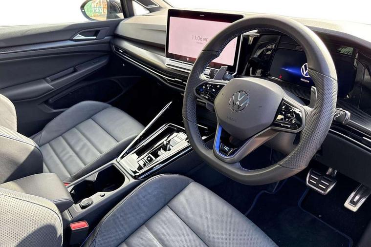 Activated carbon canister, Adaptive cruise control (ACC), Advanced driver attention and drowsiness monitor, Dynamic road sign display, E-Sim card for online connectivity, eCall emergency call system, Electronic maximum speed limit increased to 270 km/h, includes driving Modes 'drift' and 'special', larger roof spolier and GPS laptimer + G-Meter, Multi-color Digital cockpit pro, selection of different info profile possible, Multifunction front facing camera for distance control, Navigation system, Oncoming vehicle braking when turning including swerve support, Progressive steering, Side assist blind spot lane change system, rear traffic alert and exit warning system, Speed limiter, Speedo, rev counter, electronic odometer, trip, service interval display, exterior temperature and fuel gauge, Traffic jam assist, Voice enhancer and voice control, Warning signal and warning light for front and rear seatbelts not fastened, We connect plus preparation, We connect preparation, Wireless app connect, All wheel drive - 4Motion, Petrol Particulate Filter, Start-stop system with battery regeneration (recuperation - energy recovery during braking), XDS electronic differential lock for improved traction and handling, 2 USB C ports in front, 2 USB charging sockets on the centre console in the rear charging capacity upto 45W, Digital radio reception (DAB), Diversity antenna for FM reception, Gaming platform via car app, Infotainment system with 12.9" display, Mobile phone interface with inductive charging feature, 3rd brake light, Auto dimming rear view mirror, Automatic headlamp activation with Coming home and Leaving home feature, Black badge on B-pillar, Black mirror caps, Black strips on radiator grille and headlights, Body colour door handles, Darkened headlights, Darkened R Logos and VW logos in front, rear and on fender, Exterior mirrors convex on the left and aspherical on the right, Front and rear electric windows, Front fog lamps and cornering light, Heat insulating windshield made of laminated glass, Illuminated lighting animation with wake up/goodbye scenario, LED matrix headlights with ambient light V2, advanced high beam, dynamic range contol with cornering, LED rear lamp with indicator, poor weather, LED separate daytime running light, Light assist with High beam control, R name plate, Rain sensor, Rear fog light on one side and reversing lights on both sides, Rear side wing doors, Rear tinted glass 65% light absorbing from B pillar backwards, Rear windscreen washer and wiper with interval delay, Remote electrically foldable door mirrors, puddle lights and reverse activated passenger's door mirror, Welcome light with surround lighting, 12V socket in front centre console, 12V socket in luggage compartment, 3 rear head restraints, 3 seat bench in 2nd row, 30 colour ambient lighting, illuminated center console storage compartment in front, Air care climatronic 3 Zone automatic climate control with rear air conditioning control panel, Aluminium gearshift handle, Brushed stainless steel pedals, Chrome plated radiator grille inserts, air vent surrounds and light switch surrounds, Entry lights, Front + rear black carpet mats, Front centre armrest, Integrated front head restraints, ISOFIX anchors for child seats on outer rear bench seats and on front passanger seat compatible for i-Size, Luggage compartment lighting, Rear cupholder and loadthough, Single front passenger seat, Soul black instrument panel, Soul black roof lining, Split folding backrest with centre armrest and unsplit rear seat bench, Sun visors with illuminated vanity mirrors, Driver assistance pack - Golf Estate/Hatchback Auto, R styling pack - Golf, Technology park and comfort pro package - Golf Hatchback, 3 point height adj front seatbelts + pretensioners, 3 rear three point seatbelts, ABS, Autonomous emergency braking front assist with pedestrian and cyclist monitoring, Child locks on rear doors, Driver and front passenger airbag with front passenger airbag deactivation, Electronic parking brake with auto hold, ESC (Electronic Stability Control), Extended pedestrian protection measures, Front and rear black brake calipers with darkened R-logo, Hill start assist, Rear disc brakes, Two tone horn, Tyre pressure loss indicator, Volkswagen roadside assistance, Anti theft wheel bolts, Preparation for alcohol interlock, Sporty vehicle dynamics, Tool kit for tyre mobility set, Tyre mobility kit Includes 12V compressor and tyre sealant, Wheel hub cover with darkened R-logo,