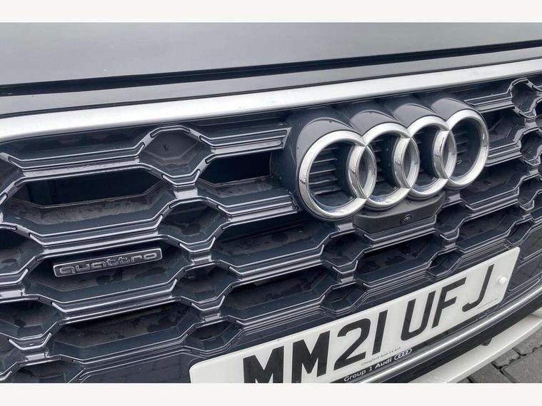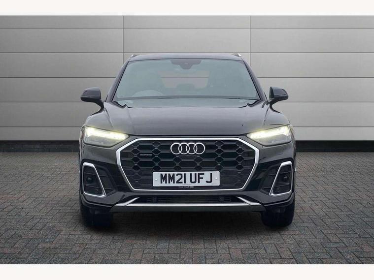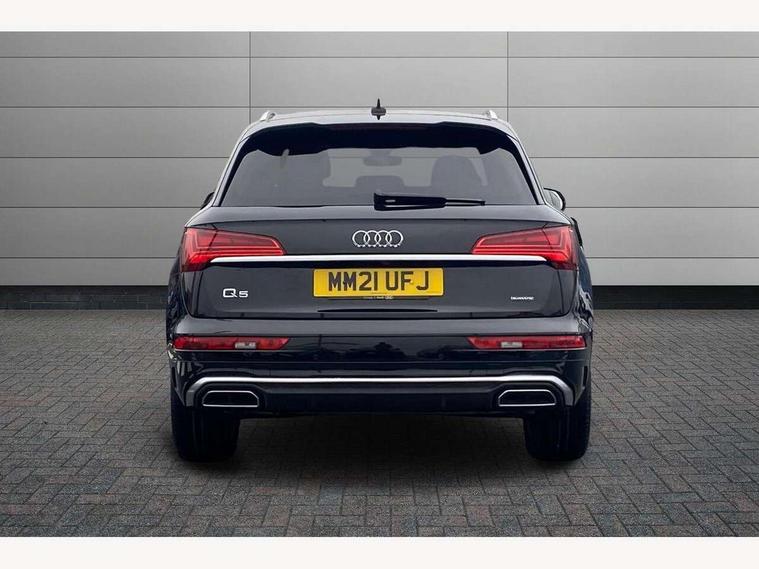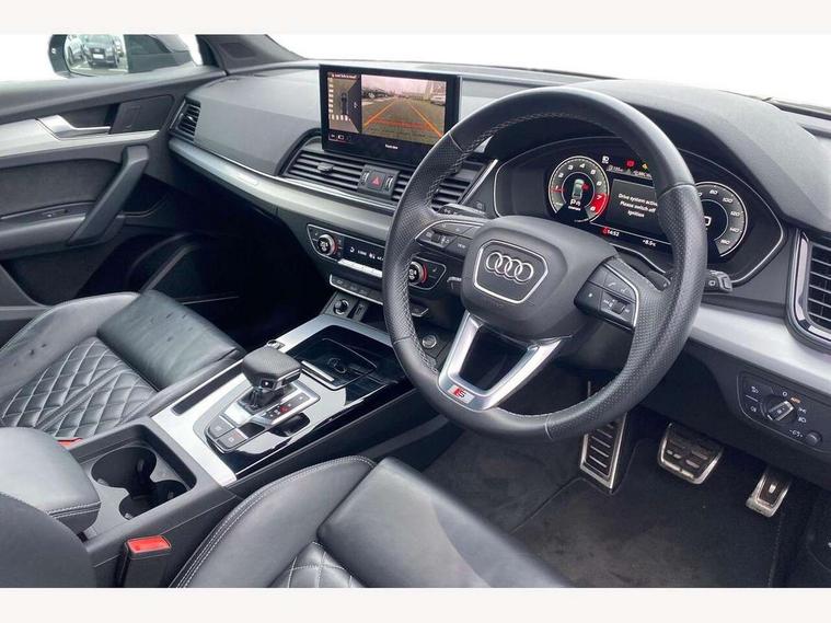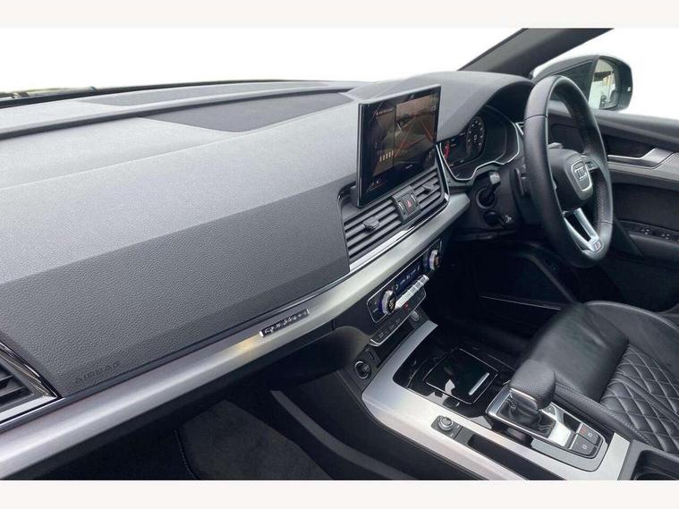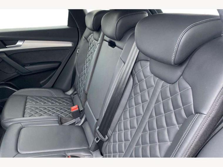 Acoustic front and rear parking sensor, Amazon alexa Integration, Audi connect safety and service (e-call), Audi drive select, Audi virtual cockpit plus with 12.3" screen and three different layout designs, Audi wireless smartphone interface, Automatic start-stop system with coasting functionality and efficiency programme, Electro - mechanical power assisted steering, MMI navigation plus with 10.1" touch screen, Mobile telephone preparation - bluetooth interface, Power tailgate, Reversing camera, Service interval indicator, Voice control system with Audi hotword activation "Hey Audi", Diesel particulate filter, Quattro on demand, S line sports suspension, 2 USB charging ports, DAB Digital radio, Acoustic windscreen, Audi beam with Audi rings logo, Audi matrix LED headlights with LED rear lights + dynamic front and rear indicators, Audi rings at front and rear in black, Audi rings decal on rear doors, Auto dimming rear view mirror, Automatic headlight adjustment, Automatic headlights and windscreen wipers, Black door mirrors, Black roof rails, Body colour bumpers, Body colour underbody protection, Chrome plated exhaust trims, Door side sills in carbon, Electric adjustable/heated/folding door mirrors, Front and rear electric windows, Headlight washers, Metallic paint, Rear privacy glass and rear side windows, Rear spoiler, Rear wiper, Roof bars, S Line badges on the front wings, S Line front and rear bumpers, S Line side skirts, Without model and engine badging at rear, 3 rear headrests, 4 way electric lumbar support for driver and front passenger, 40:20:40 split folding rear seat with rear centre armrest, Black cloth headlining, Contrast stitching on seats, steering wheel and gear lever gaiter, Deluxe 3 zone electronic climate control, Electrically adjustable front seats, Fine Nappa leather upholstery with diamond pattern contrast stitching + front sport seats with S embossed logo, Front centre armrest, Front/rear floor mats, Gear lever in black leather, Heated front seats, Height adjustable front head restraints, Height/reach adjustable steering column, Illuminated door sill trims with S logo, ISOFIX child seat mounting and top tether, Rear seat bench plus, Removable luggage compartment floor, Stainless steel pedals, Sunvisors with vanity mirrors, Trunk roller cover, Black styling package - Q5 Edition 1, Extended interior upholstery pack - Q5, Extended LED Interior multi coloured Lighting Pack - Q5, LED interior light pack - Q5, 3 point seatbelts on all seats, 6 airbags - Driver, front passenger, curtain and side airbags, Electrically operated child locks on rear doors, Electromechanical parking brake, Electronic stabilisation control including ABS, ASR and EDL, Front and rear brake calipers painted in red, Front passenger airbag deactivation, Hill descent control, Hill hold assist, Multi collision brake assist, Pop-up bonnet for pedestrian protection, Pre sense city, Seat belt force limiter, Seatbelt monitoring, Tyre pressure warning, Warning triangle and first aid kit, Anti theft alarm, Anti-theft wheel bolts, Keyless Go access/ignition system, Black piano finish inlays, 20" 5 V spoke star design Audi sport alloy wheels in gloss anthracite black with diamond cut finish, Tool kit,