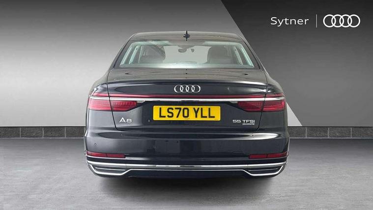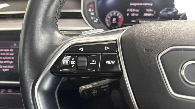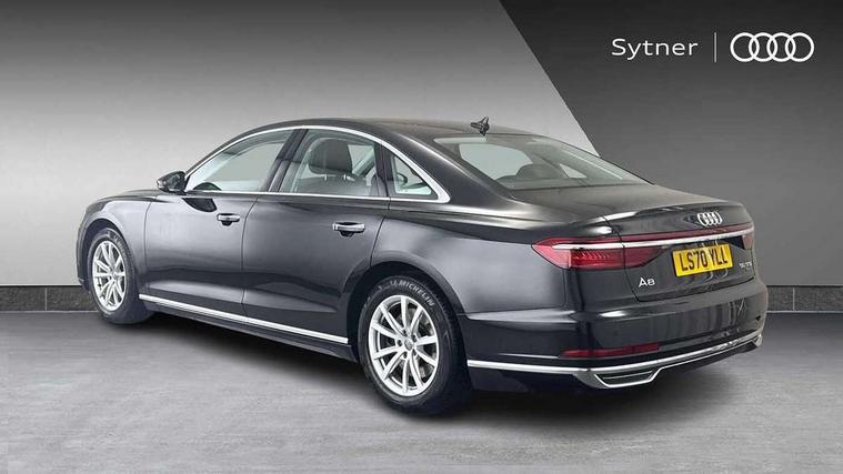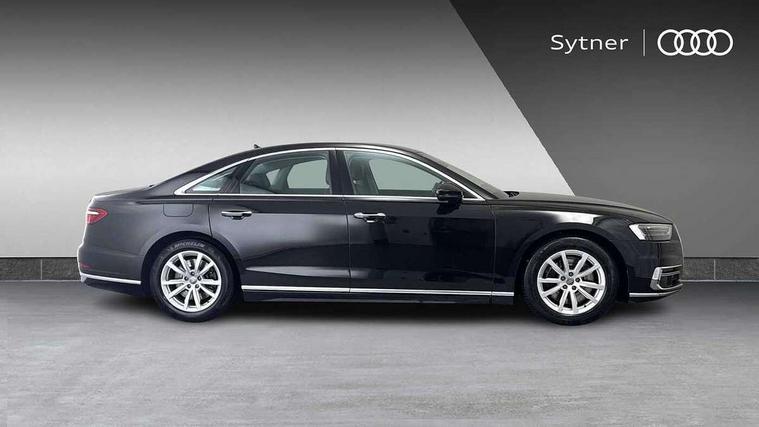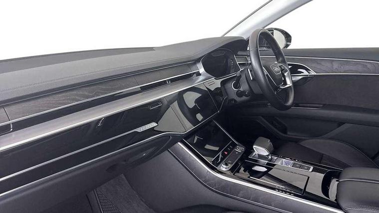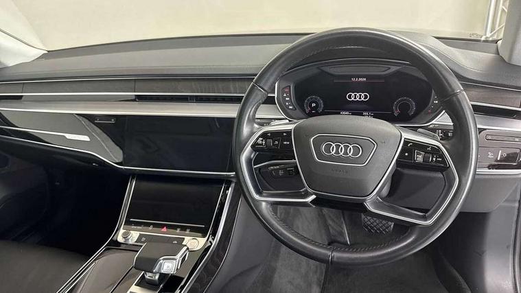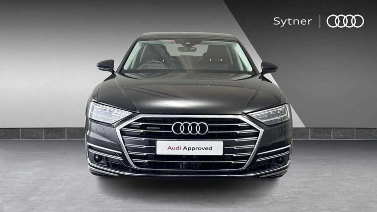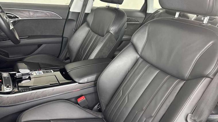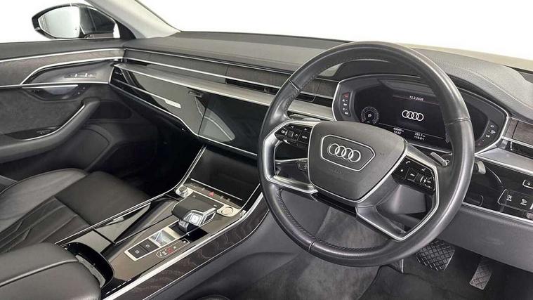 'Lights On' Reminder warning buzzer, Adaptive cruise control with Stop and Go + pre sense front, Audi connect, Audi drive select, Audi phone box with wireless charging, Audi smartphone interface, Camera based traffic sign recognition, Colour driver's information system display, Head up Display, Lane departure warning system, MMI navigation plus with MMI touch, Power tailgate, Rear view camera, Remote fuel filler release, Service interval indicator, Virtual cockpit, Adaptive air suspension, DAB digital radio module, DVD System, MMI radio plus, USB connection, Acoustic windscreen, Auto dimming rear view mirror, Automatic headlight control system, Body colour bumpers, Body colour door handles, Body colour door mirrors, Body colour side protection with aluminium trim strips, Electric front windows, Electric heated, adjustable, folding and dimming door mirrors with memory, Electric rear windows with isolation switch, Heat insulating glass windscreen and side windows, Heated rear window, Heated windscreen washer jets, LED brake lights, LED daytime running lights, Reverse activated kerb-view adjustment on passenger's door mirror, 230V socket, 3 rear seats, Centre console with cupholders, Climate controlled seats, Comfort front centre armrest, Cooled glovebox, Door armrest with storage, Door pockets with bottle holder, Dust/pollen filters, Electric 4-way lumbar support for front seats, Electric adj front seatbelt height + memory, Electric front seats with memory function, Front/rear floor mats, Height/reach electric steering column with easy exit function, ISOFIX child seat mounting in front passenger and rear outer seats, Jack and tool kit, Leather gear lever, Multifunction steering wheel, Passenger footwell storage net, Rear centre armrest, Rear head restraints, Roof mounted sunglasses holder, Sunvisors with illuminated vanity mirrors, LED ambient interior lighting pack - A8, Light and rain sensor pack - A8, Luggage compartment pack - A8, 3 point seatbelts on all rear seats, ABS/EBD, Active front headrest system, ASR traction control, Driver and front passenger airbag with front side and head airbags, EDL traction control, Electromechanical parking brake, Emergency brake assist, ESP, Front passenger airbag deactivation, Hill hold assist, Hill start assist, Pre sense basic, Predictive pedestrian protection, Rear child proof door locks, Seatbelt warning, Tyre pressure warning light, Warning triangle and first aid kit, Advanced key, Anti theft alarm tow away protection, Anti theft wheel bolts and loose wheel warning, Locking wheel bolts, Remote central locking, Brushed aluminium lower inlay, Space saver spare wheel,