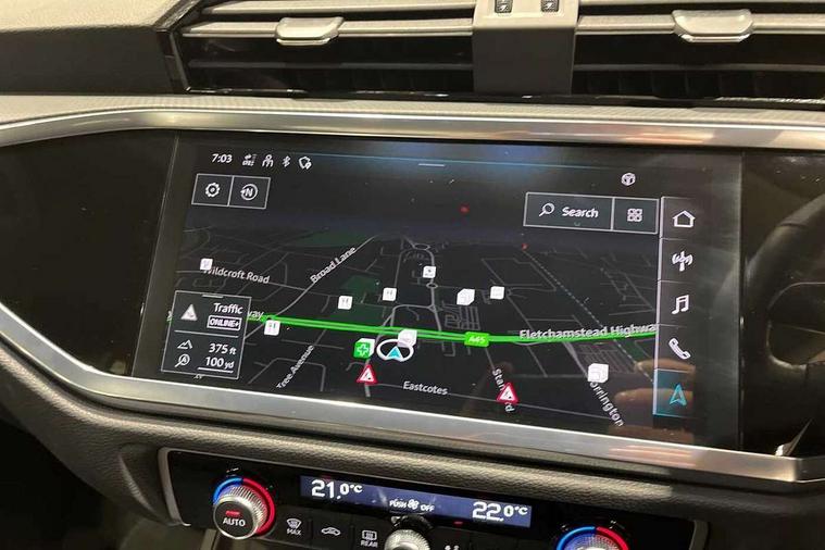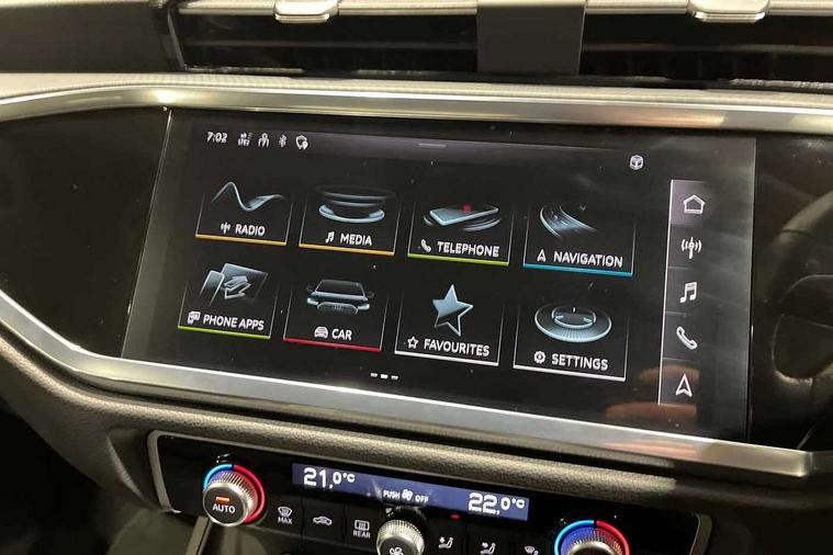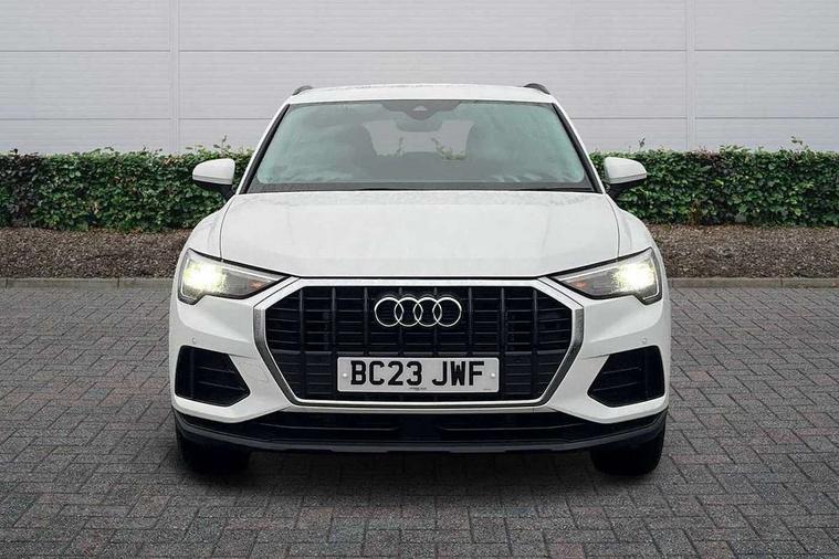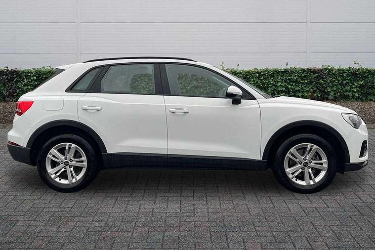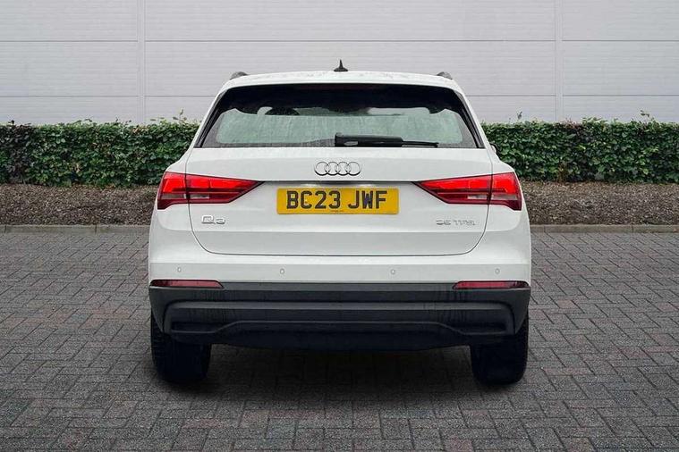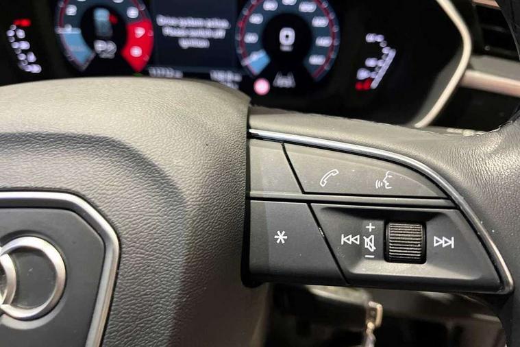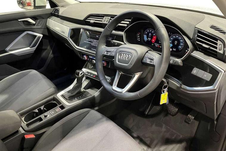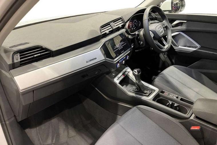 Amazon alexa Integration, Audi drive select, Audi lane departure warning, Audi smartphone interface includes wireless Apple carplay/Android Auto, Audi Virtual Cockpit - 10.25" display, Bluetooth interface, Camera based traffic sign recognition, Legal emergency call, MMI Navigation Plus with high resolution 10.1 inch touchscreen colour display, Power operated tailgate, Progressive steering, Service interval indicator, Start stop system with recuperation, Voice control system with natural language interaction, Standard suspension, 2 USB-C ports with charge and data functions, 6 passive loudspeakers, DAB digital radio module, Acoustic windscreen, Auto dimming frameless rear view mirror, Black roof rails, Body colour door mirrors, Diffuser in grained anthracite, Electrically folding, adjustable and heated door mirrors with integrated LED side indicators and kerb view function for passenger side, Exterior bumper with wheel arch trims and side sill trims in grained black matt, Front and rear electric windows, Grained radiator protective grille, Halogen rear lights, LED headlights with LED daytime running lights, Rain and light sensors, Rear side wing doors, Rear wiper, Third brake light, Variable front intermittent wipers, 12V socket in rear centre console, 3 seat bench in 2nd row, 3 spoke multi-function leather steering wheel, 40:20:40 folding with manual adjustment for 60:40 forwards/backwards position and backrest angle, Dual zone electronic climate control, Front and rear floor mats, Front and rear headrests, Front and rear roof module including reading lights, Front centre armrest, Glove compartment lighting, Height and reach adjustable steering wheel, ISOFIX child seat mounting for front passenger with airbag deactivation and outer rear seat including top tether attachment point for outer rear seats, Luggage compartment light, Lunar silver cloth headlining, Manual front seats with height adjustment, Single front passenger seat, Stainless steel luggage compartment sill finisher, Non smoking pack - Q3, 3x3 point rear seatbelts, 6 airbags - Driver, front passenger, curtain and side windows, Audi pre-sense front with pedestrain and cyclist recognition, Electrically operated child locks on rear doors, Electromechanical parking brake, Electronic stabilisation control including ABS, ASR and EDL, Front seatbelt reminder, Hill descent control, Hill hold assist, Pre sense basic, Seatbelt monitoring, Tyre pressure warning, Warning triangle and first aid kit, Anti theft alarm, Anti theft wheel bolts, Immobiliser, Remote central locking, Detail dashboard around MMI touch colour display in glass look, black with surround in aluminium look, Micrometallic silver inlay, 17" 5 twin spoke design alloy wheels,