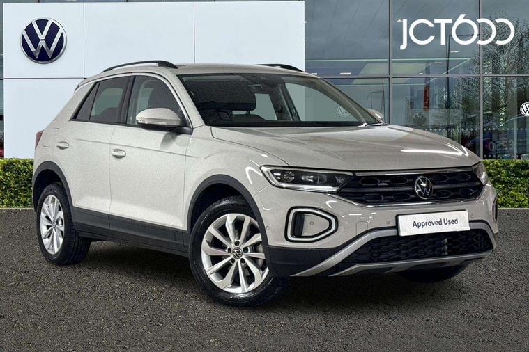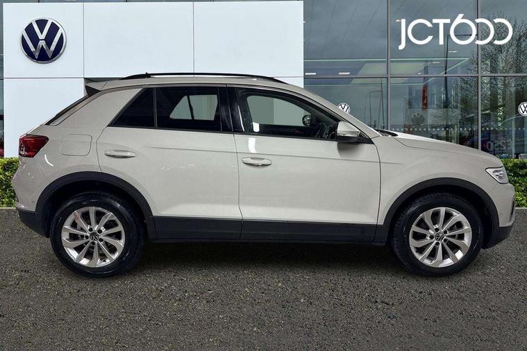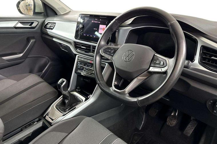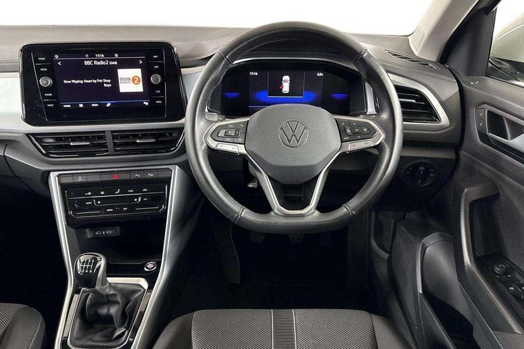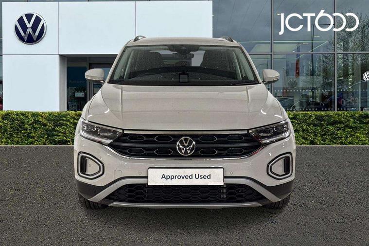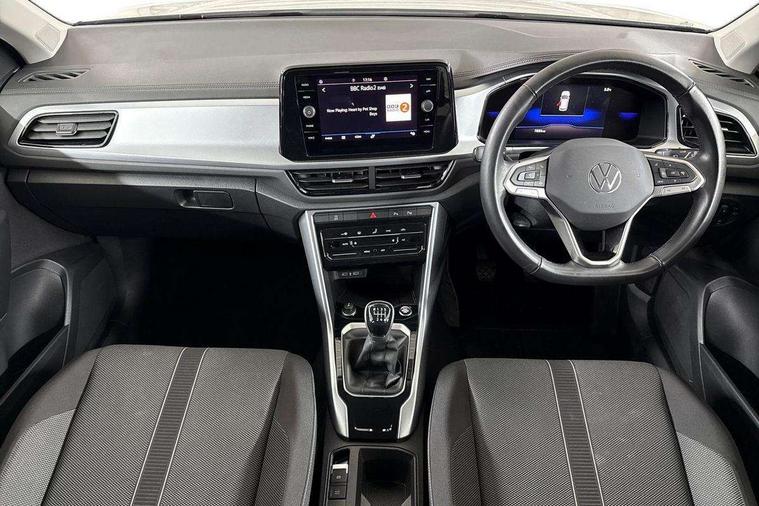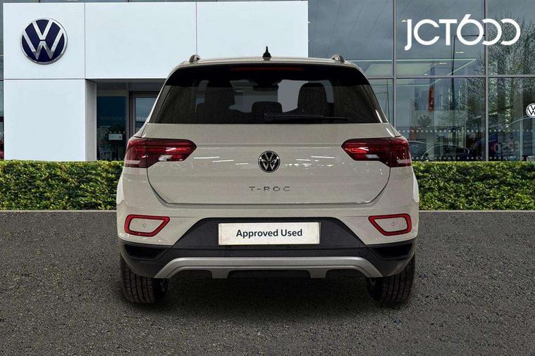 Advanced driver attention and drowsiness monitor, Dynamic road sign display, Emergency call service, Lane keeping system Lane Assist, Mobile phone interface, Modified key software - reduce switch off time for key status change to Long no motion, Online services, Park assist including front and rear parking sensors, Power assisted speed sensitive steering, Rear view camera, Service interval indicator, Tailgate/trunk lid release from outside, Think blue trainer driver tips and journey analysis, Warning sound and light for front seatbelts unfastened, Wireless app connect, Wireless Smartphone charger, Battery regeneration during braking, Front shock absorption, Rear shock absorption chassis with increased ride height, Start/stop function with battery regeneration, DAB Digital radio, Diversity antenna for FM reception, Front and rear 6 speakers, Music playback - MP3, WMA and AAC files, Premium USB cable in choice of either Apple or Android smartphone compatibility, SD card slot, Simultaneous pairing of 2 compatible mobile devices, Title and cover art display, We Connect and We Connect Plus functionality, Auto dimming interior rear view mirror, Automatic hazard lights activation under emergency braking, Automatic headlight control with LED separate daytime running lights with coming/leaving home function, Black roof rails, Body coloured bumpers and radiator grille with chrome trim and front fog lamps with chrome bezel, Body coloured exterior mirror housings and door handles, Electrically adjustable and heated door mirrors, Extended roof spoiler, Exterior mirrors aspherical on driver side, convex on front passenger side, External USB type C socket and charging sockets, Front windscreen wiper with intermittent wipe and 4 position delay, Heated rear window, LED 3rd brake light, LED rear combination lamps, LED rear number plate lights, Power windows with comfort operation and circuit breaker, Privacy glass for rear side windows and rear window, Rain sensor, Rear exhaust tailpipe, Rear fog light on one side and reversing lights on both sides, Rear side wing doors, Rear wash/wipe with intermittent wipe setting, Remote electrically foldable door mirrors, puddle lights and reverse activated passenger's door mirror, 12V power socket in centre console, 3 rear head restraints, 3 seat bench in 2nd row, 4 load lashing points in luggage compartment, Air care climatronic air conditoning system with active combination filter and 2-zone temperature control, Black stitching for floor mats, Ceramique roof liner, Cloth upholstery, Door and side trim panel in cloth, Drawer under drivers seat, Driver/front passenger seat height adjustment, Front centre armrest, Front comfort sports seats, Front cupholders x 2, Front reading light, Front seat back storage pockets, Glove compartment door with light, Instrument lighting, white adjustable panel illumination, Interior ambient lighting and surround lighting, Interior light delay, Isofix child seat preparation, Leather gearshift handle, Load-through provision with cup holder when folded down ('Unsplit rear seat bench, split folding backrest, with centre armrest), Luggage compartment lighting, Lumbar support for driver's and front passengers seat, Non-folding front passenger seat backrest, Single front passenger seat, Storage compartment in left and right luggage area, Storage compartment in rear doors, Storage compartments in driver and front passenger doors, Sunvisors with illuminated vanity mirrors, Variable boot floor, height adjustable and removable, Driver assistance pack without proactive passenger protection - T-Roc Life/Match, 3 point height adj front seatbelts + pretensioners, 3 point seatbelts in outer rear with ECE label, ABS, Child locks on rear doors, City emergency braking and pedestrian monitoring, Driver and front passenger airbag with front passenger airbag deactivation, Driver and front passenger safety-optimised head restraints, Drivers seatbelt reminder, Electronic parking brake, Electronic Stability Control (ESC) inc EDL (Electronic Differential Lock) and ASR (Traction Control), Front and rear passengers curtain airbag system including front side airbags, Front disc brakes, Hill start assist, Predictive pedestrian protection, Rear disc brakes, Two tone horn, Tyre pressure loss indicator, Volkswagen roadside assistance, Alarm with interior protection, Pewter matt decorative inserts for intrument panel, centre console and door panels at the front, Trims for alloy wheels,