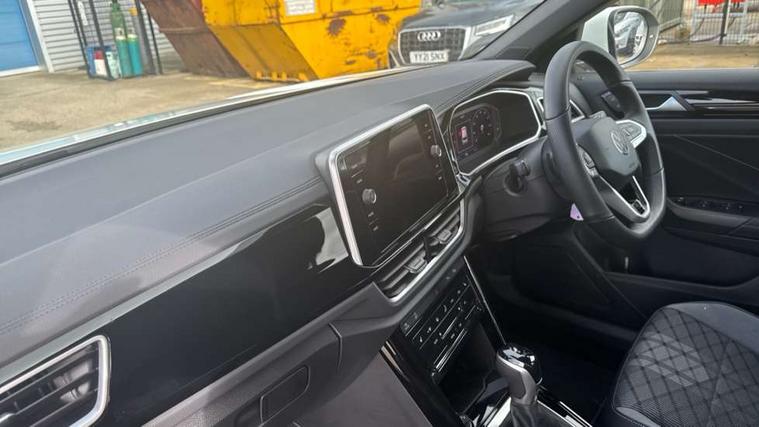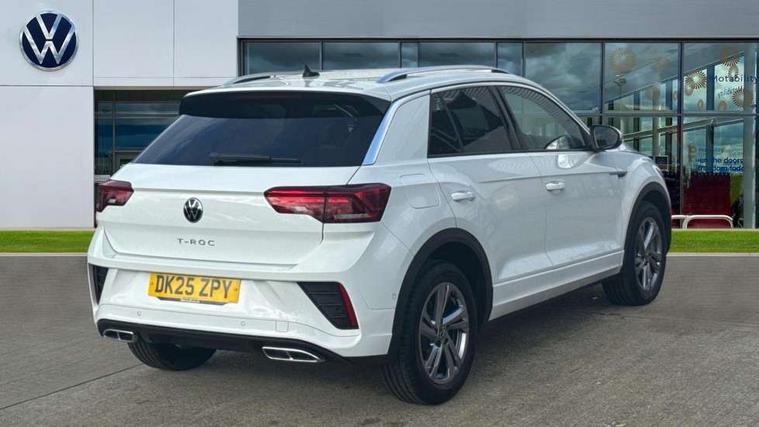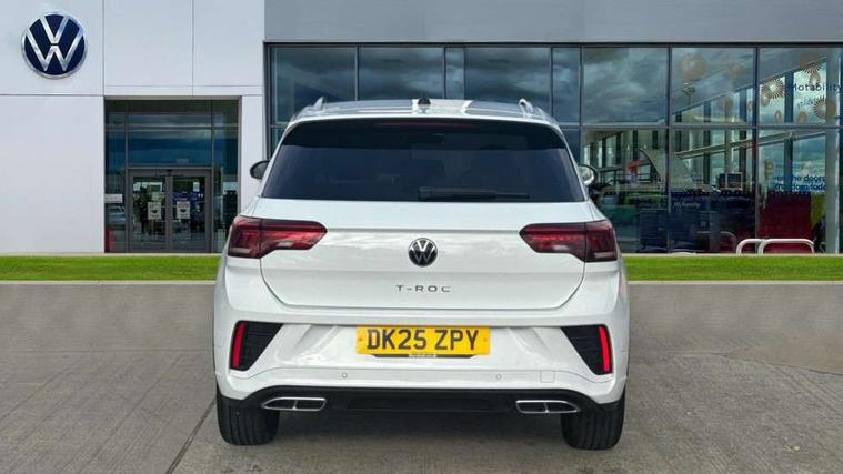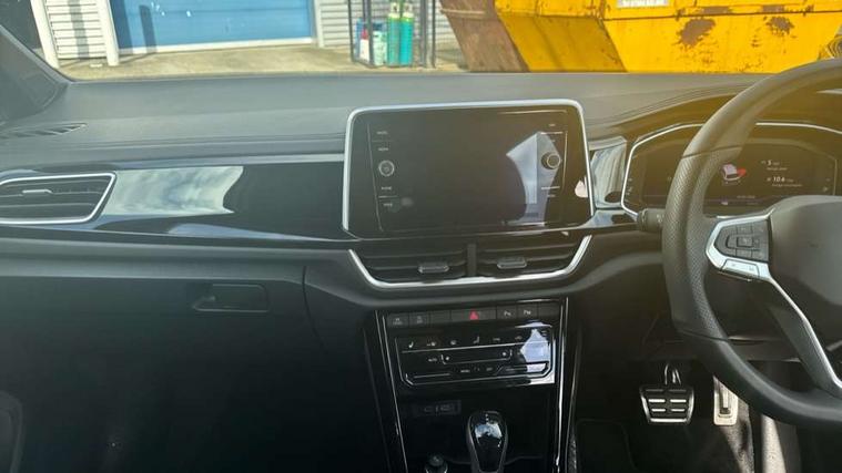 10.25" Digital cockpit pro, Advanced driver attention and drowsiness monitor, Emergency call service, Lane keeping system Lane Assist, Mobile phone interface, Modified key software - reduce switch off time for key status change to Long no motion, Online services, Park assist including front and rear parking sensors, Service interval indicator, Tailgate/trunk lid release from outside, Think blue trainer driver tips and journey analysis, Warning sound and light for front seatbelts unfastened, Wireless app connect, Battery regeneration during braking, Start/stop function with battery regeneration, DAB Digital radio, Diversity antenna for FM reception, Front and rear 6 speakers, Music playback - MP3, WMA and AAC files, Premium USB cable in choice of either Apple or Android smartphone compatibility, SD card slot, Simultaneous pairing of 2 compatible mobile devices, Title and cover art display, We Connect and We Connect Plus functionality, Auto dimming interior rear view mirror, Automatic hazard lights activation under emergency braking, Automatic headlight control with LED separate daytime running lights with coming/leaving home function, Body coloured exterior mirror housings and door handles, Electrically adjustable and heated door mirrors, Extended roof spoiler, Exterior mirrors aspherical on driver side, convex on front passenger side, External USB type C socket and charging sockets, Front windscreen wiper with intermittent wipe and 4 position delay, Heated rear window, LED 3rd brake light, LED rear combination lamps, LED rear number plate lights, Power windows with comfort operation and circuit breaker, Privacy glass for rear side windows and rear window, R-Line design body coloured bumpers, Rain sensor, Rear exhaust tailpipe, Rear fog light on one side and reversing lights on both sides, Rear side wing doors, Rear wash/wipe with intermittent wipe setting, Remote electrically foldable door mirrors, puddle lights and reverse activated passenger's door mirror, 12V power socket in centre console, 3 rear head restraints, 3 seat bench in 2nd row, 4 load lashing points in luggage compartment, Air care climatronic air conditoning system with active combination filter and 2-zone temperature control, Black roof lining, Chrome plated decorative trims, Chrome plated radiator grille inserts, air vent surrounds and light switch surrounds, Door and side trim panel with leatherette insert, Front + rear carpet mats, Front centre armrest, Front cupholders x 2, Front footwell illumination, Front reading light, Front scuff plates with R Line logo, Front seat back storage pockets, Glove compartment door with light, Instrument lighting, white adjustable panel illumination, Interior ambient lighting and surround lighting, Interior light delay, Isofix child seat preparation, Leather gearshift handle, Load-through provision with cup holder when folded down ('Unsplit rear seat bench, split folding backrest, with centre armrest), Luggage compartment lighting, Single front passenger seat, Stainless steel pedals, Storage compartment in left and right luggage area, Storage compartment in rear doors, Storage compartments in driver and front passenger doors, Sunvisors with illuminated vanity mirrors, Variable boot floor, height adjustable and removable, Driver assistance pack without proactive passenger protection - T-Roc, 3 point height adj front seatbelts + pretensioners, 3 point seatbelts in outer rear with ECE label, ABS, Child locks on rear doors, City emergency braking and pedestrian monitoring, Driver and front passenger airbag with front passenger airbag deactivation, Driver and front passenger safety-optimised head restraints, Drivers seatbelt reminder, Electronic parking brake, Electronic Stability Control (ESC) inc EDL (Electronic Differential Lock) and ASR (Traction Control), Front and rear passengers curtain airbag system including front side airbags, Hill start assist, Predictive pedestrian protection, Rear disc brakes, Two tone horn, Tyre pressure loss indicator, Volkswagen roadside assistance, Piano black decorative inserts in dashboard and front door trim panels, Trims for alloy wheels,