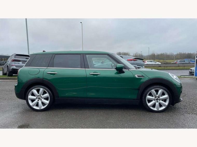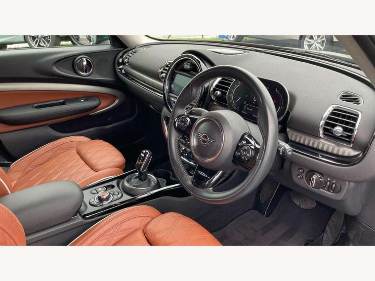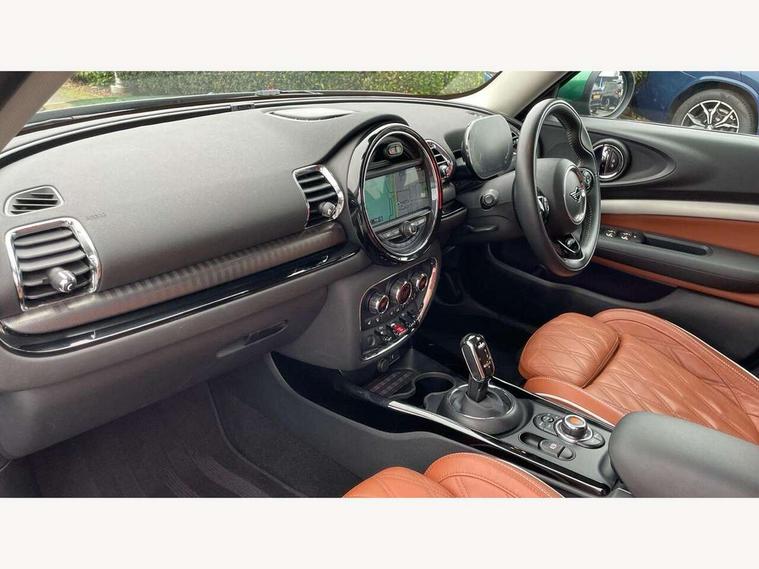Active Guard incl speed limiting and lane departure functions with auto steering, and front collision warning with brake intervention, Automatic start/stop function with brake energy recuperation, Compatible mobile phone bluetooth with audio streaming, Digital cockpit, Electro-mechanical speed dependant steering assistance, Instrument cluster, Mini E-call, MINI TeleServices, On board computer, 7 Speed steptronic transmission with double clutch including electronic gear shifter, Double Vanos system, Fully variable valve control, High precision injection, FM tuner and DAB digital radio, Body colour fuel filler cap, Chrome line exterior, Chrome lower front grille grating, Chrome radiator grille bars, Door sill strips, Dynamic brake lights, Electric windows, Exhaust tailpipe, Heated rear window, Heated windscreen washer jets, LED headlights with closed ring as daytime driving lights, LED rear light with union jack design, Left exhaust tailpipe with chrome finisher, Model logo, Model logo on rear doors, Rain sensor with auto headlights, Rear fog lights, Rear window wiper, Side scuttle panel with integrated indicator, Split rear doors, Sun/heat protection glass, White indicator lenses, 12V Accessory socket in centre console, 360L luggage compartment capacity, 4 lashing eyes in luggage compartment, 60/40 split folding rear seat, Chrome air vents, gear lever base and door handles, Chrome interior highlights, Cupholders, English handbook, Front and rear head restraints, Glove compartment, Height and length steering column adjustment, Interior lighting with 12 basic colours selectable via toggle switch in roof, Isofix rear child seat preparation, Leather gearshift lever and handbrake gaiters, LED reading lights, vanity mirror lights, front foot well light and spotlight on front seats, Manual air conditioning, MINI Yours fine walk nappa leather steering wheel with contrast stitching in silver and MINI Yours badge, Multifunction steering wheel, Storage compartments in doors, Sunvisors with vanity mirrors, Toolkit, Excitement pack - Clubman, Navigation pack - Clubman, 2 tone horn, 3 point seatbelts on all seats, 6 Airbags - front, side, head and seat belt tensioners, Anti-lock braking system (ABS), DSC - Dynamic Stability Control, Electronic handbrake, Front and rear disc brakes, Tyre pressure monitoring system, Alarm system with tilt sensor, monitoring doors, bonnet interior and tailgate, Auto drive away locking, Deadlocking function, Electronic vehicle immobiliser, Locking wheel bolts, Start/stop toggle with keyless go, Chrome line interior,
