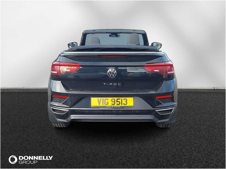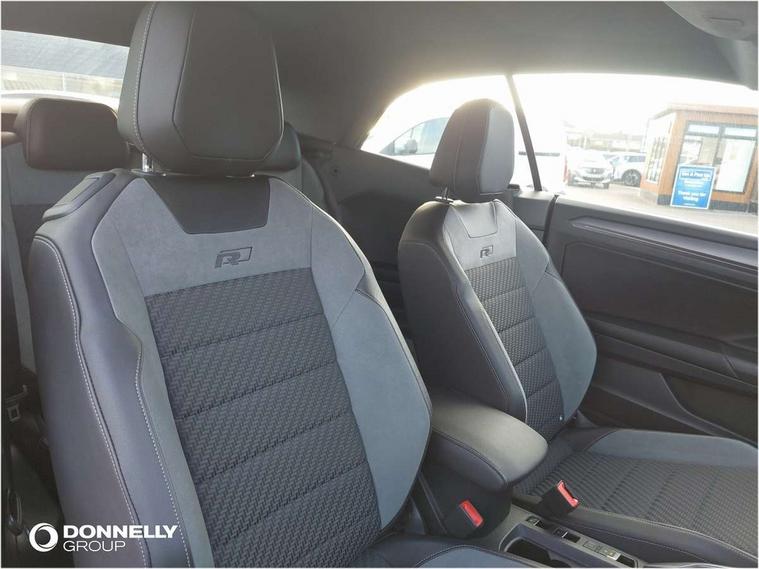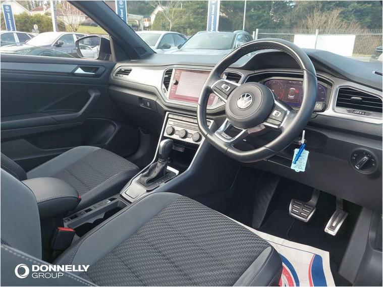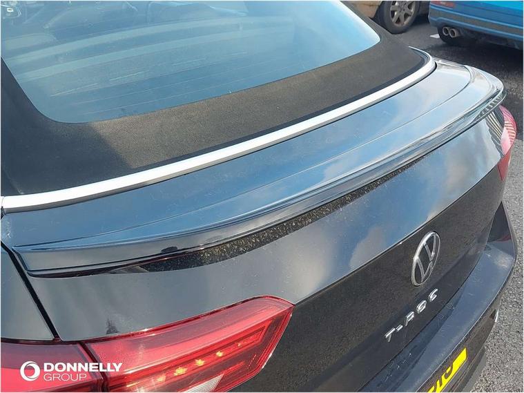 8" colour touch screen, Active Info display 10.25" high resolution TFT dash display with customisable menu and information, Adaptive cruise control, Bluetooth telephone and audio connection for compatible devices, Brake pad wear indicator, Car information display, Car-Net Security and Service, Driver alert system with fatigue detection, Driver tips and journey analysis, Dynamic road sign display, Emergency call service, Lane assist with warning text instrument cluster, Mobile phone interface, Modified key software - reduce switch off time for key status change to Long no motion, Multifunction computer with visual gear change recommendation for fuel consumption, Navigation system discover media including streaming and internet, Online services, Progressive power assisted steering, Speedo and rev counter, electronic odometer, trip, service interval display, digital clock and fuel gauge, Start/stop system with brake energy recovery, Tailgate/trunk lid release from outside, Warning sound and light for front seatbelts unfastened, Wired and wireless app connect, Bluetooth - Simultaneous pairing of 2 compatible mobile devices, DAB Digital radio, Diversity antenna for FM reception, Music playback - MP3, WMA and AAC files, SMS functionality - read, compose and send SMS messages using touch-screen display, Title and cover art display, USB-C Interface and USB charging socket, WeConnect plus, Auto dimming interior rear view mirror, Automatic coming/leaving home lighting function and daytime running lights, Automatic hazard lights activation under emergency braking, Body colour rear roof spoiler, Body coloured exterior mirror housings and door handles, Chrome effect left and right trapezoid exhaust tailpipe fascia surround, Chrome trim on upper and lower radiator grille, Darkened LED tail lamp, Dusk sensor, Dynamic headlight range control with self adjusting whilst driving, Electrically power adjustable, heated, folding, auto dimming, front passenger exterior door mirror lowering function, Front and rear electric windows, Front fog lights with static cornering function, Heat insulating glass windscreen, High level 3rd brake light, LED darkened rear light clusters, LED headlamps with automatic range adjustment and unique signature LED separate daytime running lights, LED rear number plate lights, LED tail lamp rear comination lamps, Power operated canvas convertible top, R-Line design body coloured bumpers, Rain sensor, Rear exhaust tailpipe, Rear fog lamp, Volkswagen roundel, Windscreen wiper with intermittent wipe light, 12V socket in centre console storage area, 2 front reading lights, 3 spoke leather wrapped multifunction sport steering wheel, 50/50 rear seat bench split folding rear seat backrests, Activated charcoal canister for intensified evaporation system, Chrome plated surround to light, mirror and window switch, Climate control - 2 zone electronic air conditioning with automatic air recirculation and allergy filter, Door and side trim panel in foam film, insert in leatherette, Entry aid easy entry (Front folding seats), Front + rear carpet mats, Front centre armrest, Front cupholders x 2, Front seat back storage pockets, Front sports comfort seats with manual height adjustment, Glove Compartment with light, Height/reach adjust steering wheel, Illuminated vanity mirrors in sun visors with air bag label on sun visor and b-pillar, Instrument lighting, white adjustable panel illumination, Interior light delay, Interior light in footwell, Isofix easy fit child seat preparation for 2 outer rear seats, Luggage compartment lighting, Power adjustable lumbar support in front, Rear head restraints, Scuff plates in door apertures, Stainless steel pedals, Storage compartments in driver and front passenger doors, Unique R Line door sill protectors, White ambient lighting, 2 x 3-point rear seatbelts, ABS, Autonomous emergency braking, Driver and front passenger safety-optimised head restraints, Drivers and front passengers airbags with passengers deactivation switch, Drivers seatbelt reminder, Electronic parking brake with auto hold, Electronic stability control (ESC) includes ASR, EDL, EDTC and trailer stabilisation function, Front assist with city emergency braking and pedestrian monitoring, Pedestrian monitoring, Predictive pedestrian protection, Rigid safety cell with front and rear crumple zones, Side airbag/thorax airbag system, for front passengers, Single tone horn, Three point height adjust front seatbelts + pretensioners, Tyre pressure loss indicator, Tyre pressure monitor, Ventilated front and rear disc brakes, Volkswagen roadside assistance, Alarm with interior protection and deactivation via infotainment system, Electronic engine immobiliser, Shadow steel matt decorative inserts in dash and door panel,