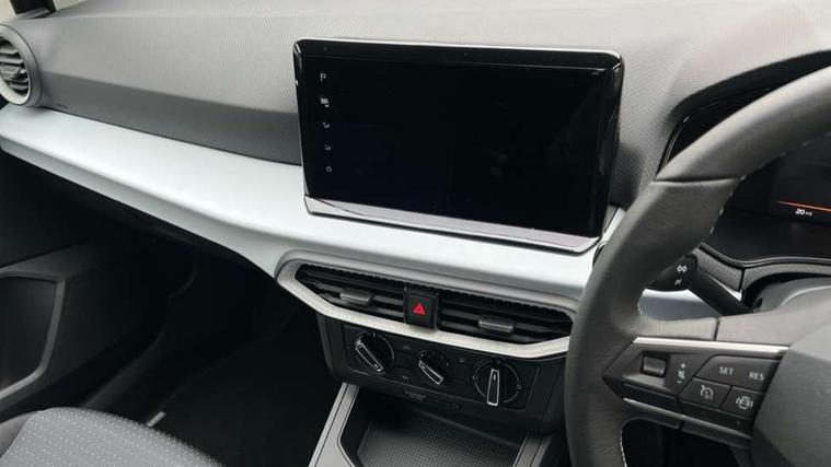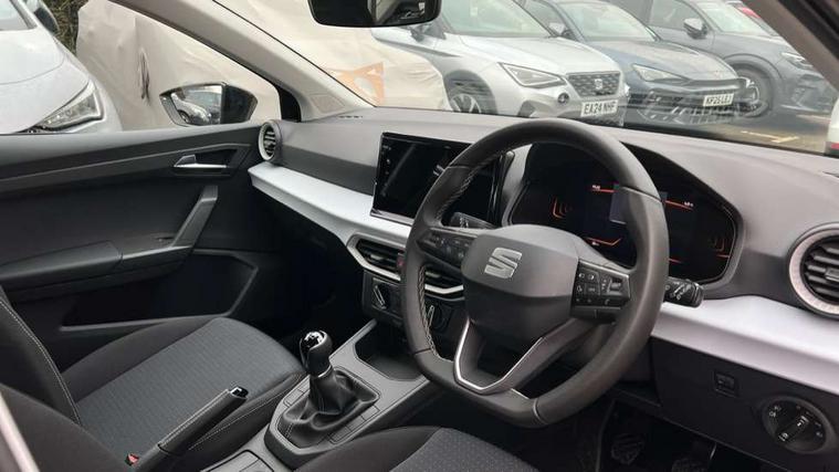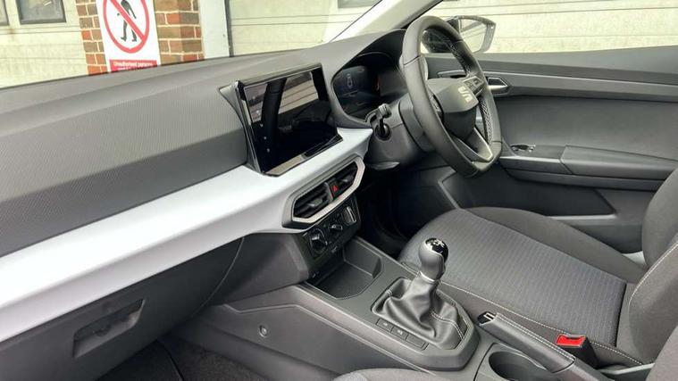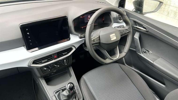 'Lights On' Reminder warning buzzer, 8" Digital cockpit, 9.2" touchscreen navigation system with type C USB socket, Voice control and DAB/AM/FM radio, Auto start and stop system, Bluetooth audio streaming with handsfree system, Cruise control, Digital clock, E-call, Full link smartphone integration with mirror link, wireless apple carplay, Google android auto + USB Type C cable for apple and android devices, Lane assist, Low fuel warning light, Outside temperature gauge, Power Steering, Rear parking sensor, Seat connect plus with safety, service, remote and online, SEAT logo boot release, Speed limiter, Traffic sign recognition, Trip computer, Comfort suspension, Auxiliary input socket, Radio/MP3 player, SD card slot, Steering wheel mounted controls, Anti theft roof antenna, Body colour bumpers, Body colour door handles, Body colour door mirror caps, Dimming interior rear view mirror, ECO LED automatic headlights and LED daytime running lights, Electric front windows, Electric headlight adjustment, Electrically adjustable door mirrors, Front/rear fog lights, LED tail lights, Rain sensor, Rear side wing doors, Rear wiper, Third brake light, 3 seat bench in 2nd row, 60/40 split folding rear seat, Air conditioning with dust and pollen filter, Chrome interior detailing and grey headlining, Cloth upholstery, Comfort seats, Front courtesy lights, Front cupholders x 2, Front reading lights, Gear shift indicator, Glovebox, Grey interior air vents, Height adjustable front and rear headrests (five), Height adjustable front seats, Height/reach adjust steering wheel, Illuminated boot, Instrument lighting with brightness control, Isofix, Leather multifunction flat bottomed sports steering wheel, Passenger sunvisor, Single front passenger seat, Sunvisors with mirror and driver side card holder, Safety and driving pack (S) - Ibiza, 3 point seatbelts on all 3 rear seats, ABS, Active front headrests, Child locks on rear doors, Electronic stability control, Energy recovery system, Front assist forward collision warning and autonomous emergency braking, Front driver and passenger side airbags with curtain airbag and front passenger airbag deactivation, Hill hold control, Multi-Collision braking, Seat belt reminder for front and rear seats, Tiredness recognition system, Tyre pressure monitoring system, Electronic engine immobiliser, Locking wheel bolts, Remote central locking + deadlocks, 16" Design machined alloy wheels in Nuclear grey,