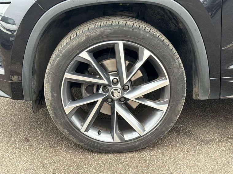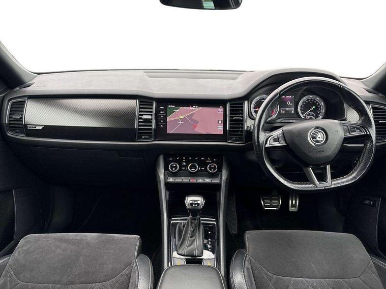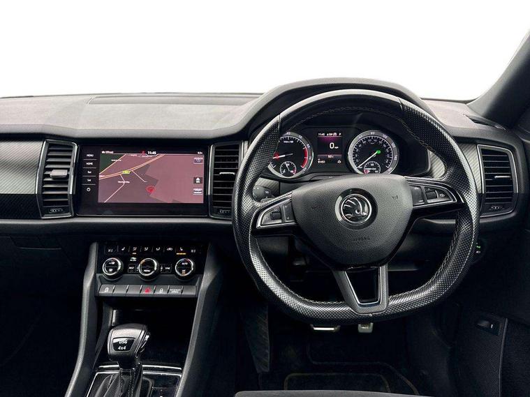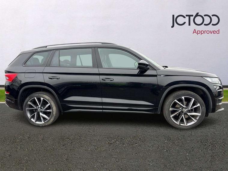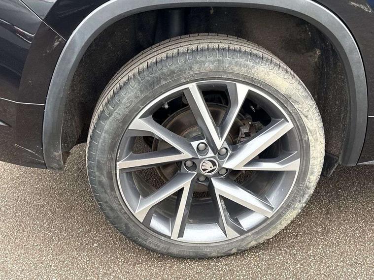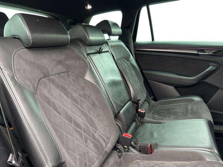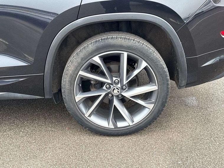 Bluetooth system, Colour multifunction trip computer, Columbus satellite navigation with 9.2" touch screen and integrated Wi-Fi + WLAN, Digital voice enhancement, ECO Stop/start function, Exterior temperature indicator, Progressive power assisted steering, SmartLink plus, Speed limiter, Sports dials, Tailgate unlocking from outside, Bolero Radio, DAB Digital radio, DVD System, USB and SD card connectivity, Aero front windscreen wipers with intermittent function, Aero rear window wiper, Auto dimming rear view mirror, Automatic activation of hazard warning lights, Black roof rails and door mirrors with radiator grille and window surrounds, Black wheel arch surrounds, Body colour door handles, Chrome exhaust tailpipe, Electric front and rear windows, Electrically adjustable/heated/foldable and auto dimming door mirrors with memory function, Front door steps with SportLine logo, Full LED Headlights with adaptive front light system and LED daytime running lights, Headlight washers, Heated rear window, Invisible tailpipe, LED front fog lights with static cornering light function, LED rear fog light, LED third brake light in rear spoiler, Light assistant (coming home/tunnel light), Rain and light sensors, Rear diffuser, Safety reflectors on front and rear doors, Sportline badge on front fender, Sports front and rear bumpers, Sunset privacy glass, Tinted windows, 12V socket in boot, 2 rails with 2 hooks including 4 hooks for net programme, 4 foldable roof handles with rear coat hooks, 4 lashing points on luggage floor, 60:40 foldable rear seat with sliding adjustment and backrest angle adjustment, Alcantara door panels, Alcantara upholstery with Sports seats, Aluminium pedals, Black roof headlining, Bottle holders in door panel in the 1.5 litre front and 1 litre rear, Cargo storage compartments, Centre console with open storage box, cup holder and 12V socket, Chrome headlight control button, Chrome interior door handles, Coat hooks on B pillar, Covered storage compartment on driver side, Front centre armrest with storage compartment, Front/rear courtesy lights, Gear shift lever with chrome frame and black gloss insert, Height adjustable front headrests, Illuminated and cooled glovebox, Illuminated luggage compartment, Isofix system on outer rear seats, LED ambient lighting, Manually adjustable steering column, Net programme in boot (1x horizontal Net, 2x vertical Nets), Overhead glasses storage compartment, Passenger side net compartment on centre console, Pollen filter, Rear centre armrest with cupholders, Removable lamp in luggage compartment, Roll up luggage compartment cover with intermediate position, Small Bags on the inner sides of the front backrests, Small pockets on the inner side of the front backrests, Storage compartment in lower middle Instrument panel, illuminated with closing, Sunvisors with illuminated vanity mirrors, Textile floor mats, Three rear height adjustable headrests, Ticket holder on A Pillar, Umbrella in door panel, LED Interior Light pack - Kodiaq Scout/Sport Line/VRS/Laurin + Klement, Auto door release and activation of warning lights in the event of an accident, Driver and passenger airbags, Electronic parking brake with hill hold control, Emergency rear braking signal, ESC (incl. ABS+MSR+ASR+EDS+HBA+DSR+RBS+MKB), Front and rear three point safety belt on all seats, Front assist includes AEB city/urban, Front side airbags, Fuel cut off safety device, Head and knee airbags, Passenger airbag deactivate switch, Rear disc brakes, Safety vest holder in door, Seat belt reminder for all seats, Two tone horn, Tyre pressure monitor, Warning lights in front doors, Alarm with interior monitoring and tilt sensor with safe function, Immobiliser, Keyless entry and start system (KESSY), Remote central locking, Carbon finish dashboard and door inserts, Sportline plaque on the dashboard, 20" Vega Anthracite alloy wheels with anti-theft wheel bolts,