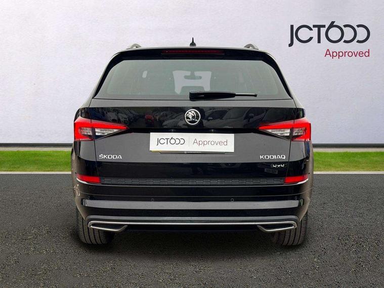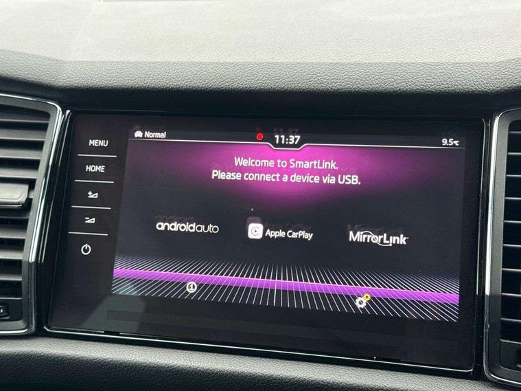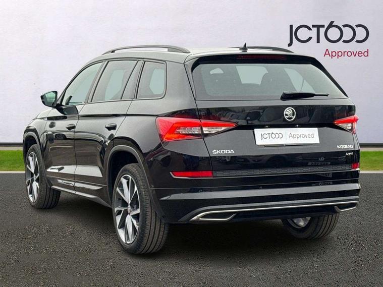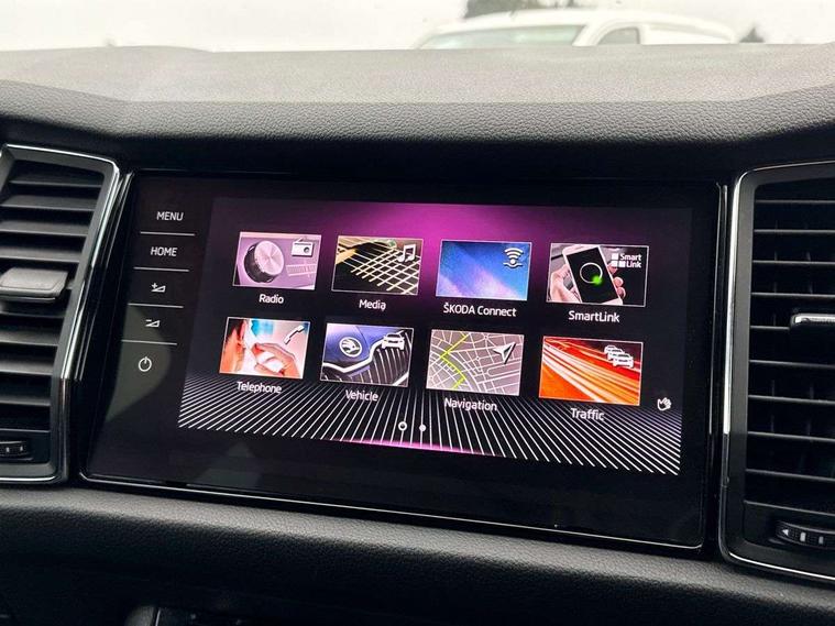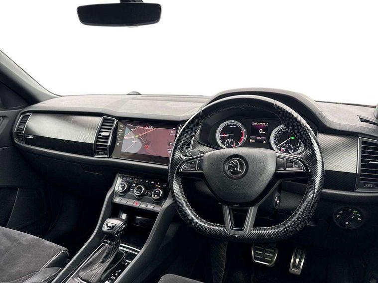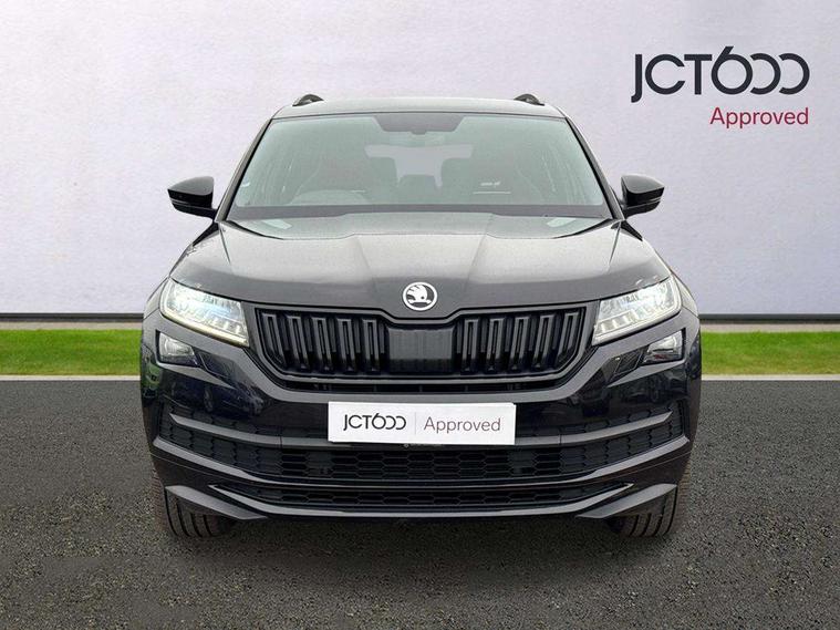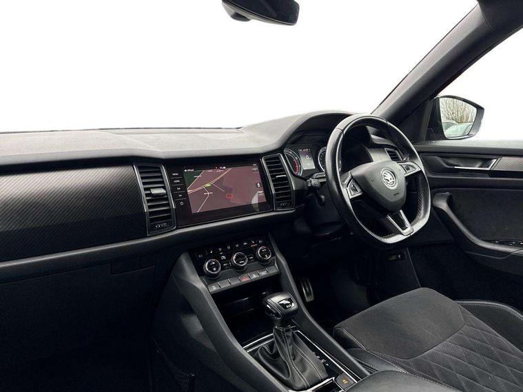 Bluetooth system, Colour multifunction trip computer, Columbus satellite navigation with 9.2" touch screen and integrated Wi-Fi + WLAN, Digital voice enhancement, ECO Stop/start function, Exterior temperature indicator, Progressive power assisted steering, SmartLink plus, Speed limiter, Sports dials, Tailgate unlocking from outside, Bolero Radio, DAB Digital radio, DVD System, USB and SD card connectivity, Aero front windscreen wipers with intermittent function, Aero rear window wiper, Auto dimming rear view mirror, Automatic activation of hazard warning lights, Black roof rails and door mirrors with radiator grille and window surrounds, Black wheel arch surrounds, Body colour door handles, Chrome exhaust tailpipe, Electric front and rear windows, Electrically adjustable/heated/foldable and auto dimming door mirrors with memory function, Front door steps with SportLine logo, Full LED Headlights with adaptive front light system and LED daytime running lights, Headlight washers, Heated rear window, Invisible tailpipe, LED front fog lights with static cornering light function, LED rear fog light, LED third brake light in rear spoiler, Light assistant (coming home/tunnel light), Rain and light sensors, Rear diffuser, Safety reflectors on front and rear doors, Sportline badge on front fender, Sports front and rear bumpers, Sunset privacy glass, Tinted windows, 12V socket in boot, 2 rails with 2 hooks including 4 hooks for net programme, 4 foldable roof handles with rear coat hooks, 4 lashing points on luggage floor, 60:40 foldable rear seat with sliding adjustment and backrest angle adjustment, Alcantara door panels, Alcantara upholstery with Sports seats, Aluminium pedals, Black roof headlining, Bottle holders in door panel in the 1.5 litre front and 1 litre rear, Cargo storage compartments, Centre console with open storage box, cup holder and 12V socket, Chrome headlight control button, Chrome interior door handles, Coat hooks on B pillar, Covered storage compartment on driver side, Front centre armrest with storage compartment, Front/rear courtesy lights, Gear shift lever with chrome frame and black gloss insert, Height adjustable front headrests, Illuminated and cooled glovebox, Illuminated luggage compartment, Isofix system on outer rear seats, LED ambient lighting, Manually adjustable steering column, Net programme in boot (1x horizontal Net, 2x vertical Nets), Overhead glasses storage compartment, Passenger side net compartment on centre console, Pollen filter, Rear centre armrest with cupholders, Removable lamp in luggage compartment, Roll up luggage compartment cover with intermediate position, Small Bags on the inner sides of the front backrests, Small pockets on the inner side of the front backrests, Storage compartment in lower middle Instrument panel, illuminated with closing, Sunvisors with illuminated vanity mirrors, Textile floor mats, Three rear height adjustable headrests, Ticket holder on A Pillar, Umbrella in door panel, LED Interior Light pack - Kodiaq Scout/Sport Line/VRS/Laurin + Klement, Auto door release and activation of warning lights in the event of an accident, Driver and passenger airbags, Electronic parking brake with hill hold control, Emergency rear braking signal, ESC (incl. ABS+MSR+ASR+EDS+HBA+DSR+RBS+MKB), Front and rear three point safety belt on all seats, Front assist includes AEB city/urban, Front side airbags, Fuel cut off safety device, Head and knee airbags, Passenger airbag deactivate switch, Rear disc brakes, Safety vest holder in door, Seat belt reminder for all seats, Two tone horn, Tyre pressure monitor, Warning lights in front doors, Alarm with interior monitoring and tilt sensor with safe function, Immobiliser, Keyless entry and start system (KESSY), Remote central locking, Carbon finish dashboard and door inserts, Sportline plaque on the dashboard, 20" Vega Anthracite alloy wheels with anti-theft wheel bolts,