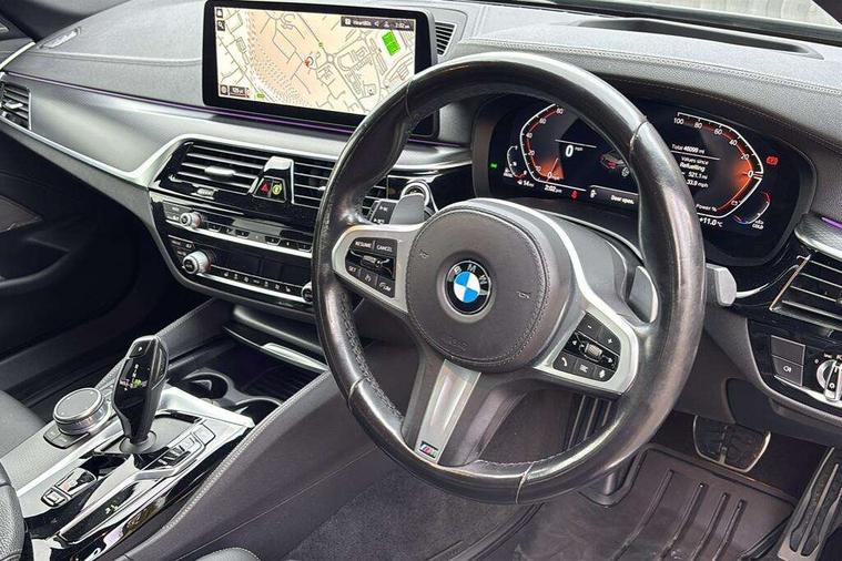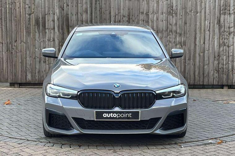32GB hard disc drive (HDD) memory, Active Guard, BMW Live Cockpit Professional sat nav system with 12.3" instrument display and high resolution control display, BMW Teleservices, Brake pad wear indicator, Cruise control with brake assist, Driving experience switch, Electric Power Steering (EPS) with Servotronic, iDrive touch controller with shortcut buttons, Intelligent emergency call, Multifunctional instrument panel, Oil sensor for level and grade, On board computer inc. average speed, fuel consumption, liquid crystal Info display, journey computer, outside temperature display, personal profile, On-board diagnosis - OBD, Powered by Operating System 7.0, Service interval indicator, Speed limiting function, Stop/start button, 48V Mild hybrid technology, Diesel particulate filter, Drive performance control with ECO PRO comfort + sport mode, Engine cover with twin turbo designation, M sport suspension, Steptronic transmission with gearshift paddles on steering wheel, DAB Digital radio, Favourite buttons, Acoustic glazing, All round anti-corrosion system, Automatic windscreen wipers and automatic headlight, Automatically dimming rear view mirror, BMW Individual high gloss shadow line includes exterior mirror frame, window frame surround, B pillar finish, air breather in high gloss black, Body colour door handles, Body coloured bumpers, Door handle illumination, Dynamic brake lights with LED technology, Electric front and rear windows with fingertip open/close + anti-trap facility and comfort closing function, Electrically adjustable and heated exterior mirrors includes integrated direction indicators and automatic parking function, Folding exterior side mirror with auto- dimming, Follow me home headlight function, Heated windscreen washer jets, High gloss black active air stream kidney grille, LED daytime running lights, LED third brake light, M designation on front side panels, left and right in chrome, Trapezoidal visible exhaust tailpipes, xDrive designation on tailgate, 12V power socket in front and rear, 2 cup holders in front, Armrest - front and rear integrated door trim, centre console includes storage compartment, rear centre includes 2 cupholders, Child seat ISOFIX attachment with rear outer seats includes top tether, Front and rear footwell lights, Front reading lights, Height and length adjustable steering column and activation via lateral lever on the steering column, Lockable glove compartment with light, M door sill finishers, M specific pedals, M specific velour floor mats, Multifunction controls for leather steering wheel, Rear headrests, Three spoke sport M leather steering wheel, Ambient lighting pack - 5 Series, Connected package professional - 5 Series, M Aerodynamic pack - 5 Series, Parking assistant pack - 5 Series, Airbags - driver/front passenger, rear and side, first and second row seats head airbags, front passenger seat airbag deactivation, Anti-lock braking system (ABS), Automatic Stability Control (ASC), Brake assist function, Brake energy regeneration, Cornering brake control (CBC), Crash sensor activating central locking release, hazard warning lights, fuel cut off and interior lighting, Deformation zones - front and rear with door reinforcements and bumpers up to 2.5 mph, DSC - Dynamic Stability Control, Dynamic brake control, Dynamic Traction Control - DTC, Electromechanical parking brake with automatic drive away release and auto hold function, Electronic brake force distribution, Engine drag torque control, Front and rear brake discs with interior ventilation, Front head restraints with anti-whiplash, Hill start assist, M Sport brake in high gloss blue painted brake callipers with M designation, Mechanical child proof lock on rear doors, Passive protection for pedestrians, Side impact protection, Three point seat belts for all four seats, Two tone horn, Tyre pressure indicator, Warning triangle and first aid kit, Alarm system (Thatcham 1) with remote control and electronic engine immobiliser, Locking wheel bolts,