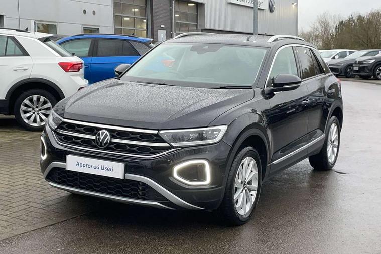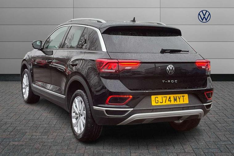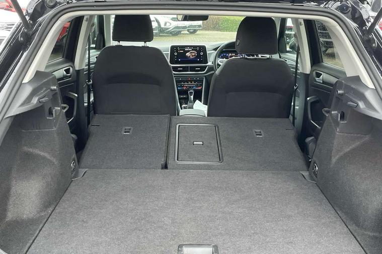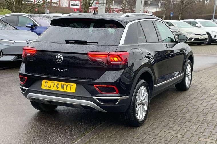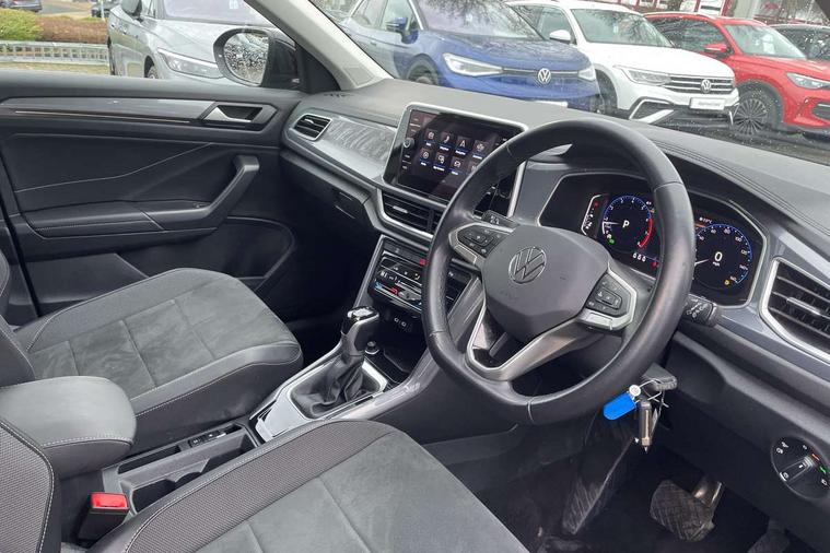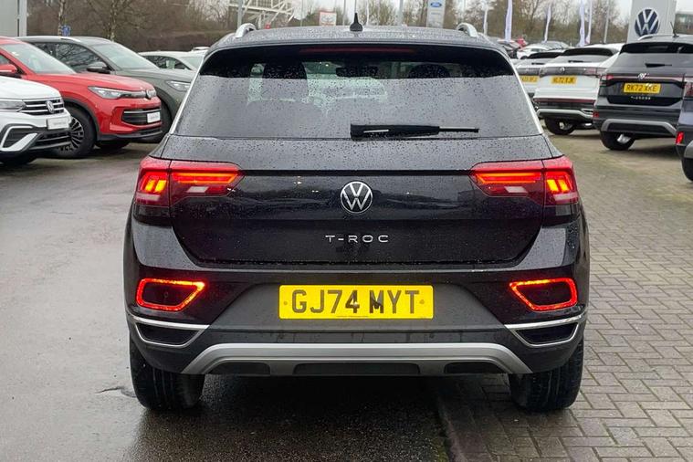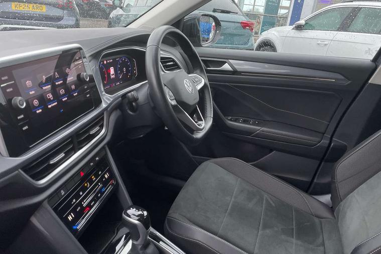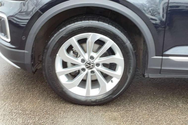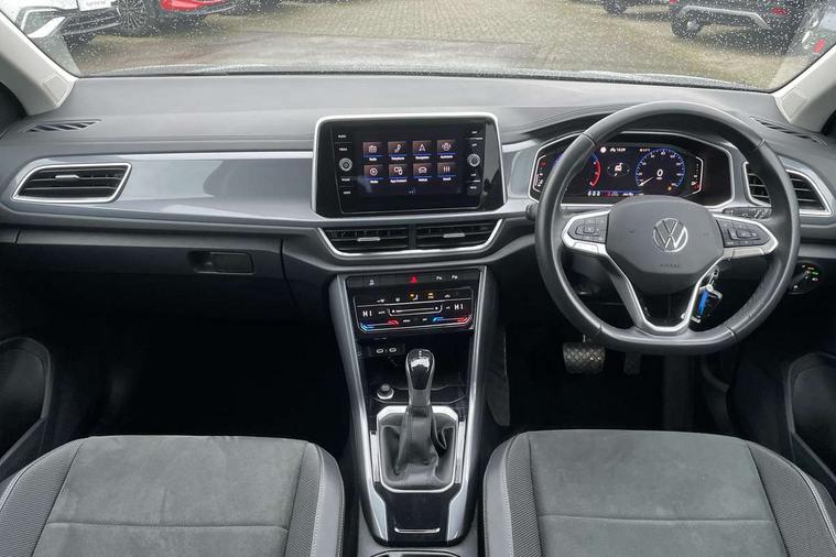 10.25" Digital cockpit pro, Advanced driver attention and drowsiness monitor, Emergency call service, Lane keeping system Lane Assist, Mobile phone interface, Modified key software - reduce switch off time for key status change to Long no motion, Online services, Park assist including front and rear parking sensors, Power assisted speed sensitive steering, Service interval indicator, Tailgate/trunk lid release from outside, Think blue trainer driver tips and journey analysis, Warning sound and light for front seatbelts unfastened, Wireless app connect, Wireless Smartphone charger, Battery regeneration during braking, Start/stop function with battery regeneration, DAB Digital radio, Diversity antenna for FM reception, Front and rear 6 speakers, Music playback - MP3, WMA and AAC files, Premium USB cable in choice of either Apple or Android smartphone compatibility, SD card slot, Simultaneous pairing of 2 compatible mobile devices, Title and cover art display, We Connect and We Connect Plus functionality, Auto dimming interior rear view mirror, Automatic hazard lights activation under emergency braking, Automatic headlight control with LED separate daytime running lights with coming/leaving home function, Body colour sports bumpers with silver metallic underbody fascia, Dynamic headlight range control with self adjusting whilst driving, Electrically adjustable and heated door mirrors, Extended roof spoiler, Exterior mirrors aspherical on driver side, convex on front passenger side, External USB type C socket and charging sockets, Front windscreen wiper with intermittent wipe and 4 position delay, Heated rear window, LED 3rd brake light, LED rear combination lamps, LED rear number plate lights, Light mode for poor weather, rain, fog or snow, Power windows with comfort operation and circuit breaker, Rain sensor, Rear exhaust tailpipe, Rear fog light on one side and reversing lights on both sides, Rear side wing doors, Rear wash/wipe with intermittent wipe setting, Remote electrically foldable door mirrors, puddle lights and reverse activated passenger's door mirror, 12V power socket in centre console, 3 rear head restraints, 3 seat bench in 2nd row, 4 load lashing points in luggage compartment, Air care climatronic air conditoning system with active combination filter and 2-zone temperature control, Chrome plated radiator grille inserts, air vent surrounds and light switch surrounds, Door and side trim panel with leatherette insert, Drawer under drivers seat, Front + rear carpet mats, Front centre armrest, Front comfort sports seats, Front cupholders x 2, Front footwell illumination, Front seat back storage pockets, Glove compartment door with light, Instrument lighting, white adjustable panel illumination, Interior ambient lighting and surround lighting, Interior light delay, Isofix child seat preparation, Leather gearshift handle, LED interior light with switch off delay/dimmer and 2 front/rear LED reading lights, Load-through provision with cup holder when folded down ('Unsplit rear seat bench, split folding backrest, with centre armrest), Luggage compartment lighting, Non-folding front passenger seat backrest, Single front passenger seat, Storage compartment in left and right luggage area, Storage compartment in rear doors, Storage compartments in driver and front passenger doors, Sunvisors with illuminated vanity mirrors, Variable boot floor, height adjustable and removable, Driver assistance pack without proactive passenger protection - T-Roc, 3 point height adj front seatbelts + pretensioners, 3 point seatbelts in outer rear with ECE label, ABS, Child locks on rear doors, City emergency braking and pedestrian monitoring, Driver and front passenger airbag with front passenger airbag deactivation, Driver and front passenger safety-optimised head restraints, Drivers seatbelt reminder, Electronic parking brake, Electronic Stability Control (ESC) inc EDL (Electronic Differential Lock) and ASR (Traction Control), Front and rear passengers curtain airbag system including front side airbags, Predictive pedestrian protection, Rear disc brakes, Two tone horn, Tyre pressure loss indicator, Volkswagen roadside assistance, Trims for alloy wheels,