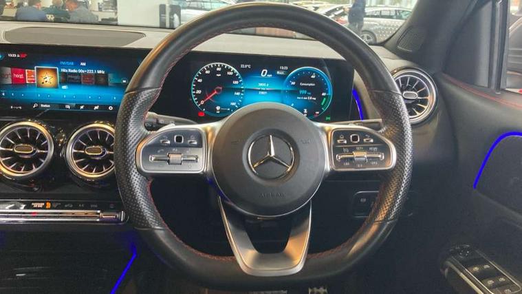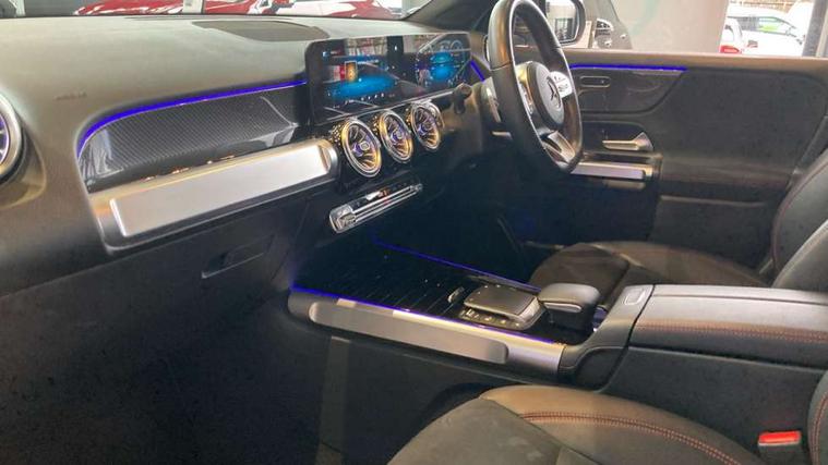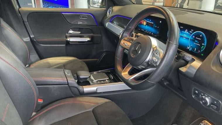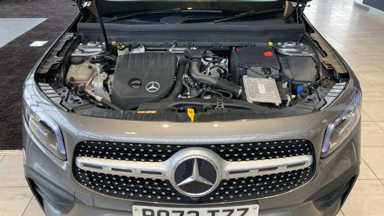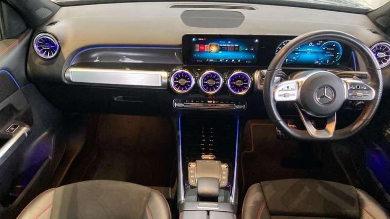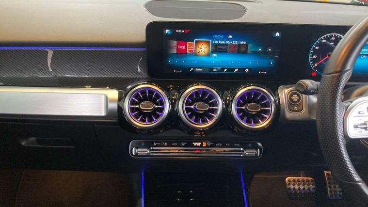 10.25" Digital instrument cluster display screen, 10.25" Digital media screen display, Active lane keeping assist, Attention assist - Monitors steering behaviour and long journey fatigue, Brake pad wear indicator warning light, Car wash mode, Cruise control with limiter, DYNAMIC SELECT with a choice of driving modes (ECO, Comfort, Sport and Individual), ECO start/stop function, Fluid level warning indicator for fuel, oil, coolant and washer fluid, Hard disk navigation, Hey Mercedes Voice activation, Lamp failure indicator, Mercedes me connect including emergency call system, accident recovery, breakdown and maintenance management, Mercedes me remote services, Outside temperature gauge, Owners manual and service booklet in English, Parameter steering system, Pre-installation of private car share, Preinstallation for parking damage notification, Radio aerial integrated into front and rear windshields, Service indicator (ASSYST), Smartphone integration with Apple CarPlay and Android auto, Speed limit assist, Trip computer in multifunction display with current consumption indicator, Comfort suspension, Rear axle multi-link, DAB digital radio tuner, MBUX multimedia system with DAB digital radio and touchpad including satellite navigation, Mercedes Benz sound system (225 W) with 10 speakers, 1 central speaker, speakers on doors, a tweeter on door, one sub woofer + boost amplifier, Pre installation for Mercedes Benz Link, USB (type C) port in front stowage compartment, USB (type C) ports (2) in stowage compartment, Adaptive brake lights, Aerial for GPS, AMG bodystyling door panels black grained with chrome plated inserts, AMG bodystyling front apron with chrome splitter, AMG bodystyling rear apron with diffuser optics and chrome trim element, AMG specific front and rear bumper including underride guard in high gloss chrome, Beltline strips and weather strip in chrome, Body coloured bumpers, Body coloured door handles with chrome insert for keyless entry, Body coloured door mirror caps, Electric adjustable and heated door mirrors with integrated LED side indicators, Exhaust system with dual flow exhaust pipes (non-functional), Front and rear electric windows, Headlamp assist automatic headlamp activation, Heated glass rear windscreen + timer control, High level LED third brake light, Interior mirror with black reading lamps and frameless, LED high performance headlamps with integrated LED daytime running lights, LED tail lamp, Polished aluminium roof rails, Privacy glass with dark tinting on rear side windows and rear window, Radiator grille with pins in chrome and single louvre with chrome insert, Rain sensor windscreen wipers, Rear fog lamp, Rear side wing doors, Rear wiper, Two visible tailpipe trim elements exhaust, 3 seat bench in 2nd row, 3 spoke multifunction sport steering wheel in nappa leather, Air conditioning - Two zone thermotronic luxury automatic climate control with display, AMG sports pedals with brushed stainless steel surfaces and black rubber studs, Artico man-made leather/Microfibre Dinamica upholstery with red contrast stitching, Automatic child seat recognition sensor, Black floor mats with AMG lettering, Black roof lining, Fore/aft adjustment rear seats, Freight packaging with tie-down hooks, Front centre armrest with stowage, Front door sills with illuminated changeable cover, Front passenger grab handle with brushed side silver chrome, Front sports seats with adjustable head restraints, Galvanished gear shift paddles on steering wheel, Heated front seats, Height/reach adjustable steering column, Interior lighting - 64 colour Ambient lighting, Luggage net on driver/front passenger seat backrest, Net in front passenger footwell, Rear armrest with two integral cup holders for drinks, Rear seat easy entry, Single front passenger seat, Stowage compartment in centre console, Stowage compartment with retractable cover, Third row of seats for two people on rear seat, Touchpad on center console, Twin front cup holders, Two outer rear seat isofix and top tether child seat fixing points, Interior lighting with light and sight pack - GLB, Keyless go pack - GLB, Mirror pack - GLB, Parking pack - GLB, Seat comfort package - GLB, 3 rear 3 point seatbelts, Active bonnet pedestrain safety measure which detects an impact and raises bonnet by 65mm, Active brake assist includes forward collision warning system with autonomous braking, Adaptive brake assist with hold function and hill start assist, Airbags - kneebag for driver, Anti-lock braking system (ABS) with brake assist, Childproof locks manually operated for rear doors and electrically operated for rear power windows, Crash responsive emergency lighting, Curve dynamic assist, Driver and front passenger head and sidebags, Driver and front passenger windowbags, Dual stage driver and front passenger airbags, Electronic parking brake, Electronic stability programme with acceleration skid control, Front and rear seatbelt reminder, Front brake callipers with Mercedes Benz lettering, Front passenger seat occupancy sensor, Tyre pressure monitoring system, Warning triangle and first aid kit, Interior monitoring system, Remote central locking and crash sensor with emergency opening function, Thatcham category 1 alarm system with immobiliser and interior protection, Urban guard vehicle protection - Anti theft alarm system, tow away protection with visual and acoustic warning and alarm siren, Vehicle key with decorative surround in chrome, Black air vents with chrome surround, Carbon structure trim, 19" AMG 5 twin spoke light alloy wheels painted in high gloss black with high sheen finish, Summer tyres, Tirefit tyre sealant kit,