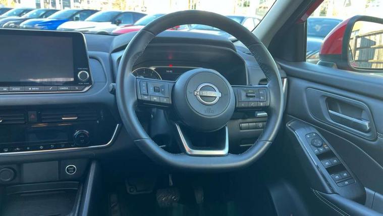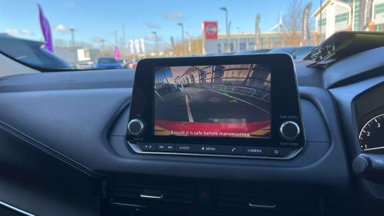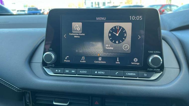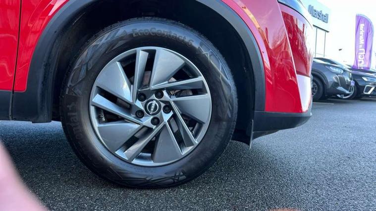 7" High definition full colour TFT screen combimeter, Android auto/Apple CarPlay (Wired), Blind spot warning, Drive modes (sport, normal, eco), Electric speed sensitive power steering, Emergency and breakdown call, Idle stop/start system, Intelligent Cruise control (ICC), Intelligent driver alert system, Intelligent forward collision warning, Intelligent lane intervention, Lane departure prevention, Lane departure warning system, Maximum speed limiter, Nissan connect 8" touchscreen infotainment system, Push button starter, Rear cross traffic alert, Rear parking sensors, Rear view camera, Traffic sign recognition with legal speed adjustment, Trip computer, 6 speakers, AM/FM audio system with DAB, Bluetooth audio streaming, Front USB connections (Type-A and Type-C), Auto dimming rear view mirror, Auto rear wiper when reversing, Automatic hazard signal with emergency stop signal, Body colour mirror caps, Body coloured door handles, Bodyside mouldings, Chrome side window finisher, Door handle with button, Electric auto folding door mirrors, Electrically adjustable and heated door mirrors with LED turn indicator, Follow me home headlights, High beam assist, Intelligent auto headlights, LED 3rd brake light, LED daytime running lights, LED Headlights, LED rear lights, One touch front and rear electric windows with remote opening and closing, Partially body coloured bumpers, Rear reversing light (bulb lighting), Rear roof spoiler, Rear side wing doors, Shark fin antenna, Splash free rain sensing wipers, Three blink turn signal, 12v power socket in dashboard and luggage, 2x Rear coat hooks, 3 bench rear seats in 2nd row, 3 rear headrests, 4 folding assist grip, 6-way manually adjustable driver's seat, 60/40 split folding rear seat bench, Centre console storage tray, Chrome interior door handles, Cloth monoform upholstery, Driver and front passenger sunvisors with illuminated vanity mirrors, Dual zone automatic climate control with pollen filter, Electrically adjustable lumbar support for driver, Front and rear door storage, Front centre console and armrest, Front cupholders x 2, Front door with bottle holders, Glovebox with light, Hard trunk cover, Height adjustable driver's seat, Height adjustable front headrests, Height adjustable passenger seat, Luggage space lighting, Manually adjustable passenger (slide recline + lifter), Multifunction steering wheel, Passenger seat back pocket, Rear armrest with 2 cupholders, Rear door bottle holders, Single front passenger seat, Steering wheel gearshift paddles, Steering wheel switches, Sunglasses holder, Tilt/telescopic adjustable steering wheel, Two rear isofix child seat anchorage points with top tether, 3x3 point rear seatbelt pretensioners + load limiters, ABS with EBD and brake assist, Active brake limited slip, Auto hold function, Child locks on rear doors, Curtain and front side, far side airbags, Driver and passenger airbags, Driver, passenger and 2nd row rear seat belt reminder, Electronic parking brake, Front seatbelt pretensioners + load limiters, Height adjustable front seatbelts, Hill start assist, Intelligent blind spot intervention, Intelligent front emergency braking with pedestrian, cyclist recognition and junction assist, Intelligent rear automatic braking, Tyre pressure monitoring system, Vehicle dynamic control, Capless fuel filler, Engine immobiliser, Intelligent Key, Remote central door locking with deadlocking, Thatcham Cat.1 alarm, Interior instrumental panel A finisher, 17" Alloy wheels, Tyre puncture repair kit,
