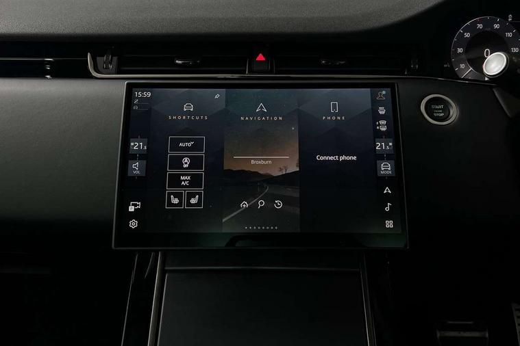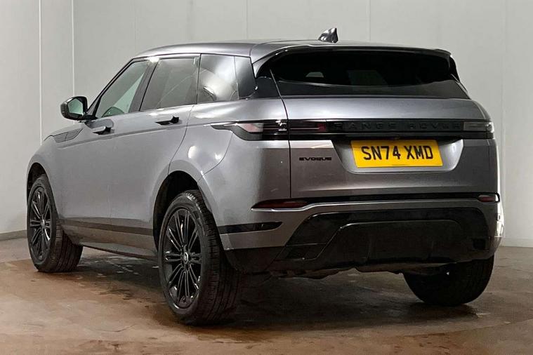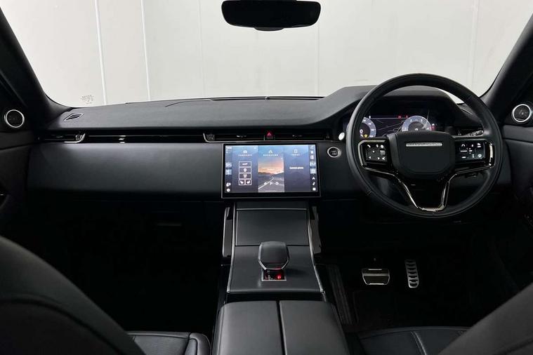 11.4" touch screen, Adaptive cruise control, Android Auto, Apple car play, Blind spot assist, Bluetooth connectivity, Brake pad wear indicator warning light, Driver condition monitor, eCall emergency system, Eco mode, Electronic power assisted steering (EPAS), Front and rear parking aid, InControl remote, Interactive driver display, Land Rover InControl apps, Lane keep assist, Pivi pro connected includes diamond pivi variant, smart settings, connected navigation pro, nuance speech licence, Powered tailgate/boot lid, Rear collision monitor, Rear traffic monitor, Traffic sign recognition with adaptive speed limiter, Voice control system, Wireless device charging, All terrain progress control, Diesel exhaust fluid (DEF) large tank, Efficient Driveline, Large fuel tank, Passive suspension, Terrain Response 2, Digital Audio Broadcast radio-DAB, Steering wheel mounted controls, Acoustic laminated windscreen, Auto headlights, Automatic headlight levelling, Electric windows with one touch open/close and anti trap, Flush deployable exterior door handles, Front and rear recovery eyes, Heated rear window with timer, Heated washer jets, Heated windscreen, Pixel LED headlights with signature DRL and LED tail Lights, Power fold, auto-dimming, heated door mirrors with approach lights and auto dimming driver side, Rain sensing windscreen wipers, Rear animated directional indicators, Rear fog lights, Rear side wing doors, Rear wiper, Side repeater indicators in mirror, Tailgate spoiler, Third brake light, Winter wiper park position, 14 way driver memory electric front seats with 2 way manual headrests + 4 way lumbar support, bolsters, 40:20:40 split folding rear seats with centre headrest and armrest, Ambient interior lighting, Bright metal pedals, Carpet mats, Chrome tread plates with range rover branding Includes stainless steel loadspace scuff plate with etched graphic, Customer configurable single point entry, Electrically adjustable steering column with memory function and easy entry/exit, Front and rear cupholders, Heated steering wheel, Isofix system on outer rear seats, Overhead lighting console, Overhead stowage for sunglasses, Passive front head restraints, Rear air vents, Rear head restraints, Satin chrome gearshift paddles, Single passenger seat, Sunvisors with illuminated vanity mirrors, Twin sliding front centre armrest, Online pack with data plan - Evoque, Power socket pack 2 - Evoque, 3 rear 3 point seatbelts, Anti-lock braking system (ABS), Brake hold function, Customer configurable autolock, DSC - Dynamic Stability Control, Electronic brake force distribution, Electronic parking brake, Electronic traction control, Emergency braking, Front and rear seatbelt reminder, Hill descent control, Hill launch assist, Low traction launch, Occupant protection assist, Passenger seat occupant detector, Power operated child locks, Roll stability control, Six airbags - Driver and passenger airbags/driver knee airbag/front side airbag and curtain airbags, Torque vectoring brake, Tyre pressure monitoring system, Alarm, Immobiliser, Intrusion sensor, Keyless entry, Locking wheel nuts,