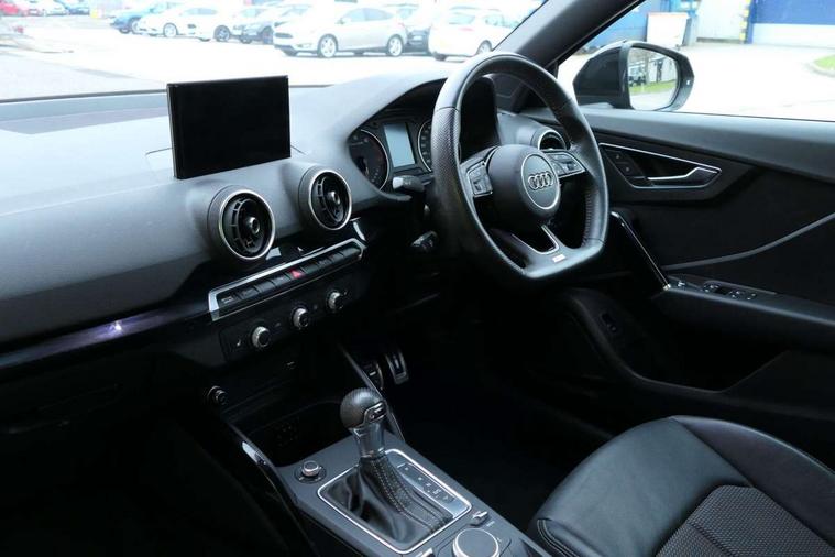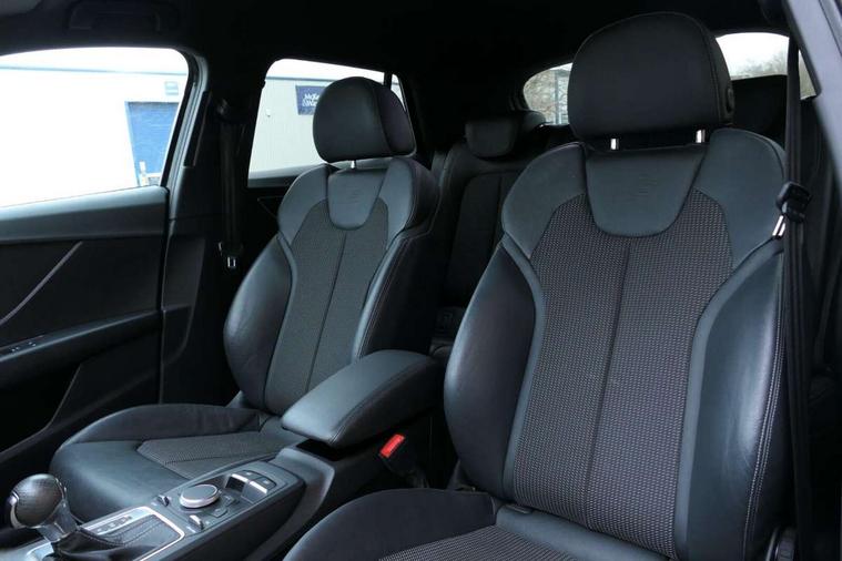 Audi drive select, Audi smartphone interface, Automatic start/stop system with recuperation, Bluetooth interface includes bluetooth audio streaming, Cruise control, MMI - Multi Media Interface control system, MMI SD card integrated nav with 3D map display, dynamic route guidance with TMC, MMI search, natural voice recognition and myAudi special destinations, Power operated tailgate, Progressive steering, Service interval indicator, Dynamic suspension, 2 x SDXC card reader, Audi music interface - apple iPod, apple iPhone, USB storage media, compatible MP3 players, 2 x USB charging points and 1 x Aux-in, CD Drive, DAB digital radio and AM/FM radio, MMI radio plus with 7" colour MMI screen and MMI controller, Black window trims, Bumper in full body colour paint finish, Chrome exhaust tailpipe, Electrically adjustable and heated door mirrors with integrated LED side indicators, Front and rear electric windows, Front underbody guard and rear diffuser trim in selenite silver, Front windscreen with grey tinted sunband, Headlight washers, Interior mirror, LED headlights with LED rear lights + dynamic rear indicators, LED indicator lights, Manual folding door mirrors, Privacy glass - dark tinted rear and rear side windows from B-pillar backwards, Rain and light sensors, Rear wiper, S Line body styling - front and rear bumpers, side skirts, radiator grille, rear diffuser insert and front air intakes, 3 spoke flat bottomed high multi-function leather sport steering wheel with gearshift paddles, 60/40 split folding rear seat bench, Black cloth headlining, Floor mats with contrast stitching, Front centre armrest, Front headrests, Front sport seats with S embossed logo, Height/reach adjust steering wheel, Illuminated door sill trims with S logo, ISOFIX child seat mounting for front passenger with airbag deactivation and outer rear seat including top tether attachment point for outer rear seats, Manual seat adjustment including seat height adjustment for front seats, Stainless steel pedals, Storage compartments - Glovebox, cupholder compartment in centre console, storage compartment in rear centre console, front and rear door pockets, Three rear headrests, Black styling pack - Q2, LED interior lighting pack - Q2, Non smoking pack - Q2, 3x3 point rear seatbelts, 6 airbags - Front, curtain and front side airbags, Electromechanical parking brake, Electronic stabilisation control including ABS, ASR and EDL, Extended and proactive pedestrian protection, Hill hold assist, Multi collision brake assist, Pre-sense front with pedestrian recognition, Seatbelt monitoring, Tyre pressure warning light, Warning triangle and first aid kit, Anti theft alarm, Anti theft wheel bolts, Central locking system with remote control key, Electronically operated child locks, Aluminium interior element, Black inlays - decorative trims in black for centre console and front and rear door pull handles,