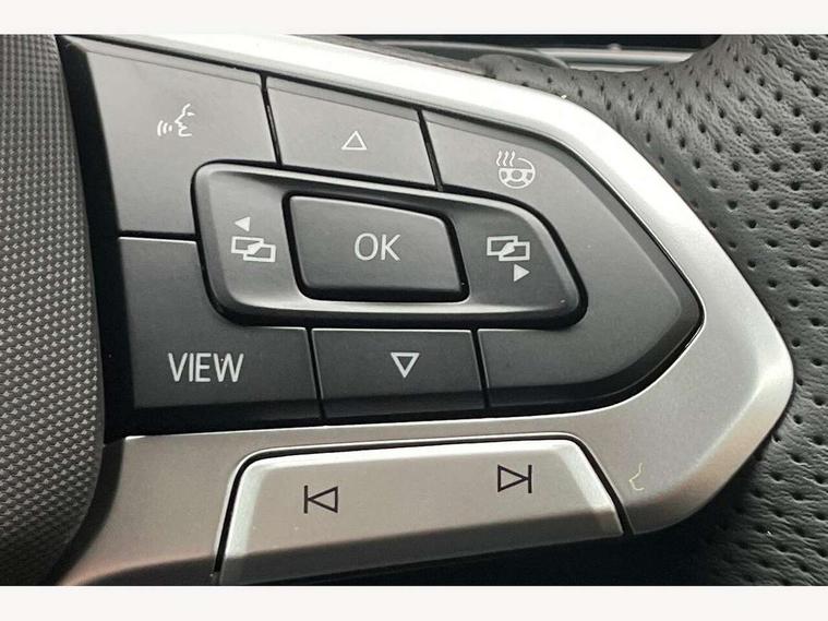 Activated carbon canister, Adaptive cruise control (ACC), Advanced driver attention and drowsiness monitor, Dynamic road sign display, Dynamic steering, E-Sim card for online connectivity, eCall emergency call system, Multi-color Digital cockpit pro, selection of different info profile possible, Multifunction front facing camera for distance control, Navigation system, Oncoming vehicle braking when turning including swerve support, Speed limiter, Speedo, rev counter, electronic odometer, trip, service interval display, exterior temperature and fuel gauge, Traffic jam assist, Voice enhancer and voice control, Warning signal and warning light for front and rear seatbelts not fastened, We connect plus preparation, We connect preparation, Wireless app connect, Hybrid propulsion system, Petrol Particulate Filter, Start-stop system with battery regeneration (recuperation - energy recovery during braking), XDS electronic differential lock for improved traction and handling, 2 USB C ports in front, 2 USB charging sockets on the centre console in the rear charging capacity upto 45W, Digital radio reception (DAB), Diversity antenna for FM reception, Gaming platform via car app, Infotainment system with 12.9" display, Mobile phone interface with inductive charging feature, 3rd brake light, Automatic headlamp activation with Coming home and Leaving home feature, Body colored bumpers in R-Line style, Body colour door handles, Exterior mirrors convex on the left and aspherical on the right, Front and rear electric windows, Heat insulating windshield made of laminated glass, LED separate daytime running light, Rear exhaust tailpipe, Rear fog light on one side and reversing lights on both sides, Rear side wing doors, Rear windscreen washer and wiper with interval delay, Remote electrically foldable door mirrors, puddle lights and reverse activated passenger's door mirror, Welcome light with surround lighting, 12V socket in front centre console, 12V socket in luggage compartment, 3 rear head restraints, 3 seat bench in 2nd row, Ambient lighting with 30 colour including LED light unit in front footwell with selectable light colour, Black roof lining, Brushed stainless steel pedals, Chrome plated radiator grille inserts, air vent surrounds and light switch surrounds, Door insert, side trim panel and arm support in leatherette, Front + rear black carpet mats, Front centre armrest, Front seat lumbar support adjuster, Integrated front head restraints, ISOFIX anchors for child seats on outer rear bench seats and on front passanger seat compatible for i-Size, Luggage compartment lighting, Manual height adjustable front passenger seat, Manually height adjustable driver seat, Plastic gear knob, Premium sports seats in front, Rear cupholder and loadthough, Sardegna cloth upholstery with front and outer rear seats Art Velour inner sides of bolsters, Single front passenger seat, Split folding backrest with centre armrest and unsplit rear seat bench, Sun visors with illuminated vanity mirrors, Titanium black instrument panel, 3 point height adj front seatbelts + pretensioners, 3 rear three point seatbelts, ABS, Autonomous emergency braking front assist with pedestrian and cyclist monitoring, Child locks on rear doors, Driver and front passenger airbag with front passenger airbag deactivation, Electronic parking brake with auto hold, ESC (Electronic Stability Control), Extended pedestrian protection measures, Hill start assist, Rear disc brakes, Two tone horn, Tyre pressure loss indicator, Volkswagen roadside assistance, Anti theft wheel bolts, Preparation for alcohol interlock, Decorative inserts carbon grey for dashboard and front door trim panels, Tool kit for tyre mobility set, Tyre mobility kit Includes 12V compressor and tyre sealant,