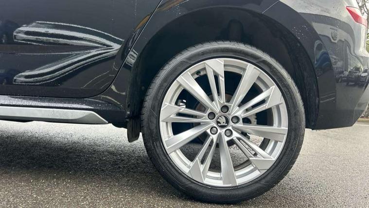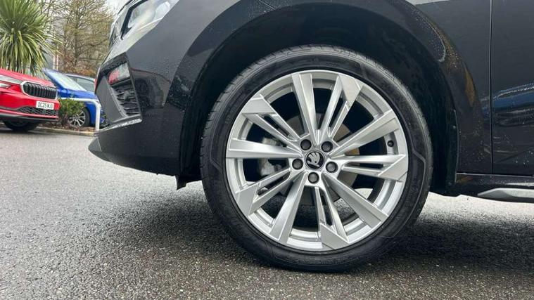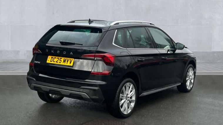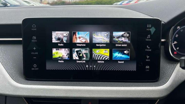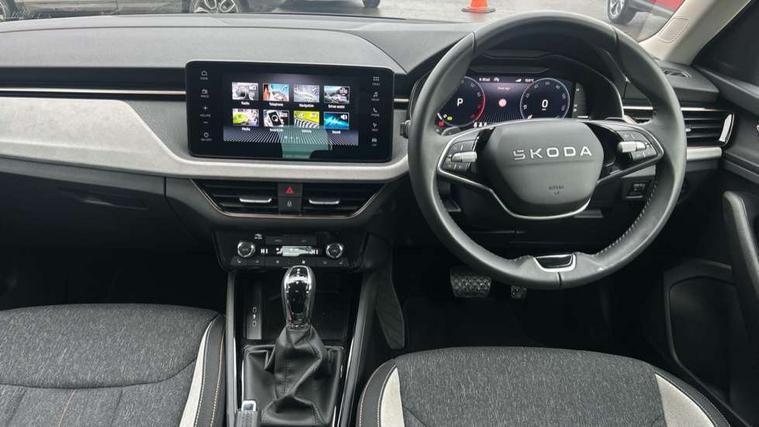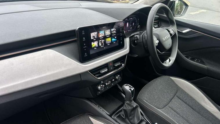 Advanced driver attention and drowsiness monitor, Bluetooth system, E-call, Front assist system, PAS, Rear parking sensors, Rear view camera, Service indicator, Speed limiter, Traffic sign recognition, Virtual cockpit with 10.25" display, Voice control system, Wireless smartlink, 4 USB C ports, 8 Speakers, 9.2" Skoda navigation display, DAB Digital radio, Auto dimming rear view mirror, Automatic headlight control with coming home and leaving home feature, Body colour bumpers, Body colour door mirrors and handles, Chrome grille surround, Chrome roof rails with chrome window surround, Front and rear electric windows, Heated rear window, LED daytime running lights, LED high beam, LED low beam, LED third brake light, Light sensors, Privacy glass, Rear side wing doors, Rear wiper, Ticket holder inside windscreen, 12V socket in luggage compartment, 3 seat bench in 2nd row, Accent black door inserts, Ambient lighting in white/red, Cargo elements, Chrome inner door handles, Copper hotstamping, Driver and passenger sun visors with vanity mirror, Dual zone climate control, Front and rear roof lights, Front centre armrest, Front head restraints, Glove compartment with illumination, Height adjustable driver seat, Height adjustable front passenger seat, Ice scraper, Inner circulation control with pollen filter, ISOFIX on front passenger seat, Isofix preparation for back seats, Leather gearknob and handbrake lever, Lodge cloth upholstery, Manual lumbar support for front seats, Net package and top tether hooks in boot space, Net under rear shelf, Overhead glasses storage compartment, Pocket on the back of both front seats include mobile phone pockets, Rake/reach adjustable steering wheel, Reading lights, Rear centre armrests, Single front passenger seat, Suedia grey decor inserts, Textile floor mats, Third rear headrest, Top tether for front passenger seat, Umbrella in driver's door, Convenience pack - Kamiq, 3x3 point rear seatbelts, Airbags - driver and front passenger, Disc brakes, ESP, Extended and predictive pedestrian/cyclist protection, Front passenger airbag deactivation switch, Front side airbags with curtain airbags, Hill hold control, Manual leather parking brake, Manual rear child locks, One tone horn, Seatbelt reminder for driver an co-driver, Traction control, Tyre pressure monitor, Anti-theft alarm system with interior monitoring, backup horn, towing protection and remote central locking with SAFE system, Anti-theft wheel bolts, Electronic engine immobilizer,