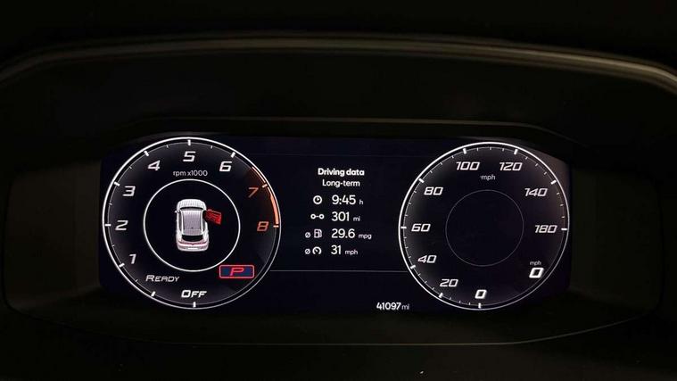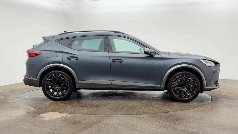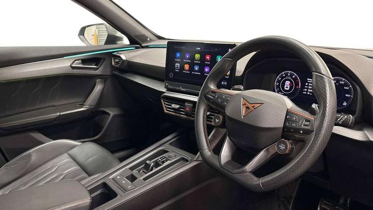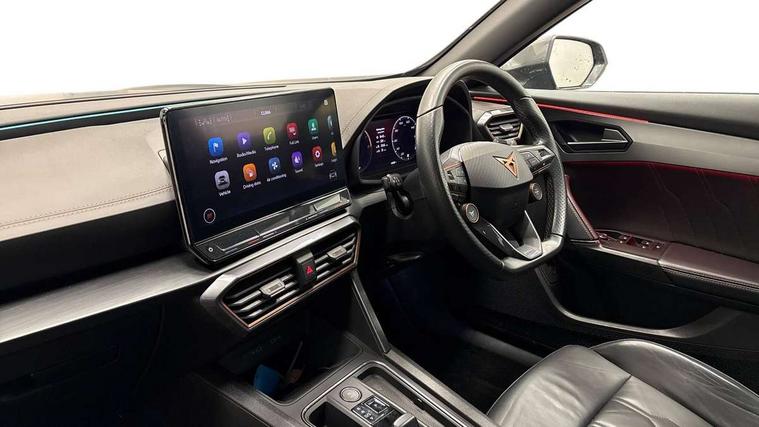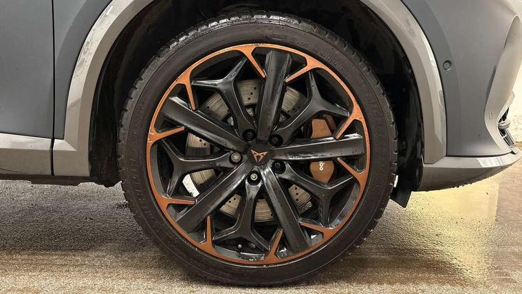 Digital cockpit and configurable dashboard, Driver alert system, Dynamic chassis control with driving profile selection (Comfort, Sport, CUPRA, Individual), Forward collision warning with automatic braking, Lane assist, Navigation system with 12'' Touchscreen Display, Park assist (inc front/rear parking sensors), Predictive adaptive cruise control with speed limiter, Rear view camera, RPM, trip computer, outside temp gauge, instrument light brightness, low fuel warning light, lights on reminder, gearshift indicator, Service interval indicator, Speed sensitive power steering, Start/stop system with regenerative braking, Virtual pedal and electric tailgate, Voice control system, Wireless apple carplay, Wireless phone charger, Electronic locking differential and dynamic traction support, Sports suspension with front shock absoption, 2 front and 2 rear USB type C sockets, Auxiliary input socket, DAB radio, Auto dimming rear view mirror, Body colour door handles, Body coloured bumpers, Dark grey wing mirror, Daytime running light with automatic headlight control and coming home feature, Dynamic headlight range control, Electric front/rear windows, Electrically adjustable heated and folding door mirrors with memory function, Front fog lamps with cornering function, Gloss black roof rails and window surrounds, LED Taillights with dynamic indicator, Matrix LED headlights, Rain sensing wipers, Rear diffuser with twin exhaust pipe on each side, Rear side wing doors, Rear wash/wipe, Sports bumpers, Third brake light, Tinted rear windows, VZ logo rear badging, Welcome lights, 12v power supply in centre console, 12V socket, 12v socket in loadspace, 2 front and 2 rear reading lights, 230V socket, 3 seat bench in 2nd row, 60/40 split rear bench seat with armrest and mechanical seat release, Black headlining, Cupra sports pedals, Dust/pollen filter, Front and rear head restraints, Front centre armrest, Height/reach adjust steering wheel, Illuminated interior front door sills, Illuminated sunvisor with mirror, Isofix, Leather heated multi-function sports steering wheel with start stop, CUPRA mode button and gear shift paddles, Luggage tie-down hooks, Single front passenger seat, Three zone climate control with control panel in rear, Variable luggage/load compartment floor, Wraparound lighting, Genuine Nappa leather Pack - Cupra, Safety and driving pack (XL) - Formentor, 3 point seatbelts on all rear seats, ABS, Brake control system - ESC and brake booster, Brembo brakes, Child proof door locks, Driver and front passenger airbags with front passenger airbag de-activation, Electronic parking brake, Front and rear disc brakes, Front side curtain airbags, Hill hold control, Public e-call, Seat belt reminder for front and rear seats, Tyre pressure monitoring system, Anti theft alarm system, Keyless entry and start system (KESSY), Locking wheel bolts, Copper and aluminium interior detailing, 19" 'Exclusive' copper and black alloy wheels, Tyre repair kit,