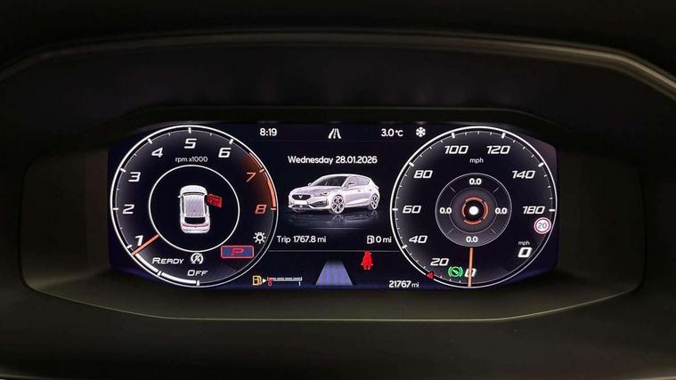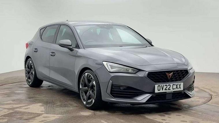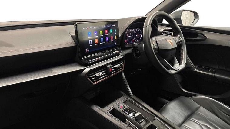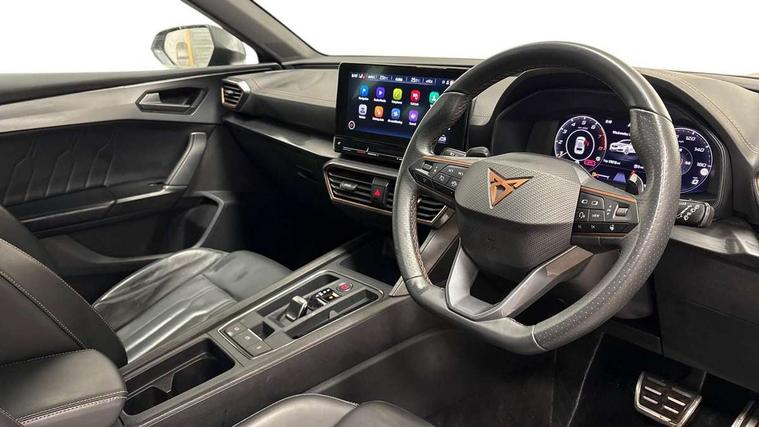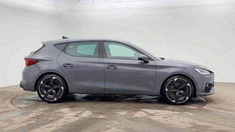CUPRA drive profile selection with 4 modes (Comfort/Cupra/Sport/Individual), throttle response and gearshift mode, Digital cockpit, E-call, Front assist with forward collision warning braking reaction to vehicles, pedestrians and cyclists, Full link smartphone integration with Mirror Link, wireless Apple CarPlay and wired Google Android Auto, Lane assist, Lockable tailgate, Park assist (inc front/rear parking sensors), Rear view camera, RPM, trip computer, outside temp gauge, instrument light brightness, low fuel warning light, lights on reminder, gearshift indicator, Service interval indicator, Start/stop system with regenerative braking, Wireless phone charger, Standard suspension, XDS electronic differential lock and dynamic traction support, 7 speakers, Auxiliary input socket, Auto dimming rear view mirror, Body colour door handles, Body coloured bumpers, Cupra sports bumpers, Dark tinted rear windows, Electric front/rear windows, Electrically adjustable, heated and folding door mirrors, LED front fog lamps with cornering function, LED rear fog lamp, Matrix LED Headlights with variable light distribution, Matrix Beam and Dynamic headlight range control, Rain sensing wipers, Rear coast to coast lighting, Rear diffuser with splitter and oval quad exhaust pipes, Rear side wing doors, Rear wash/wipe, Separate daytime running light with automatic headlight control and coming home feature, Third brake light, 12v power supply in centre console, 3 seat bench in 2nd row, 5 headrests, 60/40 split rear bench seat with armrest, Ambient lighting (glovebox, footwell, ambient lighting multicoloured), Black headlining, Cupra sports pedals, CUPRA Supersports, heated steering wheel with satellite buttons, Dust/pollen filter, Folding boot cover, Four x USB Type C ports, Front and rear reading lights X 4, Front centre armrest, Heated front seats, Height/reach adjust steering wheel, Illuminated interior front door sills, Interior wraparound lighting, ISOFIX points in outer rear seats with top tether anchorage points, Jack and tool kit, Luggage tie-down hooks, Nappa leather upholstery, Powered driver seat with memory and manual height adjustment for passenger, Powered lumbar adjustment on driver side, manual on passenger side, Single front passenger seat, Sports bucket seats, Storage pockets on rear of front seats, Sunvisors with illuminated mirror, Three zone climate control, Dynamic and comfort pack - Leon Cupra, Media system plus with navigation pack - Leon Cupra, 3 point seatbelts on all rear seats, ABS, Brake control system - ESC and brake booster, Child proof door locks, Cupra black brake calipers, Driver and front passenger airbags with front passenger airbag de-activation, front side and curtain airbags, Electronic parking brake, Extended safety system - seat belt tensioner, window closure and hazard lights, Hill hold control, Rear disc brakes, Seat belt reminder for front and rear seats, Tiredness recognition system, Tyre pressure monitoring system, Anti theft alarm system with interior monitoring in cab, backup horn and towing protection, KESSY Advanced - Keyless start, keyless entry, Locking wheel bolts, Chrome and copper interior detailing, Copper stitching on dashboard trim, 19" Aerodynamic machined sport black and silver alloy wheels with 91Y tyres, Space saver spare wheel,