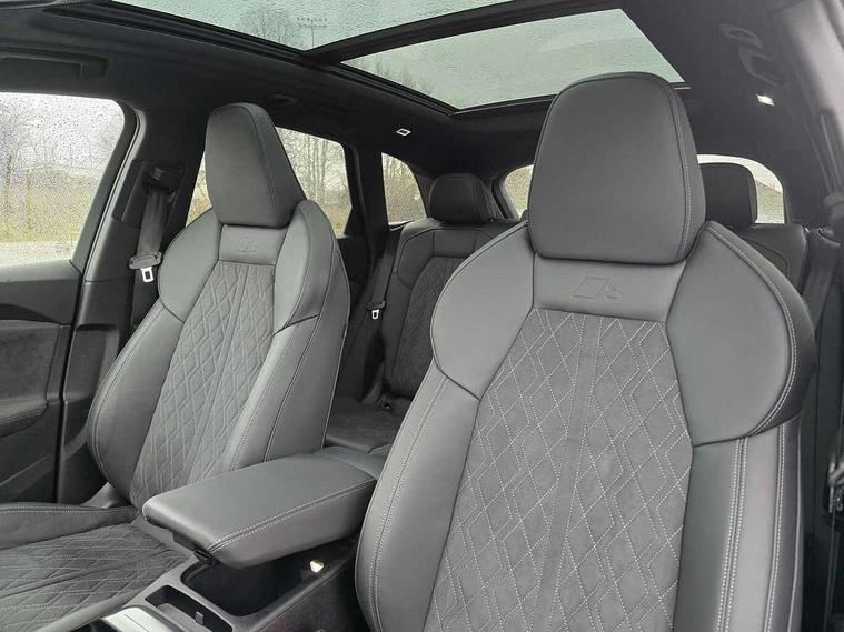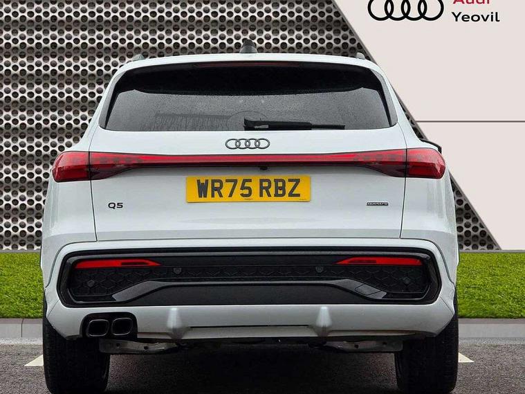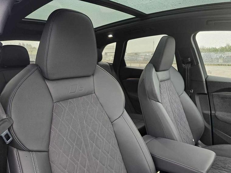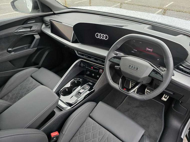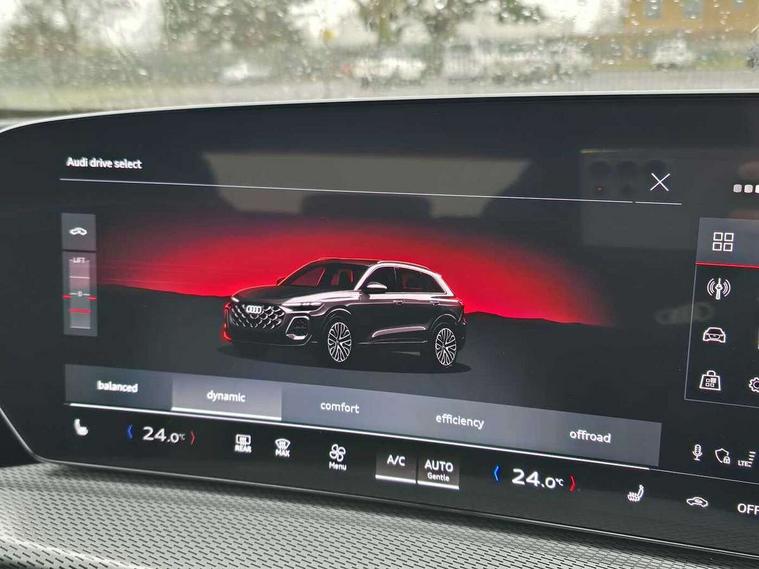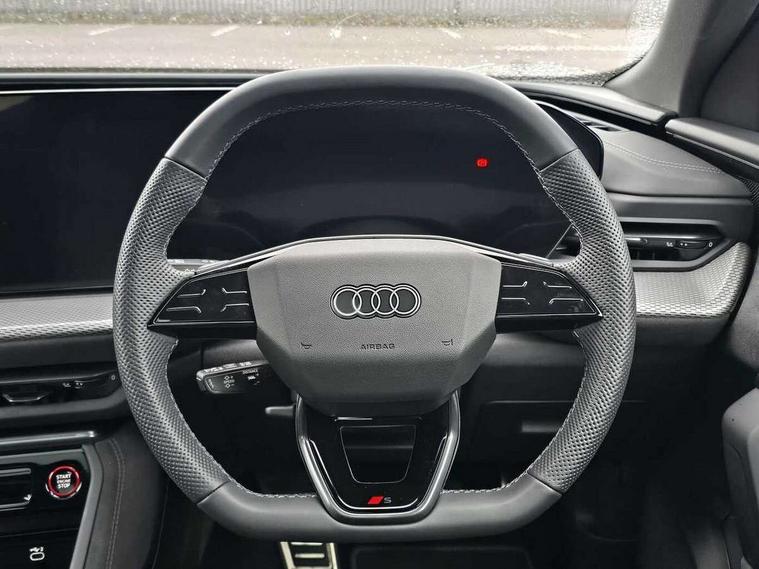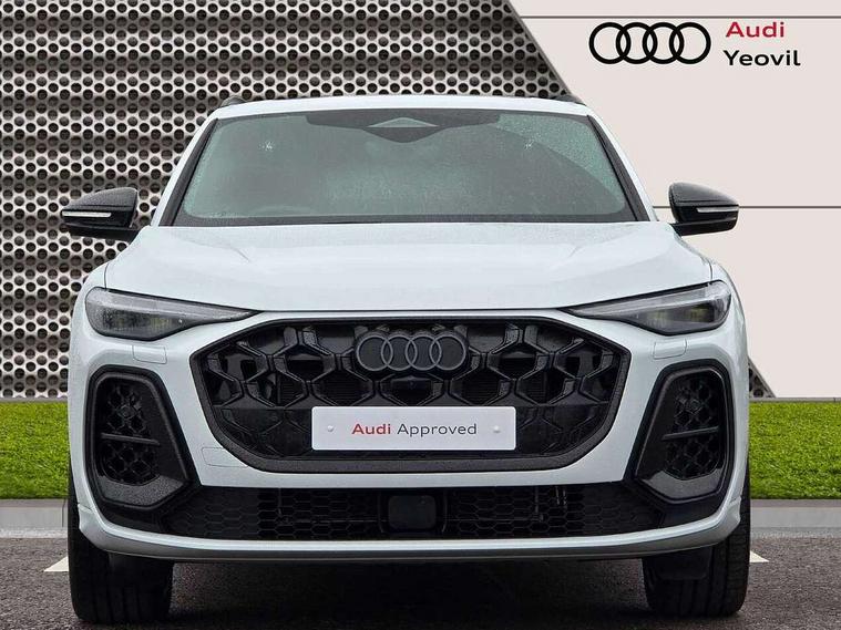 Adaptive cruise control, Advanced driver attention alert, Audi application store, Audi connect emergency call and service, Audi drive select, Audi smartphone interface, Audi virtual cockpit plus with 11.9" OLED colour display, Camera based traffic sign recognition, Fatigue monitor, Front cross traffic intersection assist, Lane change assistant with exit warning system, rear cross traffic alert and rear turn assist, Lane departure warning with emergency assist, MMI 10.9" front passenger touch display, MMI navigation plus with high resolution 14.5" OLED touchscreen colour display, Park assist plus, Parking system plus with 360 display, PAS, Reversing camera, Swerve assist and turn assist, Top view camera, Traffic sign based speed limiter, 2 USB-C ports in both the front and rear, Audi sound system impressive sound with 8 loudspeakers including centre speaker and subwoofer, 6-channel amplifier with a total output of 180 watts, DAB Digital radio, Smartphone compartment with wireless charging, Active digital light signatures - Six additional combinations of active daytime running light signature, Auto dimming rear view mirror, Black roof rails, Coming/leaving home lighting function, Electrically adjustable heated and folding + automatically dimming exterior mirrors, Exhaust tailpipes in dark chrome, Front and rear electric windows, Front door sill trims with aluminium inlays, illuminated with 'S' logo, Full body paint finish, Grill frame, inlay and front air inlets in matt anthracite chrome, Headlight cleaning system, Heated rear window, High beam assist, High gloss window surrounds, LED rear lights pro incl. dynamic rear indicators and illuminated light strip with animated coming and leaving home function, Logo projection light in exterior mirrors, Matrix LED headlights, Memory function for door mirrors, Privacy glass, Projection third brake light for rear window in LED, Radiator grille in phantom black, Rear and side windows with heat insulating glass, Rear honeycombe grille in matt black with inlay in matt anthracite chrome, Rear side wing doors, Rear wash/wipe, S Line badge on the front wings, Towbar preparation, Windscreen with acoustic glazing, 3 rear head restraints, 3 seat bench in 2nd row, 3 spoke leather steering wheel with multi-function buttons with touch control, flattened on top and bottom, with S badging and contrast stitching, 4 way electric lumbar support for driver and front passenger, 40:20:40 split folding rear seat bench with centre armrest and cup holders, Comfort centre armrest front, Deluxe 3 zone electronic climate control, Dinamica microfiber/leather upholstery with diamond stitching, Electrically adjustable front seats with memory function for driver's side, Front and rear floor mats, Front sport seats with integrated head restraints, Headlining in black cloth, Heated front seats, i-Size child seat mounting on the front passenger side and outer rear seats, i-Size and top tether on the outer rear seats, Interior trim in aluminium look, Luggage compartment lid, electrically opening and closing, Manual steering column adjustment, S embossed logo on front sport seats, Single front passenger seat, Softwrap in Dinamica, Stainless steel pedals and footrest, Steering wheel grips in perforated leather and shift paddles, Ambient lighting package plus - Q5, Black styling package plus - Q5, Storage and luggage compartment pack - Q5, 3x3 point rear seatbelts, ABS, Acoustic vehicle alerting system, Convenience key with safelock, Driver and front passenger airbag with passenger airbag deactivation, Electric child safety locks, First aid kit with warning triangle and high visibility vests, Front emergency brake assist, Front side airbags with head airbag system and front interaction airbag, Hill hold assist, Occupant detection in rear seat area, Proactive passenger protection system for front, sides and rear, Red brake calipers, Side airbags in front and rear with head airbag system and front interaction airbag, Tyre pressure loss indicator, Anti theft alarm, Anti-theft wheel bolts, Remote control key with SAFELOCK and keyless go, Accent surfaces and control buttons in gloss black, Black dashboard with contrast stitching, Steel grey seat stitching, Upper and lower interior elements in dinamica microfiber, Tyre repair kit,