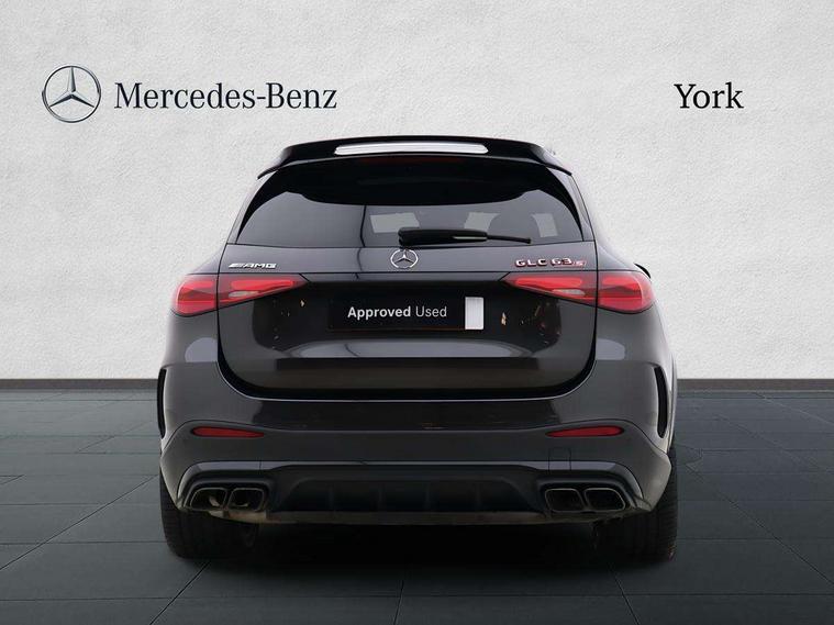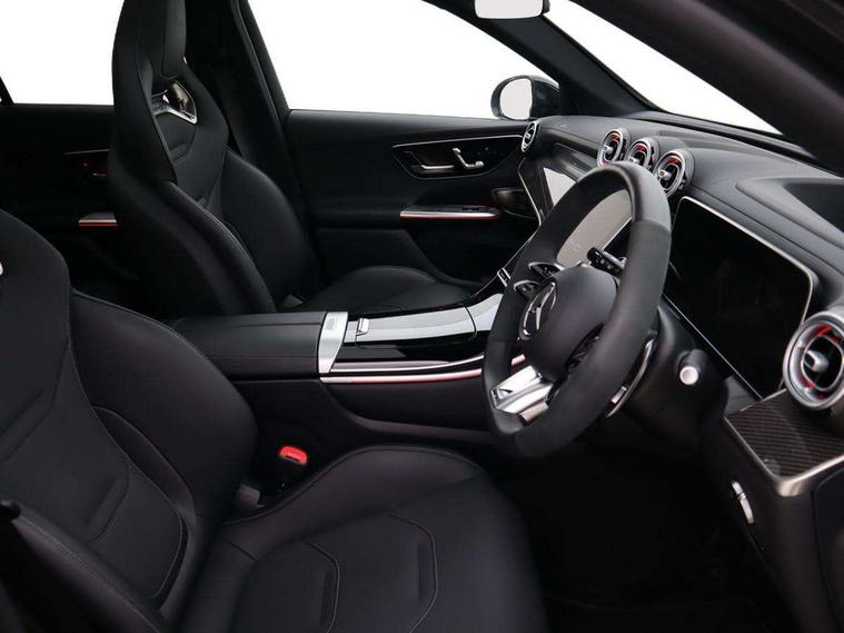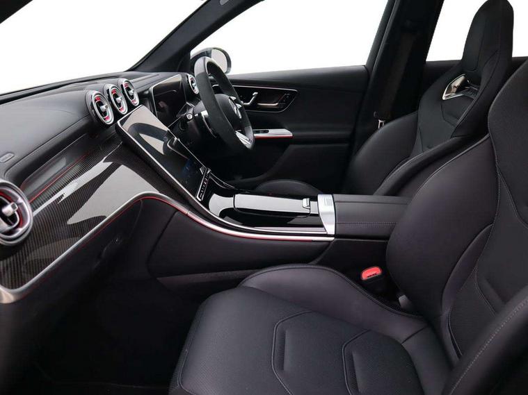 11.9" high resolution multimedia colour display, 12.3" Digital individually configurable instrument display, Acoustic ambient protection, Acoustic presence indicator, Active lane keeping assist, AMG DYNAMIC SELECT with a choice of eight driving modes(Electric, Comfort, Battery Hold, Sport, Sport+, Race, Slippery and Individual), AMG track pace, Attention assist, Bluetooth interface for hands free telephone, Collision prevention assist plus, Dashcam - front camera for video recording, eCall emergency call system, Fingerprint scanner, Fluorescent jacket for driver, Head up Display, Instrument display in miles with English lettering, MBUX navigation premium, MBUX voice control activated by keywords "Hey Mercedes", Mercedes connect me with remote online services, Multi function trip computer, Outside temperature display, Pre-installation for digital key transfer, Pre-safe function, Rear axle steering, Remote and charging services plus, Remote boot release, Road sign recognition system, Service indicator (ASSYST), Smartphone integration, Sports direct steer system with speed sensitive steering, Status display for rear seat belts in instrument cluster, Tailgate, Traffic sign assist, Wireless charging system for mobile devices in the front, 4MATIC permanent four wheel drive, 5m charging cable for household socket (mode 2), 5m charging cable for wall box/public charging stations(mode 3), 65 litre fuel tank, 9G TRONIC plus automatic transmission, Alternating current charging system (AC charging), AMG Active Ride Control roll stabilisation, AMG Ride Control suspension, Petrol Particulate Filter (PPF), Burmester 3D surround sound system, DAB digital radio tuner, MBUX extended functions, Sound personalisation, Adaptive brake lights, Adaptive high beam assist plus, Aluminium look running boards with rubber studs, AMG exhaust system with sporty engine sound, AMG fuel cap, AMG radiator grille with vertical struts in high gloss chrome and AMG logo, AMG Real Performance Sound, AMG spoiler lip in high gloss black, Auto dimming rear view mirror, Auto headlights, Digital light LED headlights, Electric panoramic glass sunroof, Electric windows with one touch opening/closing and obstruction sensors, Electrically adjustable and heated door mirrors, EQ Hybrid badging on front wings, Headlight washers, Heat and noise insulating acoustic glass, Heat insulating dark tinted glass, Heated rear window, High level LED brake light, Integrated LED daytime running lights, LED indicator lights, LED rear fog lights, LED tail lamp, Mercedes AMG exterior, Rain sensor windscreen wipers, Range adjustable headlights, Rear side wing doors, Rear wiper, Transparent Bonnet, Variable front intermittent wipers, Welcome and follow-me home light functionality, Wheel arch liners in the vehicle colour, 3 seat bench in 2nd row, 40:20:40 split folding rear seats, Air balance package, Ambient lighting premium, AMG floor mats, AMG performance steering wheel in carbon fibre design / MICROCUT microfibre with AMG steering wheel buttons, Artico leather dashboard with contrast stitching, Audio and onboard settings control on multifunction steering wheel, Automatic child seat recognition sensor, Double cup holder in centre console, Electrically height/reach adjustable steering column, Front centre armrest with stowage compartment, Front head restraints, Front seats with electric backrest, height adjust with 4 way electric lumbar support, Gearshift paddles on steering wheel, Heated steering wheel, Illuminated door sill panels with AMG lettering and with exchangable cover, Illuminated glove compartment, Load compartment cover, Mercedes AMG interior, Partition net, Rear head restraints, Rear top tether child seat ISOFIX attachment, Single front passenger seat, Sports pedals with stainless steel surfaces and rubber studs, Sun visors with illuminated vanity mirrors, THERMATIC 2 zone automatic climate control, AMG Aerodynamics package - GLC AMG, AMG Driver's package - GLC AMG, AMG Exterior Night pack - GLC AMG 63 Se, AMG Exterior Night pack - GLC Coupe AMG 63 Se, Boot comfort package - GLC, Energizing plus pack - GLC Coupe, Interior lighting pack - GLC AMG, Keyless-Go comfort package - GLC, Memory pack - GLC, Mirror pack - GLC AMG, Parking package with 360 degree camera - GLC, Stowage pack - GLC AMG, USB Plus Pack - GLC, 3 rear 3 point seatbelts, Active bonnet, Anti-lock braking system (ABS), Automatic front passenger airbag deactivation, Black seat belts, Child proof door locks, Dual-stage airbags - driver and front passenger, driver knee bag and window bags for driver, front passenger and rear passengers, Electronic key chrome surround, Electronic parking brake, Electronic stability programme (ESP) with curve dynamic assist and cross wind assist, Evasive steering assist, Front and rear seatbelt reminder, Front passenger seat occupancy sensor, Front seatbelt pretensioners, Hill start assist, Pre safe plus, Red painted brake callipers, Tyre pressure monitoring system, Warning triangle and first aid kit, Anti theft alarm system with preinstallation for collision detection, Central locking with interior switch, automatic locking and crash sensor with emergency opening function, Guard 360 degree vehicle protection plus, Immobiliser, Increased anti-theft protection, AMG Carbon fibre with centre console in high gloss black, 21" AMG cross spoke forged alloy wheels painted in matt black with high sheen rim finish, TIREFIT with tyre inflation compressor,