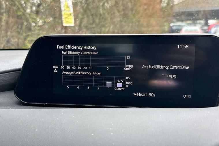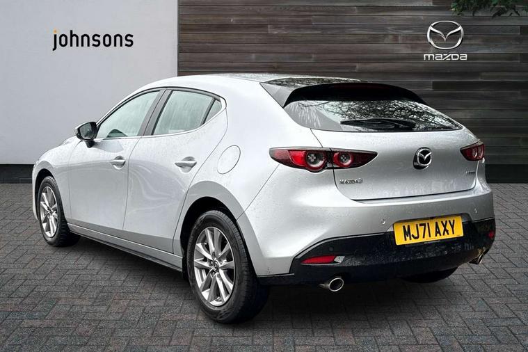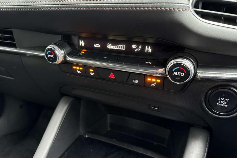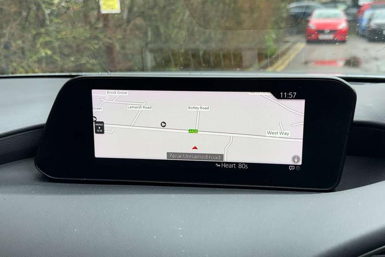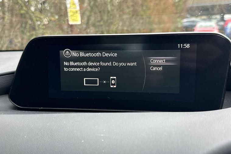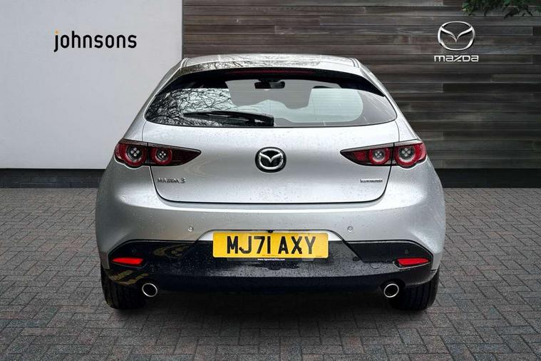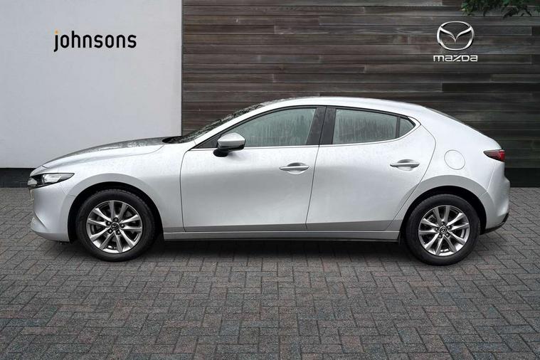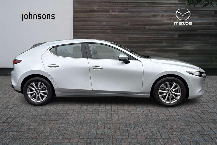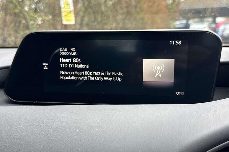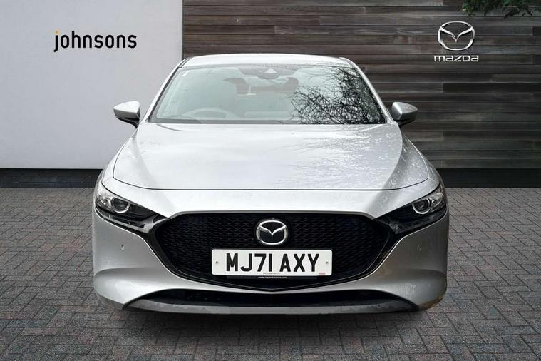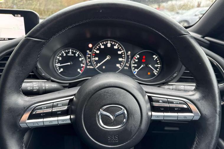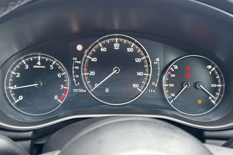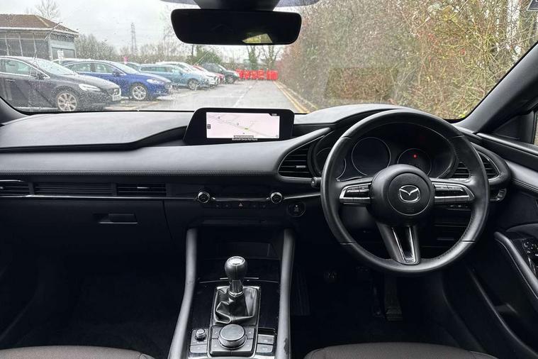 7" colour TFT display, 8.8" Colour centre touch screen display with Mazda Connect infotainment, Apple car play/Android Auto, Audio transfer from bluetooth devices, Blind spot monitoring with rear cross traffic alert, Colour active driving display inc Windscreen projected, Traffic Sign Recognition, turn-by- turn navigation and Mazda Radar Cruise Control information, Digital instrument cluster, Driver attention alert system, E-call with GPS, Emergency stop signalling system, Engine start/stop button, Front and rear parking sensor with audible and visual warning, Head up Display, Integrated bluetooth with steering wheel mounted controls, Intelligent speed assist, Lane keep assist system (LAS) with Lane departure warning system (LDWS), Mazda connected services, Mazda Navigation System with european mapping, Mazda Radar Cruise Control, Mobile App interface, Multimedia Commander, PAS, Reversing camera, Service indicator, Traffic sign recognition (TSR), Trip computer, i-stop, Mazda Multimedia System with AM / FM / DAB radio with 8 speakers, Auto dimming driver's door mirrors, Auto dimming rear view mirror, B-pillar garnish in satin black, Body coloured, electrically adjustable, heated auto power folding door mirrors with integrated indicators, Coming/leaving home lighting function, Dark metallic finish signature wing, Daytime running lights, Dual chrome tailpipes tip, Dusk sensing headlights, Electric front/rear windows with one touch/auto up/down, Front body coloured bumper with black lower bezel, Front kodo turn signal, Gloss black finish front grille, Gloss black rear roof spoiler, High beam control, LED front fog lights, LED headlamps with auto levelling, LED indicator lights, LED rear combination lights, LED third brake light, Rain sensing front wipers with adjustable sensitivity and speed, Rear colour coded bumper with gloss black lower moulding, Rear fog lights, Speed adjustable rear wash wiper with intermittent wipe, 12v electrical power outlet, 60/40 split fold down rear seats, Black cloth door panel inserts, Cloth upholstery, Dark roof headlining, ceiling and pillars, Driver, front passenger and two rear door pockets, Driver, Front passenger and two rear grab handles with coathooks, Driver/passenger sunvisors + vanity mirrors (drivers side with ticket holder), Drivers seat manual slide recline and height adjustment, Dual zone climate control air conditioning, Folding rear centre armrest with two cup holders, Front and rear courtesy lamps, Front armrest, Front centre storage with two cupholders, Front head restraints, Front passenger seatback pocket, Front passengers seat manual slide, recline and height adjustment, Gear shift indicator, Heated front seats with 3 stage setting, Illuminated glovebox, Interior colouration dashboard and doorcards in black with dark stitching, ISOFIX child seat anchorage points attached on outer rear seats, Leather wrapped gear shift knob, Leather wrapped steering wheel, LED interior light, Luggage compartment light, Power outlet in luggage compartment, Roof mounted sunglasses holder, Three height adjustable rear head restraints, Tilt/height adjustable steering wheel, USB input, 3 point ELR front seatbelts with pretensioners, 3 rear 3 point seatbelts with ELR, Anti-lock braking system (ABS), Drivers knee airbag, DSC - Dynamic Stability Control, Dual stage driver and single stage passenger airbags, EBD - Electronic brakeforce distribution, Electronic parking brake with auto disengage function and auto hold function, Front and rear curtain airbags, Front passenger airbag cut-off switch, Front side airbags, Front smart city brake support, G-Vectoring control plus, Hill launch assist, Intelligent Traction Control system, Mild Hybrid system with regenerative braking, Seatbelt reminder for driver/front passenger and rear seats, Tyre pressure monitoring system (TPMS), Auto door lock when driving, Remote central locking + deadlocks, Smart keyless entry, Thatcham accredited alarm and immobiliser, 16" Silver alloy wheels, Emergency tyre repair kit,