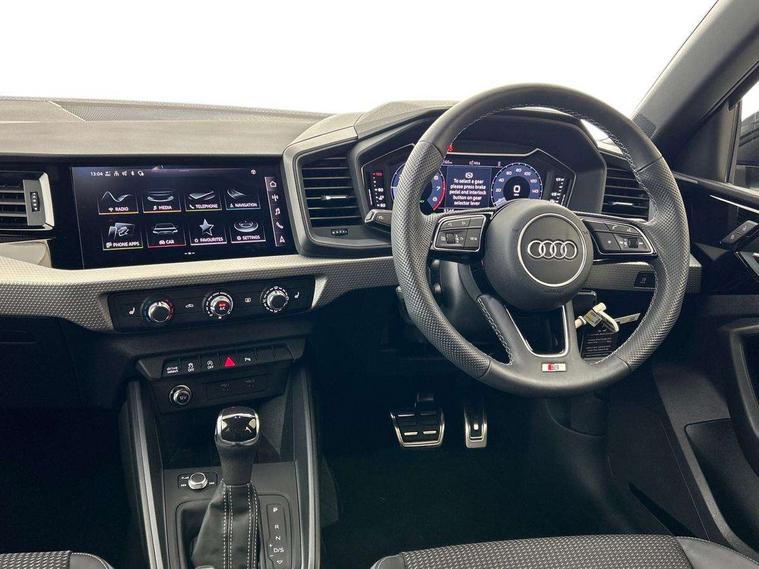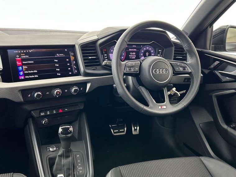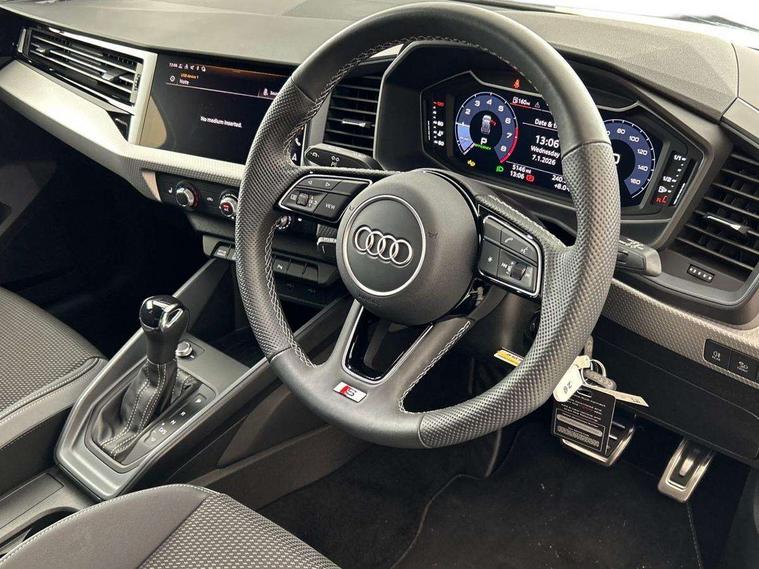10.25" Digital instrument cluster display classis style instrument dials + speed, odometer, time, outside temperature, telephone menu + fuel level warning, Advanced driver attention and drowsiness monitor, Audi connect emergency call and service, Audi drive select, Audi remote connect and control, Audi smartphone interface, Bluetooth interface, Camera based traffic sign recognition, Cruise control, Driver's information system, Electromechanical power steering, Lane departure warning system, Rear parking sensor, Service interval indicator, Speed limiter, Start stop system with recuperation, Voice control system, Washer fluid level indicator, Sports suspension, 2 x USB type C connection points, 6 loudspeakers, DAB Digital radio, MMI radio plus with 10.1" colour MMI display screen and MMI touch, Auto dimming rear view mirror, Body coloured door mirrors, Door sill trims with aluminium inlays and S line logo in front, Electric front and rear windows, Electrically adjustable, heated, folding door mirrors with integrated LED side indicator, Front side air inlets in grained matt black and C frame in anthracite black, Headlight cleaning system, Heat insulating glass windscreen and side windows, Heated rear windscreen, High level LED brake light, LED daytime running lights, LED headlights with range control LED rear lights + dynamic rear indicators, Light and rain sensors, Privacy glass, Radiator grille and rear diffuser in matt anthracite black, Radiator protective grille frame in matt aluminium silver, Rear fog lights, Rear side wing doors, Rear wiper, S line badges on front wings, Side front spoiler lips in grained matt black, 12V socket in centre console with two cup holders, 3 rear seats with headrests, 3 seat bench in 2nd row, 3 spoke leather multi-function plus steering wheel features S badging and grips in perforated leather with contrast stitching, 40:60 Split folding rear seat or fully collapsed, Black cloth headlining, Front and rear velour black floor mats with contrast stitching in fine silver, Front head restraints, Front passenger seat, Height and reach adjustable steering wheel, Interior lighting includes roof module, front and rear reading lights and right luggage compartment lighting, ISOFIX child seat mounting for front passenger and outer rear seats including top tether attachment point of outer rear seats, Leather gear knob with aluminium trim, Leather handbrake grip, Manual air conditioning, Manual height adjustable for driver and front passenger seat, Manually adjustable lumbar support in front seats, Stainless steel pedals, Ambient lighting package - A1, Luggage compartment pack - A1, S line exterior styling pack - A1 Sportback, 3x3 point rear seatbelts, Audi pre-sense front with pedestrain and cyclist recognition, Brake assist function, Driver and front passenger airbag with front side and head airbags, Electronic Stability Control including ABS, EBD, ASR and EDL, Front passenger airbag deactivation switch, Hill hold assist, Manual rear child locks, Seatbelt height adjustment for front seats, Seatbelt monitoring, Tyre pressure loss indicator, Warning triangle and first aid kit, Anti theft alarm, Anti theft wheel bolts, Immobiliser, Remote control key with safelock, Aluminium trim for control switches, air vents and digital instrument cluster, Black dashboard, Silver grey inlays polygon structure in diamond paint finish, Structured grey accent surfaces insert of air vents, interior door handle recesses and centre console in quartz paint finish,
