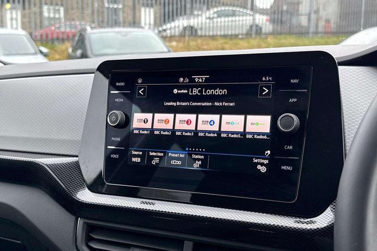 'Lights On' Reminder warning buzzer, 8" Digital cockpit, Advanced driver attention and drowsiness monitor, Bluetooth telephone and audio connection for compatible devices, Car information display, Dynamic road sign display, E-Sim card for online connectivity, eCall emergency call system, Front and rear parking sensors, Front assist, forward collision warning, autonomous emergency braking and speed limiter, Low washer fluid warning light, Multifunction computer with visual gear change recommendation for fuel consumption, Multifunction front facing camera for distance control, Operating permit alteration, Power assisted steering, Predictive adaptive cruise control, Preparation for navigation system with media and internet package, Preparation for We connect and We connect plus, Rear view camera, Semi-automated driving assistance, travel assist including lane keeping system Lane Assist and emergency assisst, Side assist, Speedo, rev counter, electronic odometer, trip, service interval display, exterior temperature and fuel gauge, Warning sound and light for doors and tailgate open, Warning sound and light for front seatbelts unfastened, Wireless Car net app connect with Apple CarPlay, combined functionality of Apple CarPlay/Android Auto and MirrorLink, Wireless charging, Misfuel prevention device, Start-stop system with battery regeneration (recuperation - energy recovery during braking), 2 USB C ports in front, 2 USB charging sockets on the centre console in the rear charging capacity upto 45W, DAB Digital radio receiver, Diversity antenna for FM reception, Multi device interface (MDI) with USB connection, Music playback - MP3, WMA and AAC files, Radio, Automatic dimming interior rear view mirror, Automatic hazard lights activation under emergency braking, Automatic headlight control with LED separate daytime running light and coming home and leaving home feature, Body colour door handles, Body colour door mirrors, Body coloured bumpers, Dynamic headlight range control with self adjusting whilst driving, Electric folding door mirror, adjustable, heated with front passenger exterior mirror lowering function, Exterior mirrors convex on the left and aspherical on the right, Front and rear electric windows, Galvanised body, Heat insulating and laminated safety glass windshield, Heat insulating darkened glass in side and rear windows, High Beam Assist, automatic sensing for switching between dipped and main beam, LED rear combination lights, LED third brake light, Lower door sills and door pillars in black, Rain sensor, Rear fog light on one side, reversing light on both sides, Rear side wing doors, Rear window aerial, Rear window wiper with intermittent control, Reflectors in all doors, Scuff plates, Tailgate with integrated roof spoiler, 12V Accessory socket in centre console, 3 rear head restraints, 3 seat bench in 2nd row, 60/40 split folding rear seat backrest, Ambient lighting and logo projection, Ceramique roof lining, Cloth upholstery, Door and side trim panel, Driver and front passenger sunvisor with vanity mirror, Dust and pollen filter, Front and rear reading lights X 2, Front centre armrest with storage compartment, Front seat back storage pockets, Glove compartment door with light, Heating and fresh air system with 4 stage blower, Height/reach adjust steering wheel, Instrument lighting white adjustable panel illumination, Interior light with switch off delay and dimmer, Isofix anchors for child seats on outer rear seats and front passenger seats, Leather gearshift handle, Leather wrapped multifunction steering wheel, Luggage compartment floor, Luggage compartment lighting, Manual front seats with height adjustment, Padded dashboard, Removable luggage compartment cover, Single front passenger seat, Storage compartment in drivers and front passengers door, Unsplit sliding rear seat bench, Without drawers under front seats, 3 point outer rear seat belts with ECE label, 3 Point seatbelt for centre rear seat, Anti-lock Braking System (ABS) with Hydraulic Brake Assist (HBA), Automatic post collision braking system, Disc brakes in front, Driver and front passenger safety-optimised head restraints, Drivers and Front Passengers airbags with front passengers airbag deactivation switch, Drum brakes in rear, ESC with EDL and ASR (traction control), Extended and predictive pedestrian/cyclist protection, Front and rear passenger curtain airbag system including front side airbags, Height adjustable front 3 point seatbelts + pretensioners, Hill start assist, Pre crash preventive occupant protection, Proactive passenger protection system in combination with front assist, Rear door child safety locks, Rigid safety cell with front and rear crumple zones, Single tone horn, Tyre pressure loss indicator, Volkswagen roadside assistance, Alarm with interior protection, Anti theft alarm system, Electronic engine immobiliser, Remote keyless entry using key fob including Start/Stop button on centre console with SAFELOCK, Remote tailgate unlocking using key fob, Low rolling resistance tyres,