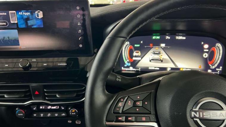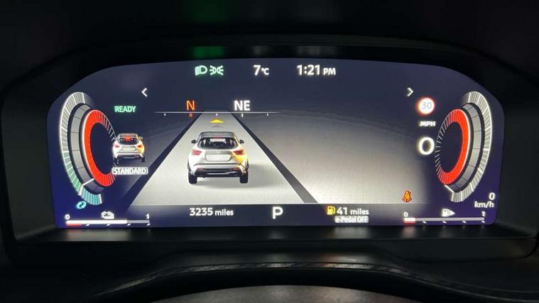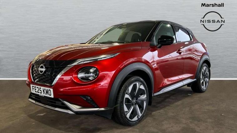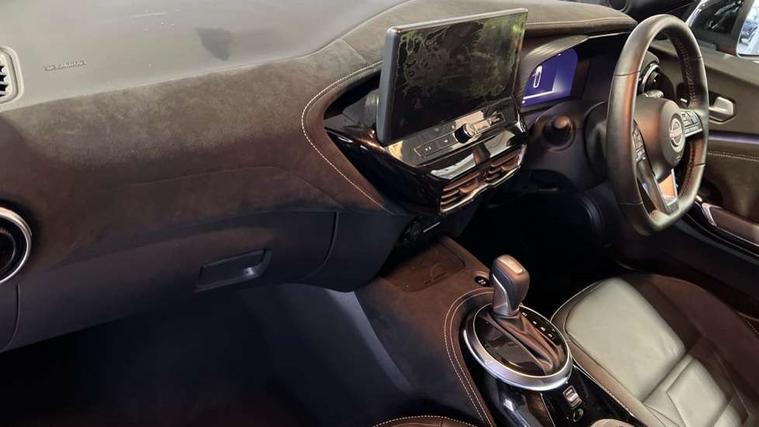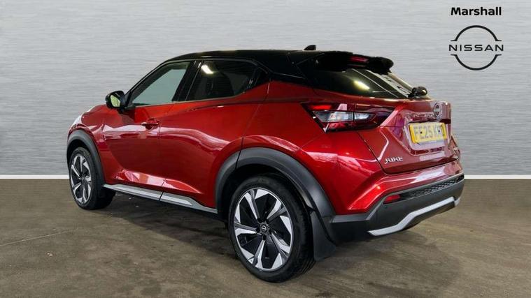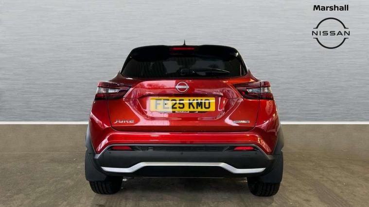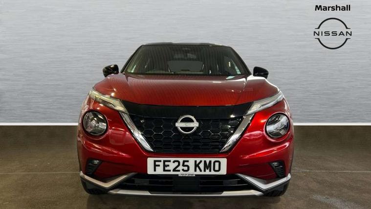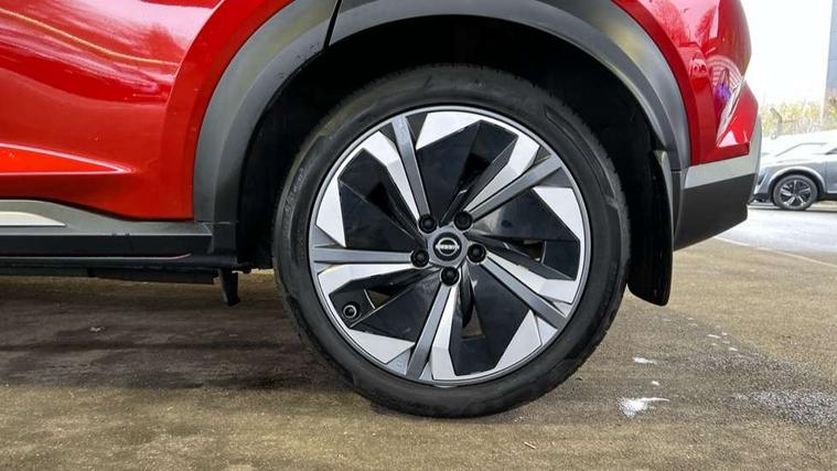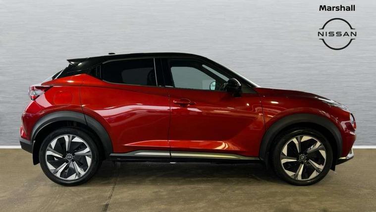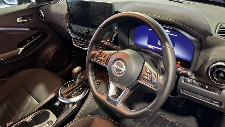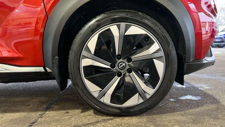 12.3" full colour TFT screen combimeter, Drive modes select (Eco, normal and sport), e-Pedal step, Emergency and breakdown call, EV mode switch, Front parking sensor, Intelligent driver alert system, Intelligent lane intervention, Lane departure warning system, Nissan connect 12.3" touch screen entertainment system, Nissan connect nav with TomTom traffic, Nissan connect services, Outside temperature sensor, Power Steering, Rear parking sensor, Stop/start button, Traffic sign recognition, Trip computer, Voice recognition, WiFi connectivity, Wireless Apple CarPlay and Google Android auto, Wireless Smartphone charger, 10 Bose speakers 8 speakers and 2 headrest speakers for driver/passenger seats, 2 X Rear console USB port, Bluetooth system, USB, Aux-in and 12V socket, Bose personal plus audio system, DAB Digital radio, Auto dimming frameless rear view mirror, Automatic hazard signal with emergency stop signal, Body colour door handles, Electrically adjustable door mirrors with integrated indicators, Follow me home headlights, Front and rear electric window with one touch driver window, High beam assist, LED 3rd brake light, LED daytime running lights, LED front fog lights, LED headlamps, LED rear fog lamp, LED rear lamps, One touch passenger window, Rear privacy glass, Rear side wing doors, Rear wiper, Roof spoiler, Shark fin roof antenna in solid Black, Solid black door mirrors, Solid black front bumper/rear bumper and side skirts inserts, Three blink turn signal, 3 height adjustable rear headrests, 3 seat bench in 2nd row, 60/40 split folding rear seat, Card holder on driver sunvisor, Door ambient lighting, Driver seat back pocket, Driver side rear coat hanger, Driver/passenger sunvisors and vanity mirrors, Front and rear cabin lights, Front armrest, Front door pockets with bottle holders, Front head restraints, Front/rear passenger grab handles, Gear console ambient circle lighting, Height adjustable driver's seat, Internal chrome door handles, Luggage board, Luggage space lighting, Monoform sporty seats, Multifunction steering wheel, Passenger seat back pocket, Rear door bottle holders, Single front passenger seat, Smooth synthetic leather steering wheel, Synthetic leather kneepad, Synthetic leather shift knob, Telescopic steering wheel adjustment, Two cupholders in front centre console, Two rear isofix child seat anchorage points with top tether, Welcome light and console tray ambient lighting, Comfort pack - Juke, Heat pack with height adjustable passenger seats - Juke, Interior personalisation pack - Juke, ProPilot pack - Juke Auto, Satin grey exterior personalisation pack - Juke, ABS with EBD and brake assist, Active ride control, Active Trace Control, Driver and passenger airbags, Driver and passenger side airbags, Electric handbrake with auto hold function, Electronic Stability Programme (ESP), Front and rear curtain airbags, Height adjustable seatbelts, Hill start assist, Intelligent emergency braking with pedestrian and cyclist recognition, Rear door child safety locks, Seatbelt reminder for driver/front passenger and rear seats, Three 3 point rear seatbelts, Traction control, Tyre pressure monitoring system, VDC Dynamic Vehicle Control, Alarm, Immobiliser, Intelligent key and start push button with walk away lock and approach unlock functions, Remote central locking, 19" Aero alloy wheels, Tyre puncture repair kit,
