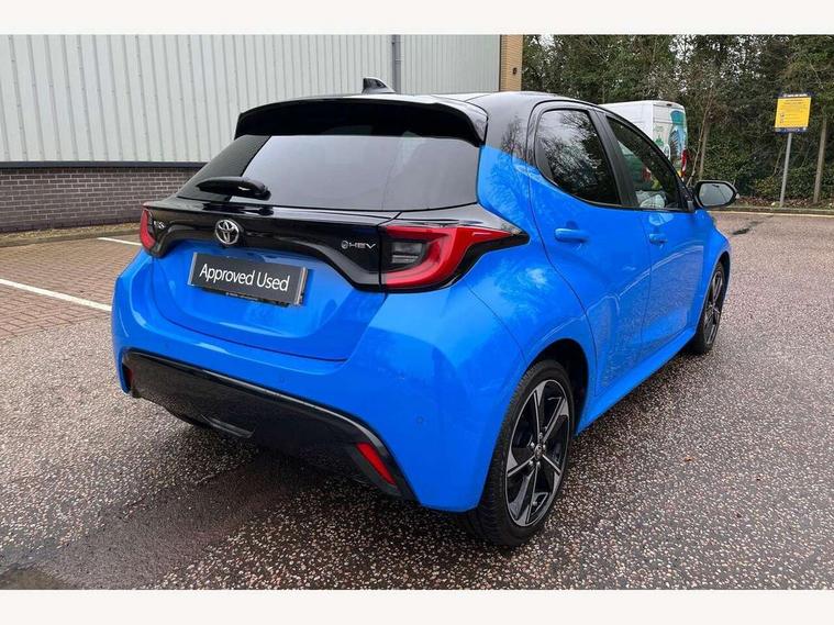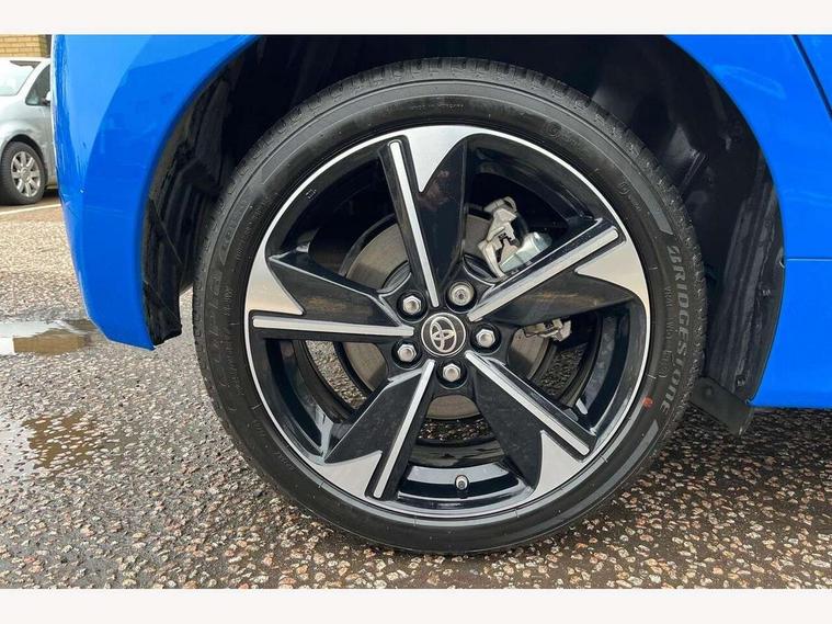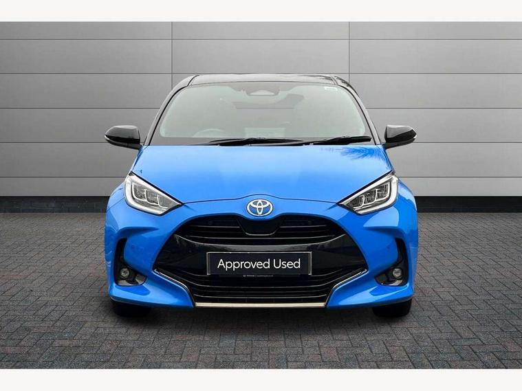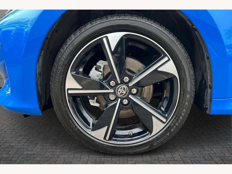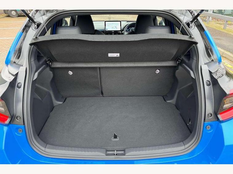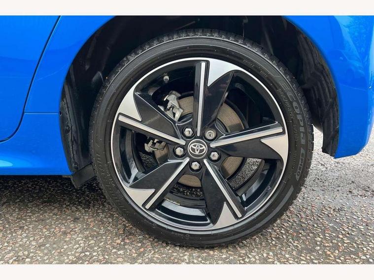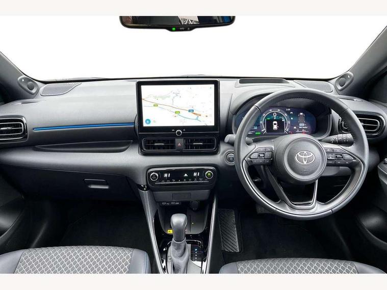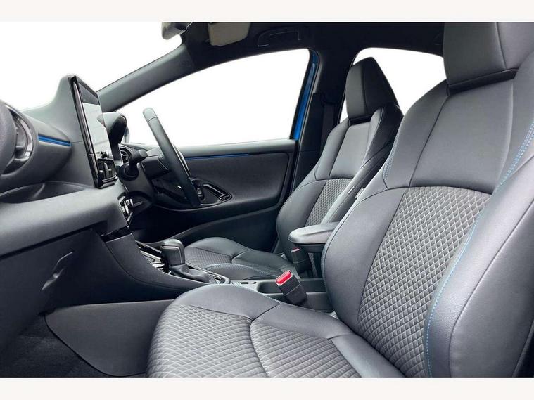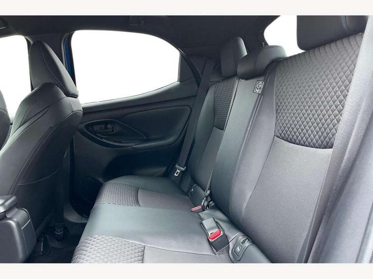 12.3" Digital Combimeter, Adaptive cruise control, Adjustable speed limit with speed warning, Bluetooth connectivity, Colour binocular inspired displays with digital speedometer, E-call, Electric power steering, Head up Display, Hybrid energy display, Multi information display switches on steering wheel, Reversing camera, Tailgate, Voice recognition, Wireless charger, Vehicle Stability Control (VSC), 10.5" Toyota smart connect multimedia with wireless smartphone integration incl apple car play and cloud Navigation, 6 speakers, 8 Speakers, JBL speaker system, Toyota Touch 3 system with DAB radio, USB connection, Acoustic windscreen glass, Auto windscreen wipers, Automatic headlights, Body coloured door mirrors, Dark chrome lower meshed front grille, Electric adjustable heated door mirrors, Follow me home headlights, Front auto power windows with anti jam protection, Full LED rear lights, LED daytime running lights, LED front fog lights, LED front light guide, LED Headlights, LED High mounted stop lamp, LED Indicators, LED rear light guide, Manual headlight levelling, Painted chequered front grille with hot stamp in mesh design, Rain sensor, Rear auto power windows with anti jam protection, Rear privacy glass, Rear side wing doors, Rear spoiler, Rear wiper, Shark fin antenna, Turning signal integrated indicators in door mirrors, Variable front intermittent wipers, 3 adjustable rear headrests, 3 seat bench in 2nd row, 3 spoke leather steering wheel, 60/40 split folding rear seat, Active headrests, Adjustable boot height, Black roof lining, Coat hooks in rear grab handles, Cup holders (2 front & door), Data Communication Module (DCM) connected services, Dual zone automatic air conditioning, Front armrest, Front sport seats, Glovebox, Height adjustable driver's seat, Height adjustable passenger seat, Isofix seat fixing, Leather gearshift, Map pockets on the backs of the front seats, Nanoe-X air purifier, Partial leather upholstery, Pollen filter, Shopping bag hooks, Single front passenger seat, Tilt/telescopic steering column, Safety pack - Yaris, 3 point seatbelts on all rear seats, ABS+EBD+Brake assist, Electronic parking brake, Emergency brake light system (EBS), Front passenger airbag on/off switch, Front seatbelt reminder, Hill start assist control (HAC), Rear child proof door locks, Rear seat belt reminder, Supplemental Restraint System (SRS) 8 airbags: Driver & passenger's airbags, dual side curtain airbags, side impact airbags, front centre airbag, Toyota Safety Sense 3 with over the air updates, Tyre pressure warning system, 2x Master key, Alarm/immobiliser, Keyless smart entry with push button start, Remote AC via MyT, Remote locking via MyT, Remote powered central double locking doors, Smart digital key, Piano black interior trim, Soft touch instrument panel, 17" Black Machined-face, 5 double spoke alloys wheels, Space saver spare wheel,