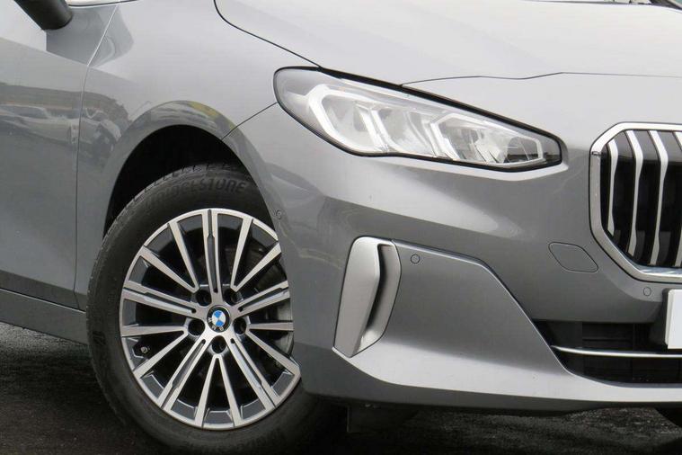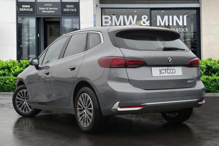 Active Guard, Attentiveness assist, Automatic powered tailgate, Automatic start/stop function, BMW Online services, BMW Operating system 9 with BMW Maps, real-time traffic information, in-car experiences, remote services and smartphone integration, BMW Teleservices, Brake pad wear indicator in front and rear, Condition based service, ConnectedDrive Services, Drive off assistant, Flat air vents on instrument panel in high gloss black, adjustable slats with elements in pearl chrome, iDrive controller, Instrument cluster with speedometer with miles per hour read out, tachometer and fuel gauge, Language version English, On board computer - average speed+fuel consumption, service interval, clock/date, odometer/trip meter, outside temperature display and ice warning, Parking assistant with active park distance control, reversing assistant, lateral parking aid and rear view camera, Servotronic variable electric power steering (EPS), Widescreen display, 54 litre fuel tank, Drive performance control with ECO PRO comfort + sport mode, Gear selector switch with toggle operation, Performance Control, Petrol Particulate Filter, Standard suspension, Steptronic transmission with double clutch, 2x USB Type C ports in front centre console for charging and data transfer, 2x USB Type C ports in rear centre console for charging, DAB Digital radio, Personal eSim, Welcome sound upon opening of the front driver or passenger door, Air inlet middle part on front apron in lines specific design with trim strip in satinised aluminium, Aluminium satinated roof rails, Automatic headlights, BMW emblem, engine compartment lid and tailgate, BMW Individual aluminium satinated exterior line, BMW radiator grille with grille struts, end face black high-gloss, radiator grille frame chrome high-gloss, Body colour roof mouldings, Body colour sill covers, Body coloured door mirror caps, Contoured rear roof spoiler in vehicle colour with side aeroblades in black high-gloss, Driver side exterior mirror lighting with BMW logo projection, Dynamic brake lights, Electric adjustable heated door mirrors, Electric windows - front and rear, with open/close fingertip control, anti-trap facility and comfort closing, Folding door handles integrated flush with surface, Front and rear windscreen wipers with heated front washer nozzles, Front bumper cover with air inlet trims for air curtains in matt black, Front bumper design elements in satinised aluminium, Front door exit lights, Front entry sills with aluminium inserts + BMW inscription, Front oramental grille with radiator grille bars in satinised aluminium, Heated rear window, Hidden exhaust pipe, Home light, LED Daytime running lights and parking lights with turn indicators, LED number plate light, LED third brake light in rear spoiler, Manual headlight range control, Model inscription on right tailgate, Rain sensor, Rear bumper cover with two L-shaped trims in Pearl chrome, Rear bumper trim strip in satinised aluminium, Rear side wing doors, Shark fin antenna, Trailer stabilisation logic, Visible VIN plate, Welcome lighting, Window washer nozzle for rear view camera, 12V socket in right side trim panel, 2 bag hooks in luggage compartment, 2 front reading lights, 2 open cup holders in front centre console, 2 x USB Type C ports for charging in front centre console + 2 x USB Type C ports for charging in rear centre console, 2x 12V power socket in luggage compartment and front centre console, 3 seat bench in 2nd row, Ambient lighting front and rear, Automatic two zone climate control air conditioning, Bottle trays in all doors, Child seat ISOFIX attachment for two outer rear seats and front passenger seat with anchorage points, Embellishers on steering wheel spokes in pearl chrome, Footrest and pedals in black plastic, Four grab handles integrated in roof lining, Front and rear door pockets, Front and rear footwell lighting, Front and rear side armrest integrated into door trim, Front and rear velour floor mats in anthracite, Front centre console storage compartment, Front head restraints, Glovebox with light, Heated front seats, Height adjustable 3 rear head restraints, Illuminated wireless charging tray, Interior door handle recess light on all doors, Luggage compartment lighting, Manual adjustment of seat height, fore/aft position, seat depth, backrest tilt and head restraint height, Map pockets, Mechanical rear seats with fore/aft adjustment, Middle centre console storage compartment, Multi-function controls for steering wheel, One piece parcel shelf opens together with tailgate and removable, Rear cloth hooks, Single front passenger seat, Steering wheel column manual adjustment, Storage compartment lighting in centre console and storage tray in centre stack, Storage compartment net in left side trim panel, Storage compartment with folding cover under centre console armrest cushion, Sunvisors with illuminated vanity mirrors, Three spoke sport leather steering wheel, 3 point seatbelts on all seats, front pyrotechnic belt tensioners, stopper and belt force limiters, rear coded belt buckles, Airbag - Front driver and passenger, front and rear head, front side, curtain head protection, manual deactivation of front passenger airbag possible, Anti lock braking system (ABS) with brake assist, Automatic hold function, BMW emergency call, Brake drying, Braking readiness, Child proof locking system in rear door, Cornering brake control, Crash Sensor - activates hazard/interior lighting + unlocks doors, DSC - Dynamic Stability Control, Dynamic brake control, Dynamic Traction Control - DTC, Electromechanical parking brake, Energy recovery system, Front disc brakes, Integrated braking system, PC iBrake PostCrash approach control warning with light braking function, Rear disc brakes, Tyre pressure monitoring system, Warning triangle and first aid kit, Anti theft alarm system, Closing system with central locking, Drive away door locking, Engine immobiliser, Locking wheel bolts, Front centre console t