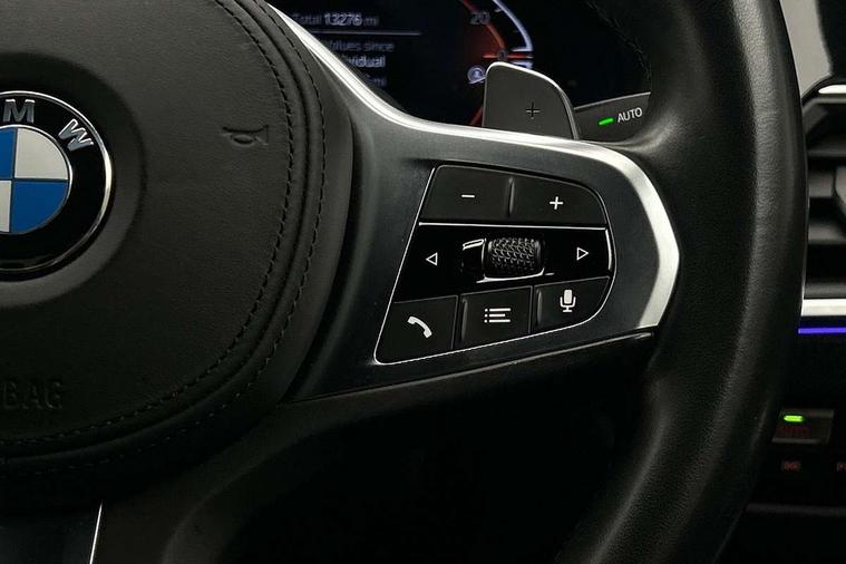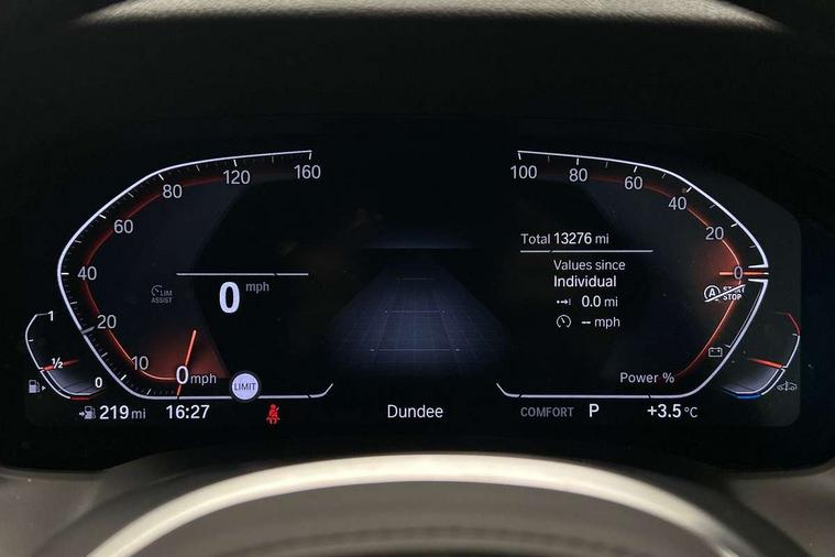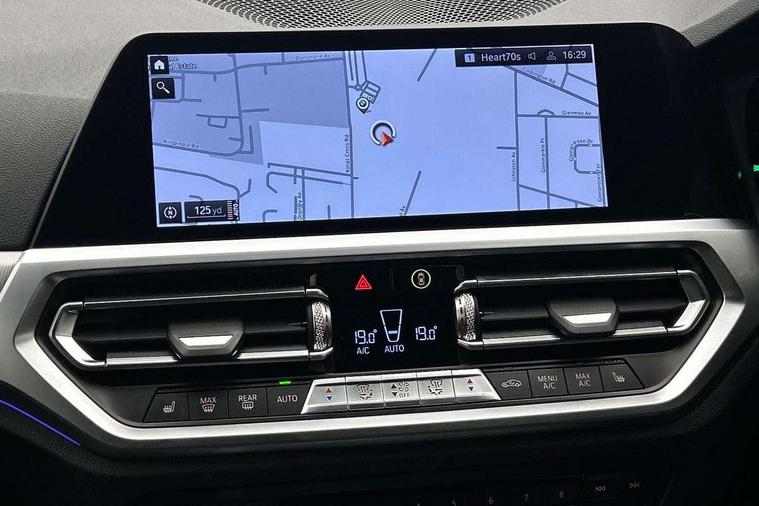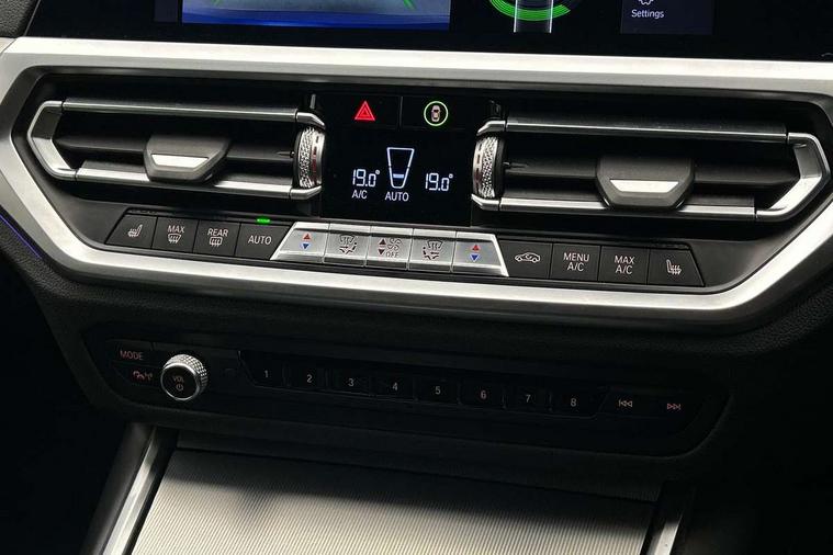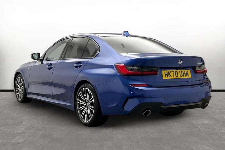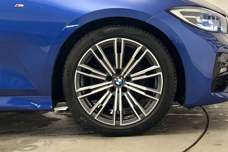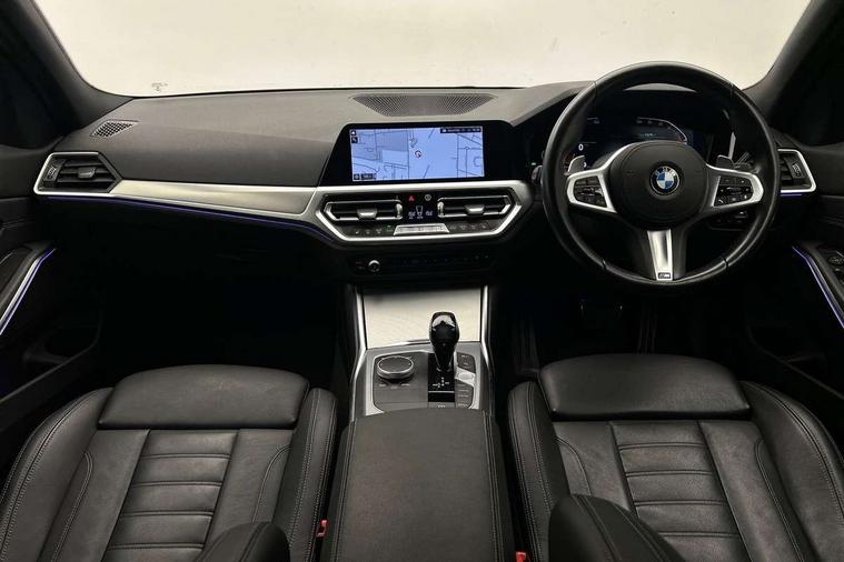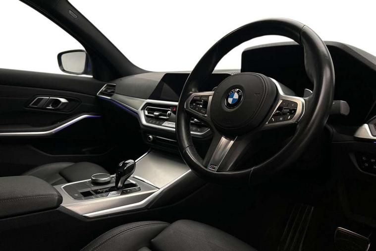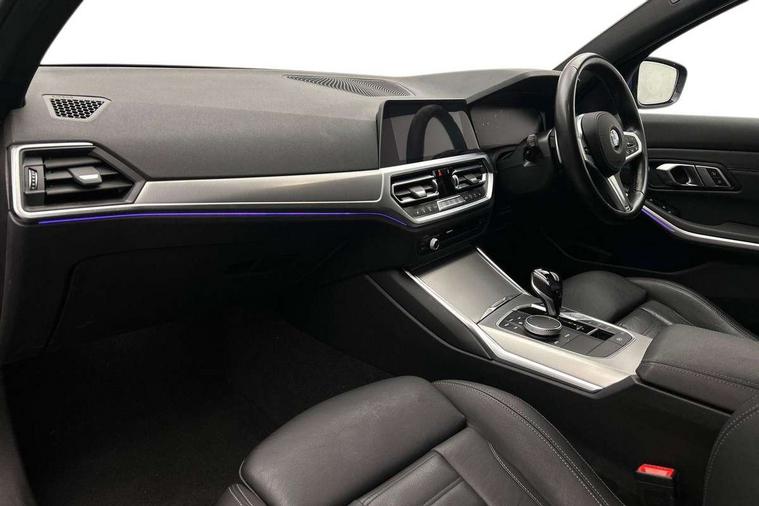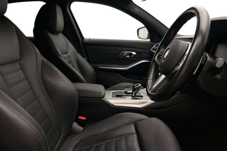 Active guard plus, Attentiveness assist, Auto start-stop, BMW iDrive controller on centre console, BMW Live Cockpit Professional Nav with 12.3" instrument display + 10.25" display, Intelligent Voice Assist, BMW OS 7, HDD, 2USB, 4G LTE connect, BMW service history, BMW Teleservices, Brake pad wear indicator in front and rear, Check Control warning system for monitoring of lights and door/luggage compartment open warning, Condition based service, Electric power steering with Servotronic steering optimised at all speed ranges, Instrument cluster with speedometer with mph readout, tachometer, fuel gauge and oil temperature gauge, Integrated owners handbook, Oil sensor for level and grade, warning by check control system, On board computer - average speed+fuel consumption, service interval, clock/date, odometer/trip meter, outside temperature display and ice warning, Optimum shift indicator, Personal Profile - automatic lock when driving away selectable, Variable sport steering, Balanced 50/50 weight distribution, Battery cut-out switch, Drive performance control - ECO PRO, comfort and sport modes, Larger capacity fuel tank, M sport suspension, Petrol Particulate Filter, Sport automatic transmission with steering-wheel mounted gearshift paddles and launch control, Stroke dependent dampers, DAB tuner, Electronic service booklet, Acoustic glazing, Automatic headlight beam throw control with load dependent regulating reaction, dynamic compensation of braking dive and acceleration squat, Black roof mouldings, Body colour door handles, Body colour fuel filler flap, Body colour mirror caps, Dynamic brake lights, Electric windows - front and rear, with open/close fingertip control, anti-trap facility and comfort closing, Exhaust tailpipe - split left and right, Exterior mirrors - electrically folding with anti-dazzle, Fading support, Front and rear bumper system with replaceable deformation elements, Front black door sill finishers with BMW designation, Green tinted heat protection glazing, High gloss shadow line exterior trim, Interior rear view electrochromatic mirror with automatic anti dazzle function, LED daytime running lights, LED front fog lights, Lightweight engineering, M designation on front side panels, left and right, Matt black exterior B pillar, Model designation on right side of tailgate, Rain sensor with automatic headlight activation, Shark fin antenna, Two part LED tailights in L-shape with components in smoked glass, brake light, LED turn indicator and rear fog light, Visible VIN plate, Welcome lights in interior and door handle area, Windscreen wipers with integrated washing jets, 12V power socket in front storage compartment, 2 front cupholder in centre console with clamping elements and matt black inlay, 3 rear seats with non folding headrests with 3 point seat belts, 3 zone automatic air conditioning, 4 pieces lashing eyelets in luggage compartment, 40:20:40 split folding rear seat with loading system, Ambient lighting with welcome carpet light, Anthracite headlining, Armrest integrated in front and rear door trim + front centre console armrest, Centred top Luggage compartment lights, Four grab handles integrated in roof lining, Front and rear door exit lighting (left / right), Front and rear door pockets, Front and rear reading lights, Front and rear velour floor mats, Front head restraints, Front sport seats, Heated driver and front passenger seats, Height adjustable mechanically and infinitely variable steering column, Illuminated armrest storage compartment, Illuminated glove compartment with separate small compartment, Interior lighting - front centre over interior mirror with soft light, rear centre and front and rear footwell lighting, M Sport multifunction leather steering wheel, Make-up mirror lights, Rear centre armrest with 2 cupholders, Rear centre console with storage compartment and ventilation grille, Sunvisors with vanity mirrors and ticket pocket, Toolkit located in luggage compartment, Connected pack professional - 3 Series Saloon/Touring, M Aerodynamics pack - 3 Series Saloon/Touring, 2 tone horn, BMW emergency call, Brake energy regeneration, Braking pre-tensioning, Child proof locking system in rear door, Child seat ISOFIX attachment rear outer seats, Coasting in idle in ECO PRO mode, Crash sensor activating of airbags, Unlocking doors, hazard warning lights, fuel cut off, interior lighting+activation of safety battery terminal clamp, Driver and front passenger side airbags, integrated in the door side seat backrest bolsters for all seat variants, Driver/Front Passenger airbags, Dry braking, Dynamic brake control, Dynamic stability control + (DSC+) - Anti-lock Braking System (ABS) with brake assist and cornering brake control + Automatic Stability Control (ASC), Dynamic Traction Control - DTC, Electric parking brake including automatic hold function and automatic release of the parking brake when driving off, Electronic differential lock control (EDLC), Front passenger manual airbag deactivation, Head airbags for all 4 outer seats, Hill start assist, Seat belt security check for driver and front passenger, Side impact protection, Three 3 point seat belts on all seats including front belt stopper, pyrotechnic belt tensioners and belt force limiters, Tyre pressure monitoring with three level warning strategy, Ventilated front and rear disc brakes, Warning triangle and first aid kit, Alarm system (Thatcham 1) with remote control and electronic engine immobiliser, Central locking switch for all doors, fuel filler cap and luggage compartment, Remote control with integrated key one button open/close vehicle and windows, sole opening of the luggage compartment lid and panic mode, Start/stop button with Comfort Go keyless engine start and auto Start/stop deactivation button, Vehicle key with M specific designation, Reduced rolling resistance tyres,
