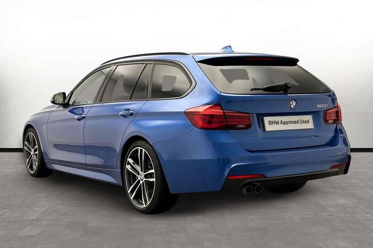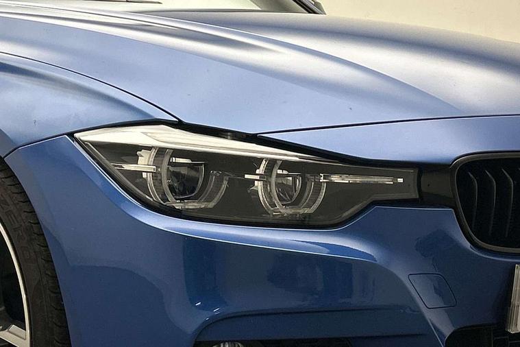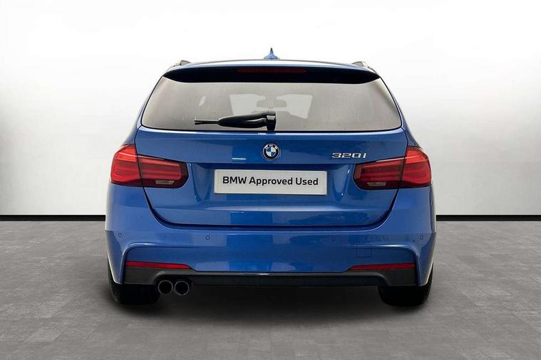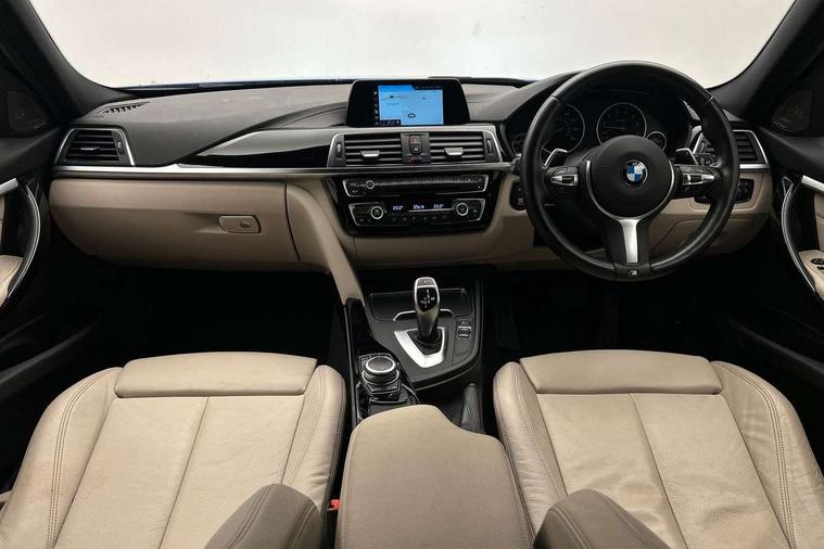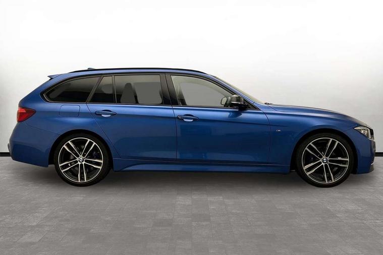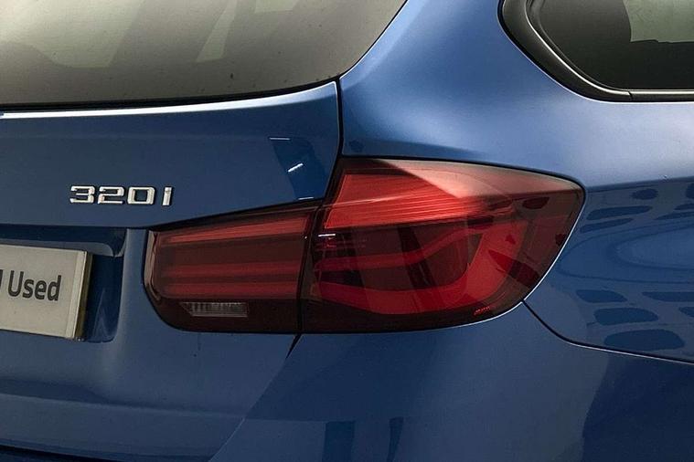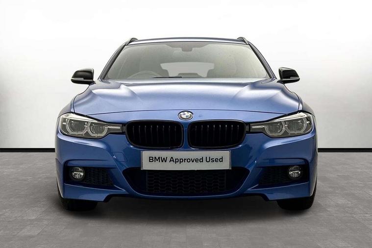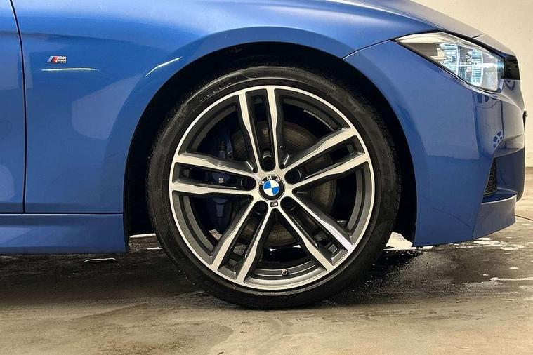 Automatic start/stop system, Automatic tailgate operation, Average speed gauge, BMW iDrive controller on centre console, BMW Online services, BMW remote services, BMW Teleservices, Brake force display, Brake pad wear indicator in front and rear, Check Control warning system for monitoring of lights and door/luggage compartment open warning, Controller and Control Display+6.5" monitor, Digital clock, Door/boot open warning light, Instrument cluster with speedometer with mph readout, tachometer, fuel gauge and oil temperature gauge, Lights on warning, M Sport instrument cluster, Odometer, Oil sensor for level and grade, On board computer, On board diagnostics, Operation warning of all exterior lights, Optimum shift indicator, Outside temperature display, Pesonal profile, Real time traffic information, Service interval indicator, Trip computer, Battery cut-out switch, Drive Performance Control, Electronic differential lock, Multi-link rear suspension, Sport automatic transmission with steering-wheel mounted gearshift paddles and launch control, BMW professional radio/CD/MP3, CD player, DAB Digital radio, Harman/Kardon loud speaker system, 2 speed adjustable intermittent wipers with wash/wipe function, Active air flap radiator grille, Auto dimming rear view mirror, Automatic headlight beam throw control, Body colour bumpers, Body colour door handles, Body colour roof mouldings, Clear indicator lenses, Dark chrome exhaust tailpipe, Dark headlamp surround, Darkened rear light clusters, Direction indicator, side repeaters, integrated in exterior mirrors, Door sill finisher with M designation, Dynamic brake lights, Electric front and rear windows with one touch/convenient open/close function, Front and rear bumper system with replaceable deformation elements, Green tinted heat insulating glass, Heated rear window with automatic switch off, Heated windscreen washer jets, High beam assistant, High gloss black air inlets, High gloss black finish B pillar, High gloss black rear bumper insert, High gloss shadow line, High level third brake light, Independent opening for tailgate window, LED fog lights, LED rear lights, LED welcome home lights, M aerodynamic body styling, Matt black exterior trim, Rain sensor + automatic driving lights control, Rear wash/wipe, Shark fin roof aerial, Sun protection glass, Visible VIN plate, 12V sockets in front centre console and passenger footwell, 3 rear seat head restraints, 4 foldable grab handles - rear with clothes hook, 4 lashing points on luggage floor, 40:20:40 split folding rear bench seat, Anthracite headlining, Automatic interior light soft on/soft off system, Dual zone automatic air conditioning, Folding front centre armrest + storage, Front and rear door armrests, Front and rear velour floor mats, Front door storage bins with bottle holder, Front sports seats with electric side bolster adjustment, Glovebox light, Glovebox opener with chrome spider, Height adjustable front headrests, Indirect front interior illumination - soft-light function, Leather gear knob, Leather gear selector lever handle, Leather handbrake lever, Luggage compartment lighting, Reach + rake adjustable steering column, Rear centre armrest with 2 cupholders, Rear child seat isofix attachment with passenger airbag deactivation, Retractable luggage cover, Separation net, Storage compartment in rear centre console, front and rear door trims and under luggage compartment, Sunvisors with illuminated vanity mirrors and ticket pocket, Through load system, Toolkit located in luggage compartment, Two front cup holders with a sliding lid, Extended lighting package - 3 Series, Extended storage pack - 3 Series Touring/Saloon, High gloss shadow line pack - 3 Series, Interior lights pack - 3 Series Touring, Luggage compartment storage pack - 3 Series Touring, 3 point seatbelts on all seats (2 front, 3 rear), front pyrotechnic belt tensioners and belt force limiters, rear coded belt buckles, ABS, Automatic Stability Control (ASC), BMW emergency call, Brake drying, Brake energy regeneration, Braking pre-tensioning, Cornering brake control (CBC), Crash sensor, Driver and front passenger front and side airbags with passenger deactivation and ITS front and rear head airbags, DSC+, Dynamic brake control, Dynamic Traction Control - DTC, Hill start assist, M Sport braking system, Rear child proof door locks, Seatbelt security check for driver seat, Side impact protection, Twin horns, Tyre pressure monitor, Ventilated front and rear disc brakes, Warning triangle and first aid kit, Alarm system (Thatcham 1) with remote control and electronic engine immobiliser, Automatic drive away locking facility, Central locking switch for all doors, fuel filler cap and luggage compartment, Remote control including integrated key with blue insert, Start/stop button with Comfort Go keyless engine start and auto Start/stop deactivation button, Air-conditioning and radio control panel with Chrome highlight, 19" M double spoke alloy wheels style in bicolour orbit grey - style 704M, Low rolling resistance tyres, Run-flat tyres,