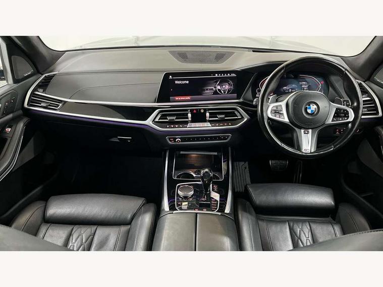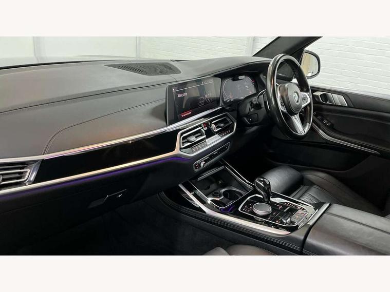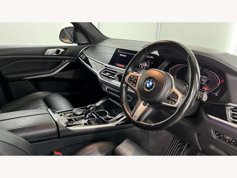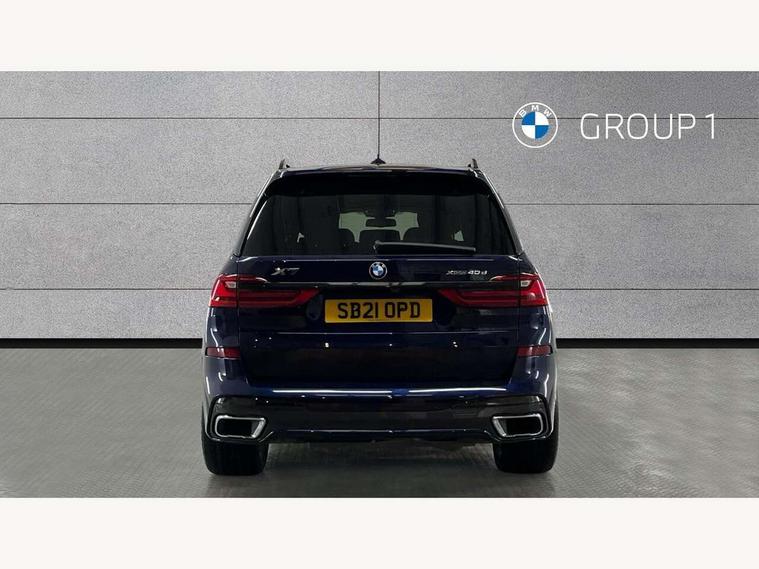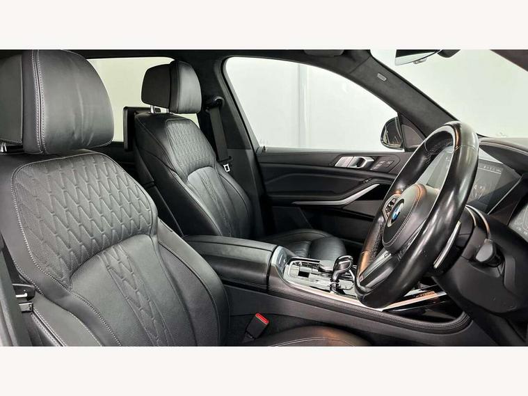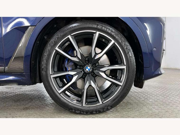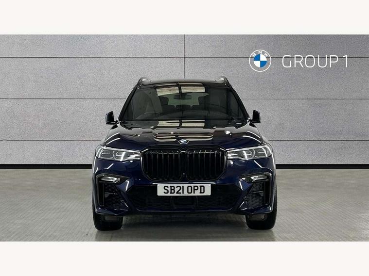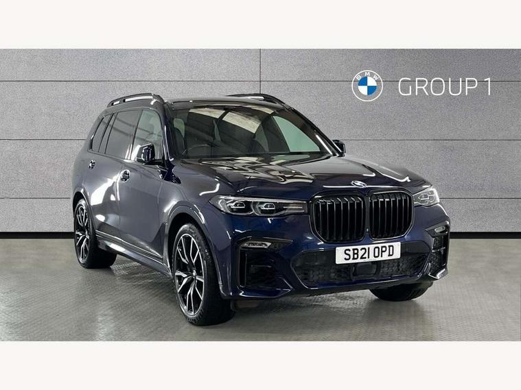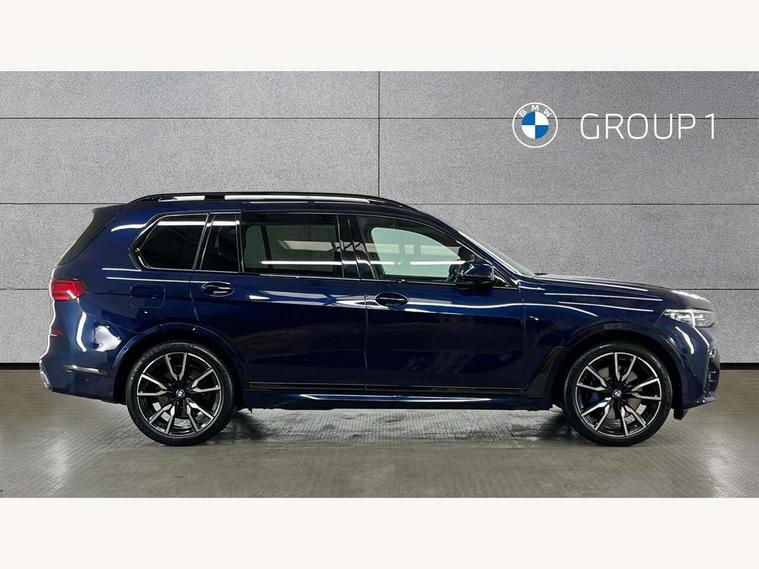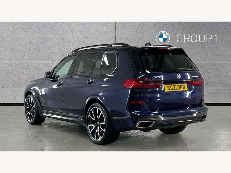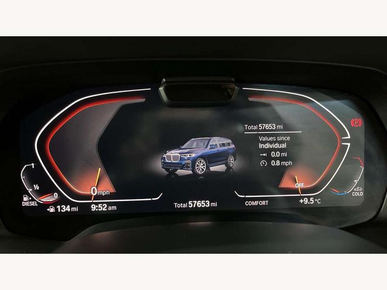 20GB hard disc drive (HDD) memory, Active guard plus, Attentiveness assist, Automatic tailgate operation, BMW digital live cockpit professional - 12.3" digital instrument panel and 12.3" CID + Intelligent personal assistant, BMW Drive recorder, BMW Head up display, BMW legal emergency call, BMW Online services, BMW Teleservices, Brake force display, Brake pad wear indicator warning light, Connected drive services, Enhanced bluetooth hands free facility with Telephony wireless charging, iDrive touch controller with shortcut buttons, Oil sensor for level and grade, On board computer inc. average speed, fuel consumption, liquid crystal Info display, journey computer, outside temperature display, personal profile, Parking assistant plus with reversing assistant, surround view system, review camera and active park distance control, Speed limiting function, Stop/start button, Wi-Fi hotspot, 48V Mild hybrid technology, 8 speed automatic with steptronic transmission including launch control and gearshift paddles on the steering wheel, Adaptive 2-axle air suspension, Diesel particulate filter, Double VANOS, Double wishbone front axle, Drive performance control with ECO PRO comfort + sport and adaptive mode, High precision injection, Twin scroll turbocharger with Valvetronic, 1 x USB A 1.5A in cupholder, 1 x USB C 3A in centre armrest & 1 x double USB C 3A in rear end of console for 2nd seat row, DAB tuner, Favourite buttons, Gesture control for infotainment system, Acoustic glazing, Active Air Stream kidney grille with high-gloss chrome, Door sill finishers with M designation, Dynamic brake lights with LED technology, Exhaust tailpipes - single, left and right with M Sport-geometry Chrome finishers, Follow me home headlight function, Frameless interior mirror, Front and rear electric windows, Heated windscreen washer jets, High beam assist, LED daytime running lights, LED fog lights, LED rear lights, LED third brake light in rear spoiler, M designation on left and right front side panels, Rain sensor with automatic headlight activation and windscreen wiper control, Welcome light carpet, X7 on left tailgate, xDrive and engine designation on right tailgate, 12V - Power sockets with 2x centre console and 1x luggage compartment, 3rd row seats, Ambient interior lighting with 6 pre-designed selectable lights including dynamic function, Centre console includes storage compartment, Compartment in front of cupholder, Electrical steering column with adjustable height and length with activation and control on the steering column, Foldable rear centre armrest with 2 cupholders and storage compartment, Front and rear cupholders x 2, Front and rear door pockets, Front and rear door sill inlays with illuminated BMW M designation, Front and rear seat heating, Front and rear side armrests integrated into door trim, Front footwell lights, Front reading lights, Grab handles, Headrests for all seats, Light inside glove compartment, Lockable glove compartment, Luggage compartment floor panel with integral storage tray, M leather steering wheel, M specific key, M specific steering wheel, Make-up mirror lights, Microfilter and active carbon filter, Multifunction controls for leather steering wheel, Multifunctional hooks, Rear centre interior light, Seat back with flap pocket, Soft close function for doors, Sunvisors with illuminated vanity mirrors, Toolkit located in luggage compartment, Velour floormats, Connected Package Professional - X7, Expanded exterior mirror pack - X7, Luggage compartment pack - X7, M aerodynamics pack - X7, Active protection, Airbags - driver, front passenger, front and side head airbags for first and second row seats knee airbag, Anti-lock braking system (ABS), Automatic Stability Control (ASC), Brake energy regeneration, Child seat ISOFIX attachment rear outer seats in 2nd row and both seats in 3rd row includes top tether, Comfort cushion, Crash sensor and Safety battery terminal clamp, DSC - Dynamic Stability Control, Dynamic Traction Control - DTC, Electromechanical parking brake with automatic drive away release and auto hold function, Front and rear brake discs with interior ventilation, M Sport braking system, Mechanical child proof lock on rear doors, Passive protection for pedestrians, Seat occupancy detection for driver and passenger side, Side impact protection, Split folding 2nd row seating with 40:20:40 configuration, Three point rear seat belts, Two tone horn, Tyre pressure monitoring system, Warning triangle and first aid kit, Closing system with central locking, Comfort access system, Driver and front passenger door centre lock switch, Locking wheel bolts, Thatcham 1 alarm system with remote control and engine immobiliser, Vehicle key with M specific designation, BMW Individual leather finished instrument panel, Galvanic embellisher for controls, Sensatec instrument panel,