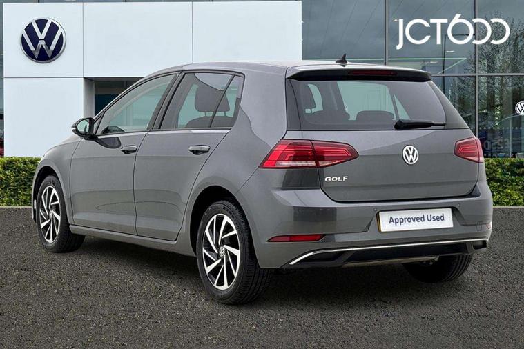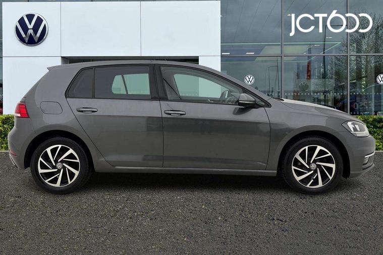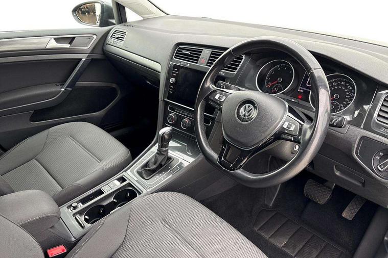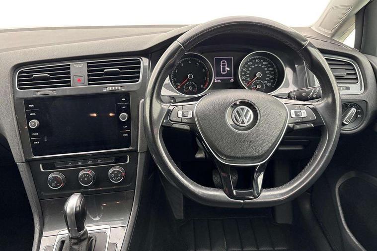 'Lights On' Reminder warning buzzer, ACC - Adaptive cruise control with front assist, forward collision warning, distance monitoring, city emergency brake and speed limiter, Bluetooth telephone and audio connection for compatible devices, Brake pad wear indicator warning light, Driver alert system, Driver profile selection, Driving Mode Selection with four preset modes - Eco, normal, sport or individual modes, Instrument cluster in white, Multifunction computer with visual gear change recommendation for fuel consumption, Power assisted speed sensitive electro-mechanical steering, Push tank flap, Speed limit display, Speedo, rev counter, electronic odometer, trip, service interval display, exterior temperature and fuel gauge, Stop/start system, Warning buzzer and light for front seatbelts unfastened, Battery regeneration during braking, XDS electronic differential lock, Composition media system, DAB Digital radio receiver, Driver Personalisation profile selection, MP3/WMA compatability, Multi device interface (MDI) with USB connection, Personalisation 1.1 profile for media, Premium USB cable in choice of either Apple or Android smartphone compatibility, SD card slot, SMS Functionality, USB and SD card connectivity, Black front air intake and radiator grille with chrome insert, Black rear diffuser, Body colour bumpers, Body colour door handles, Body colour door mirrors with integrated indicators, Dusk sensor + automatic driving lights, Electric front windows, Electric rear windows, Electrically adjustable and heated door mirrors, Fully galvanised body, Heated rear windscreen, Hidden exhaust pipe, High level 3rd brake light incorporating LED Technology, LED daytime running lights, LED front fog lights with static cornering light function, Rear fog lamp, Rear tinted glass 65% light absorbing from B pillar backwards, Rear window aerial, Rear window wash/wipe with intermittent wipe, Reflectors in all doors, Tailgate with integrated rear roof spoiler, Windscreen wipers/ intermittent wipe + 4 position delay, 12V socket in luggage compartment, 3 rear headrests, 4 load lashing points in luggage compartment, 60/40 split folding rear seat backrest, Auto fold down lever in rear seat backrest, Bag hook in luggage compartment x 2, Cooled glovebox, Cupholder cover, Dust/pollen filter, Front and rear reading lights incorporating LED technology, Front centre armrest with storage compartment and two rear air vents, Front seat back storage pockets, Grab handles front x 2, rear x 2 with integrated coat hooks, Height and reach adjustable steering wheel, Illuminated vanity mirrors, Instrument lighting white adjustable panel illumination, Interior light delay, Isofix preparation for 2 rear child seats, Load through provision with rear centre armrest and cupholders x2, Luggage compartment lighting, Overhead storage box, Passenger underseat drawer, Pearl grey headlining, Storage box in luggage compartment, Storage compartment in roof console with cover, Storage compartments in centre console, Storage compartments in front doors, Storage compartments in rear doors, Stowable luggage compartment cover, Sun visors, Variable boot floor, height adjustable and removable, Convenience Pack - Golf, Light and Sight pack - Golf, Mirror pack - Golf, 3 rear three point seatbelts, Airbags - Driver's and front passenger's, curtain airbag, Driver's knee, front side impact and passenger's airbag deactivation switch, Anti-lock Braking System (ABS) with Hydraulic Brake Assist (HBA), Automatic post collision braking system, Child locks on rear doors, Driver/Passenger optimised head restraints, Electronic parking brake with auto hold, Electronic stability control (ESC) including Electronic differential lock (EDL) and ASR (Traction control) with deactivation via infotainment system, Front ventilated disc brakes and rear disc brakes, Pre crash preventive occupant protection, Three point height adjustable front seatbelts with tensioners, Tyre pressure loss indicator, Alarm with interior protection and deactivation via infotainment system, Electronic engine immobiliser, Remote central locking with 2 remote folding keys, Brushed dark silver decorative inserts in dash and door panels, Chrome plated air vent surround, Chrome plated electric mirror adjustment light switch surround, Polar night black centre console, Steel space saver spare wheel,