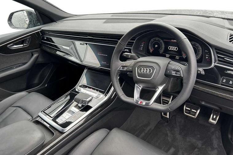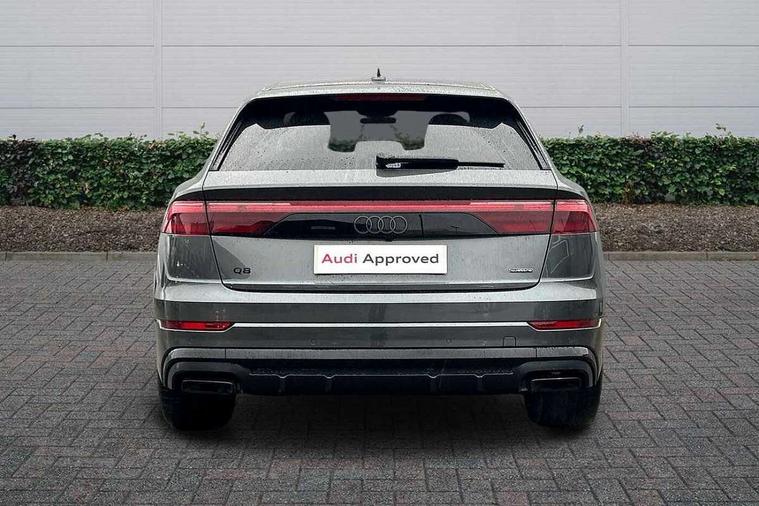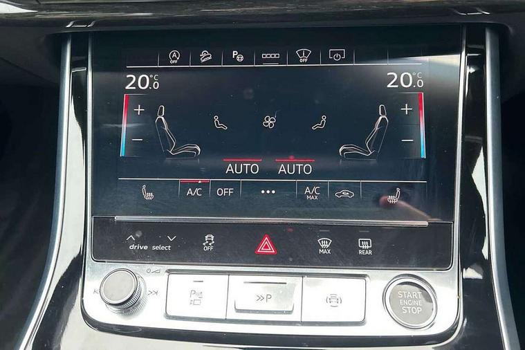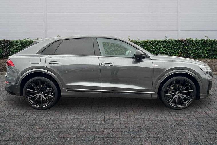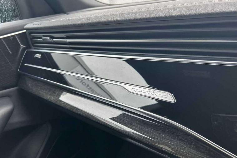 10.1" and 8.6" Dual colour touchscreens, Audi application store, Audi connect safety and service (e-call), Audi connect with Amazon Alexa Integration, Audi drive select, Audi parking system plus includes 360 degree display with front and rear sensors, Audi phone box light with wireless charging, Audi virtual cockpit - 12.3" high resolution LCD display with fully customisable instrument cluster, Automatic start/stop system, Bluetooth, Electro-mechanical PAS, Low washer fluid indicator, MMI navigation plus with MMI touch, Natural voice recognition, On board computer, Operating buttons in black, glass look with haptic feedback, Power operated tailgate, Rear view camera, Service interval indicator, Smartphone interface includes wireless Apple carplay/Android Auto, 48V Mild hybrid technology, Adaptive sport air suspension, Diesel particulate filter, Quattro all wheel drive with self locking centre differential, Audi music interface with 2 USB ports with charge and data functions, Audi sound system with 6 channel amplifier, 180 watt amplifying capacity and 10 loudspeakers including subwoofer, Aux-in socket, DAB Digital radio, 3rd brake light, Audi beam, Auto dimming frameless rear view mirror, Black exhaust tailpipes, Black single frame mask, Coming/leaving home lighting function, Electric front+rear windows, Electrically folding auto dimming/adjustable/heated door mirrors with memory function, LED side indicators and kerb view function for passenger side, Headlight washers, Heat insulating glass in windshield, LED rear light plus, LED signature daytime running lights, Loading edge protection in stainless steel, Matrix LED headlights with dynamic front and rear indicators, Platinum grey front spoiler lip and diffuser insert with honeycomb grille in black, Privacy glass - dark tinted rear and rear side windows from B-pillar backwards, Rain and light sensors, Rear side wing doors, Rear wiper, Singleframe grille surround in matte platinum grey, 2 zone automatic climate control, 3 bench rear seats in 2nd row, 4-way lumbar support for front seats, 40:20:40 split folding rear bench seat, Black cloth headlining, Comfort front centre armrest, Driver seat memory function, Electrically adjustable front seats, Front head restraints, Front/rear floor mats, Heated front seats, ISOFIX child seat mounting for front passenger seat and 2 outer rear seats with top tether child seat mounting for all 3 rear seats, LED interior ambient lighting, Luggage compartment sill protection in stainless steel, Rear centre armrest with 2 cupholders, Rear headrests, Seat cushion displaceable by 100mm in the ratio 60:40, Single front passenger seat, Stainless steel pedals, Sunvisors with illuminated vanity mirrors, Black styling pack plus - Q8, 3 point seatbelts on all seats, Audi pre sense front, Convenience key with safelock, Driver and front passenger, front side and curtain airbags, Electromechanical parking brake, Electronic Stability Control (ESC) including ABS, ASR and EDL, Front passenger airbag deactivation, Hill descent control, Hill hold assist, Predictive pedestrian protection, Seatbelt monitoring, Traction control, Tyre pressure loss indicator, Warning triangle and first aid kit, Anti theft alarm with tow away protection, Anti-theft wheel bolts and wheel loosening detection, Electronically operated child lock, Immobiliser, Keyless go with remote central locking, Polished oak trim with grey finish inlay, Tool kit, Tyre repair kit,