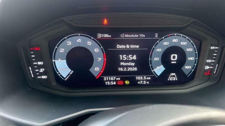 10.25" Digital instrument cluster display classis style instrument dials + speed, odometer, time, outside temperature, telephone menu + fuel level warning, Audi smartphone interface with connect compatible smartphone via USB directly MMI display + Nav, music, third party apps controlled via MMI controller, Automatic start/stop system, Bluetooth interface, Driver's information system, Electromechanical power steering, Emergency e-call, Emergency services call system, Lane departure warning system, Service interval indicator, Speed limiter, Voice control system, Washer fluid level indicator, Dynamic suspension, 1 x SDXC card reader, 2 x USB type C connection points, 6 passive loudspeakers, DAB Digital radio, MMI radio plus with 8.8" colour MMI display screen and MMI touch, Auto dimming rear view mirror, Body coloured bumpers, Body coloured door mirrors, Electric front and rear windows, Electrically adjustable, heated, folding door mirrors with integrated LED side indicator, Front side air inlets with front spoiler lip and rear diffuser in matt black grained, Heat insulating glass windscreen and side windows, Heated rear windscreen, High level LED brake light, LED headlights with LED rear lights + dynamic rear indicators + headlight adjustment and high beam, turning light + LED daytime running lights, Radiator grille in matt black, Rain and light sensors, Rear fog lights, Rear side wing doors, Rear wing door, Rear wiper, 12V socket in centre console with two cup holders, 3 rear seats with headrests, 3 seat bench in 2nd row, 3 spoke leather multifunction plus steering wheel, 40:60 Split folding rear seat or folded fully, Air vents, door handle recesses and centre console in black, Delta cloth upholstery, Driver and passenger seat with manual height adjust with forward and backwards adjustment, Front head restraints, Front passenger seat, Front/rear floor mats, Height and reach adjustable steering wheel, ISOFIX child seat mounting for front passenger and outer rear seats including top tether attachment point of outer rear seats, Leather gear knob with aluminium trim, Leatherette handbrake grip, Luggage compartment light with front and rear reading lights, Manual air conditioning, Titanium grey cloth headlining, Luggage compartment pack - A1, 3x3 point rear seatbelts, Audi pre-sense front with pedestrain and cyclist recognition, Brake assist function, Driver and front passenger airbag with front side and head airbags, Electronic Stability Control including ABS, EBD, ASR and EDL, Front passenger airbag deactivation switch, Hill hold assist, Manual rear child locks, Seatbelt height adjustment for front seats, Seatbelt monitoring, Tyre pressure warning light, Warning triangle and first aid kit, Anti theft alarm, Anti theft wheel bolts and loose wheel warning, Immobiliser, Remote central locking with 2 foldaway keys, Black inlays polygon structure, 15" 5 arm design alloy wheels,