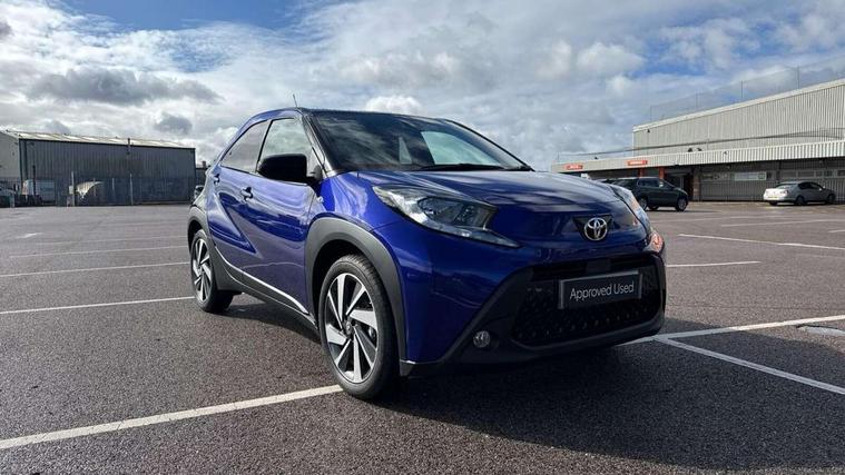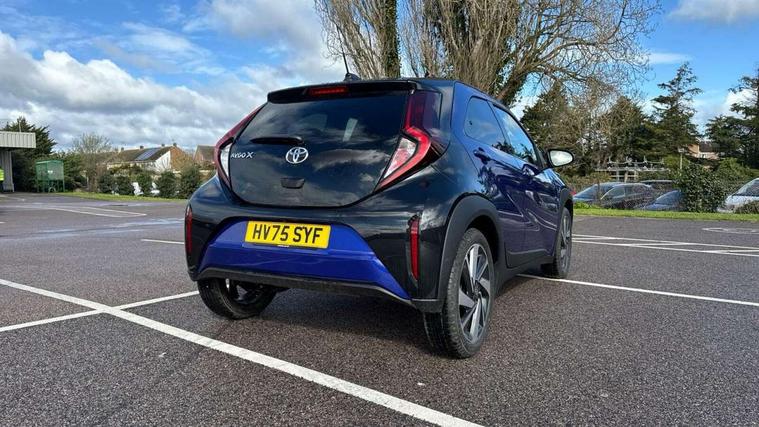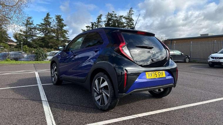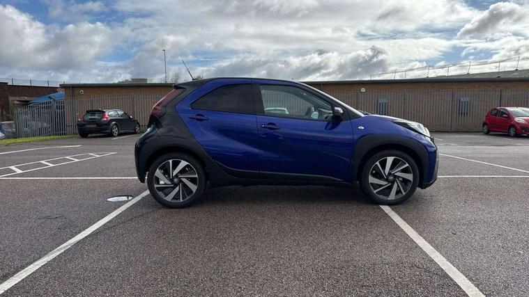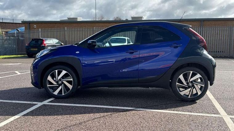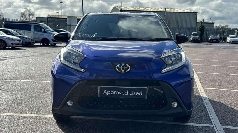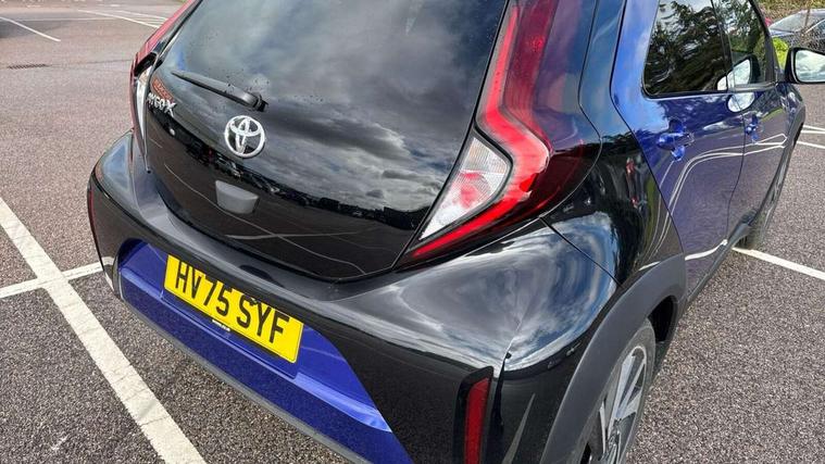 4.2" TFT colour screen, Adjustable speed limiter, Analogue speedometer, Bluetooth connectivity, Digital tachograph, Driver attention alert system, eCall emergency call system, Electric power steering, Intersection turn assist, Key reminder warning, Noise reduction kit, Pre collision system with emergency steering assist, Reversing camera with static guide lines, Smart phone integration with Apple car play/Android Auto, Speed limit display, Start and stop, Vehicle Stability Control (VSC), 4 speakers, 9" HD multimedia display touch screen with Toyota smart connect, DAB digital audio broadcast, USB connector, Auto headlights, Auto wipers, Automatic headlights cut-off, Bicycle towing hook, Black contrast roof, Black side protection mouldings, Black wheel arch mouldings, Body colour door handles, Body coloured front bumper, Boot door scuff plate, Eclipse black rear bumper, Electric heated door mirrors, Follow me home headlights, Front fog lights, Front power windows, Gloss black door mirrors, Gloss black upper front grille, Headlight cut-off reminder, LED daytime running lights, LED front light guide, LED High mounted stop lamp, Manual day/night rear view mirror, Manual headlight levelling, Pagoda roof, Power adjustable door mirrors, Power back door, Privacy glass, Projector halogen headlights, Rain sensor, Rear combination lights LED bulb type, Rear side wing doors, Rear windscreen defogger, Rear windscreen wiper, Short antenna, Variable intermittent windscreen wipers, 12v power outlet - front, 2 seat bench in 2nd row, 3 spoke leather steering wheel, 50/50 split folding rear seat, Adhesive roof headlining, Adjustable speed limiter switch on steering wheel, Audio and telephone switches on steering wheel, Auto air conditioning, Black insert on steering wheel, Black roof lining, Boot light, Centre room light, Chrome interior door handles, Chrome surround on air conditioning buttons, Clean air filter, Console box storage in body color, Fabric upholstery, Floor mats, Front and rear cup holders, Front head rest deco art, Front head restraints, Height adjustable driver seat, Intelligent adaptive cruise control switch on steering wheel, ISOFIX child restraint system on rear seats, Lane departure alert switch on steering wheel, Leather gearshift knob, Manual tilt steering wheel, Manually reclining and sliding driver seat, Manually reclining and sliding front passenger seat, Multimedia switches on steering wheel, Pollen filter, Rear door pockets, Rear head restraints, Satin silver insert on gear shift knob, Single compartment glovebox with lights, Single front passenger seat, Soft tonneau cover, Sun visors with mirror on driver and passenger side, Voice recognition switch on steering wheel, Toyota safety sense pack - Aygo X, Anti lock braking system + Electronic brake force distribution, Child safety door lock, Emergency brake light signal (EBS), Hill start assist control (HAC), Passenger airbag on/off switch, Seat belt reminder for front and rear seats, Supplement restraints system (SRS) - 6 airbags, Traction control, Tyre pressure warning system, Immobiliser, Remote power door locks, Black wheel centre caps, Tyre repair kit,