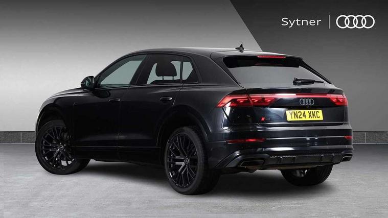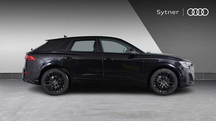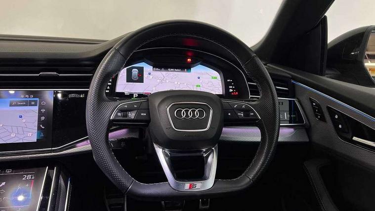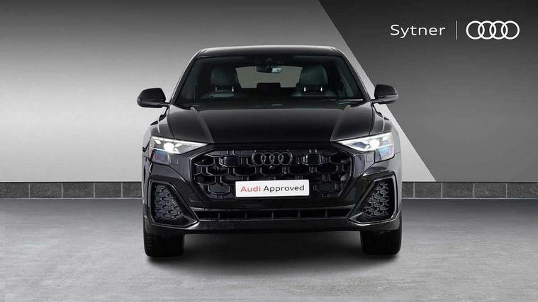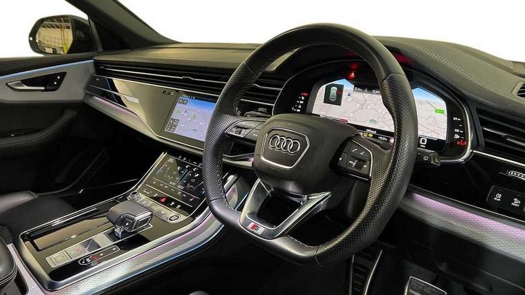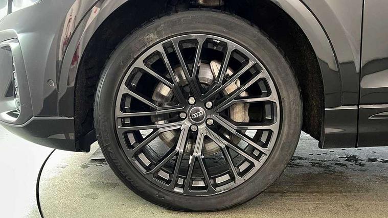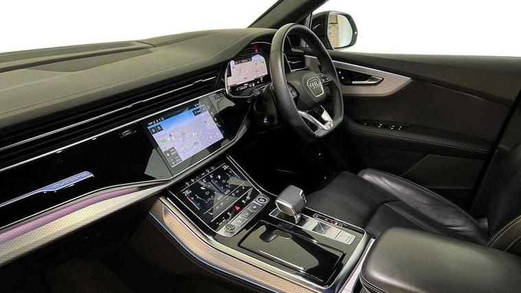 10.1" and 8.6" Dual colour touchscreens, 2 USB C ports with charging functionality in the rear, 360 degree camera with top view, Audi application store, Audi connect safety and service (e-call), Audi connect with Amazon Alexa Integration, Audi drive select, Audi phone box light with wireless charging, Audi smartphone interface includes wireless Apple carplay/Android Auto, Audi virtual cockpit plus, Automatic start/stop system, Bluetooth, Electro-mechanical PAS, Head up Display, Low washer fluid indicator, MMI navigation plus with MMI touch, Natural voice recognition, On board computer, Operating buttons in black, glass look with haptic feedback, Power operated tailgate, Remote park assist plus, Service interval indicator, 48V Mild hybrid technology, Adaptive sport air suspension, Diesel particulate filter, Quattro all wheel drive with self locking centre differential, Audi music interface with 2 USB ports with charge and data functions, Aux-in socket, Bang + Olufsen sound system, DAB Digital radio, 3rd brake light, Anthracite black door mirrors, Audi beam, Auto dimming frameless rear view mirror, Black exhaust tailpipes, Black single frame mask, Coming/leaving home lighting function, Digital OLED rear combination lamps, Electric front+rear windows, Electrically folding auto dimming/adjustable/heated door mirrors with memory function, LED side indicators and kerb view function for passenger side, Headlight washers, Heat insulating glass in windshield, LED rear light plus, LED signature daytime running lights, Matrix LED headlights with dynamic front and rear indicators, Platinum grey front spoiler lip and diffuser insert with honeycomb grille in black, Privacy glass - dark tinted rear and rear side windows from B-pillar backwards, Rain and light sensors, Rear side wing doors, Rear wiper, Singleframe grille surround in matte platinum grey, 3 bench rear seats in 2nd row, 3 spoke flat bottomed high multi-function leather sport steering wheel with gearshift paddles, 4 zone deluxe automatic climate control, 4-way lumbar support for front seats, 40:20:40 split folding rear bench seat, Black cloth headlining, Comfort front centre armrest, Driver seat memory function, Electrically adjustable front seats, Front head restraints, Front/rear floor mats, Heated front and outer rear seats, ISOFIX child seat mounting for front passenger seat and 2 outer rear seats with top tether child seat mounting for all 3 rear seats, LED interior ambient lighting, Luggage compartment sill protection in stainless steel, Rear centre armrest with 2 cupholders, Rear headrests, Seat cushion displaceable by 100mm in the ratio 60:40, Single front passenger seat, Stainless steel pedals, Sunvisors with illuminated vanity mirrors, Tool kit, Upper dashboard with contrast stitching and lower dashboard in leatherette, Black styling pack plus - Q8, City assist pack - Q8, Multi coloured extended LED Interior lighting pack - Q8, 3 point seatbelts on all seats, Audi pre sense front, Driver and front passenger, front side and curtain airbags, Electromechanical parking brake, Electronic Stability Control (ESC) including ABS, ASR and EDL, Front passenger airbag deactivation, Hill descent control, Hill hold assist, Predictive pedestrian protection, Seatbelt monitoring, Traction control, Tyre pressure loss indicator, Warning triangle and first aid kit, Advanced key, Anti theft alarm with tow away protection, Anti-theft wheel bolts and wheel loosening detection, Electronically operated child lock, Immobiliser, Decorative inserts in matte brushed aluminum with linear structure in Silver, 22" x 10.0J 10 spoke Y style black metallic audi sport alloy wheels, Tyre repair kit,