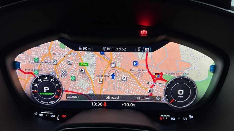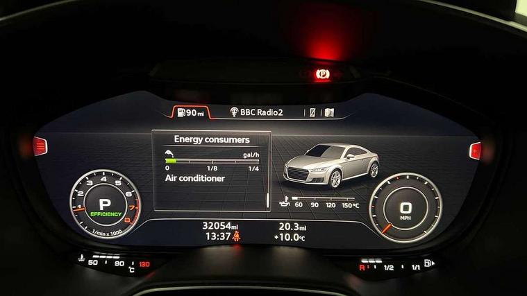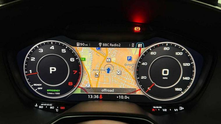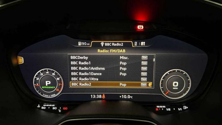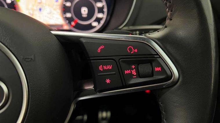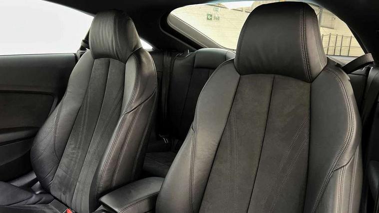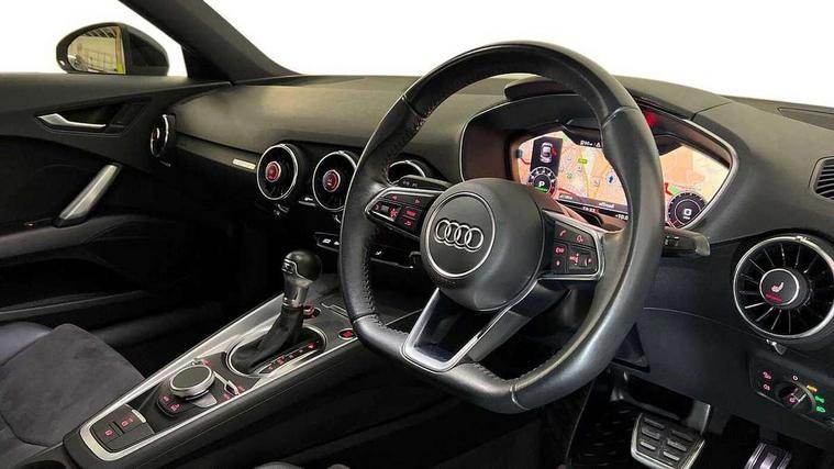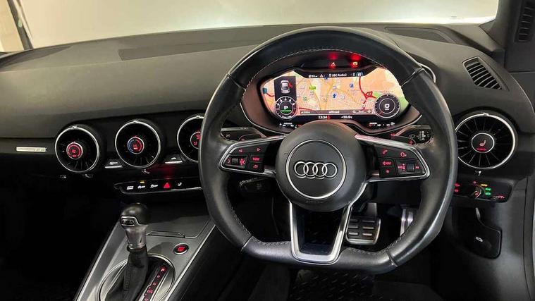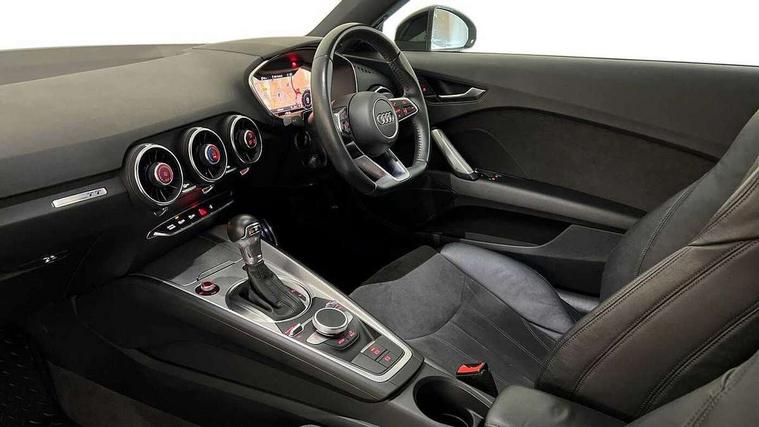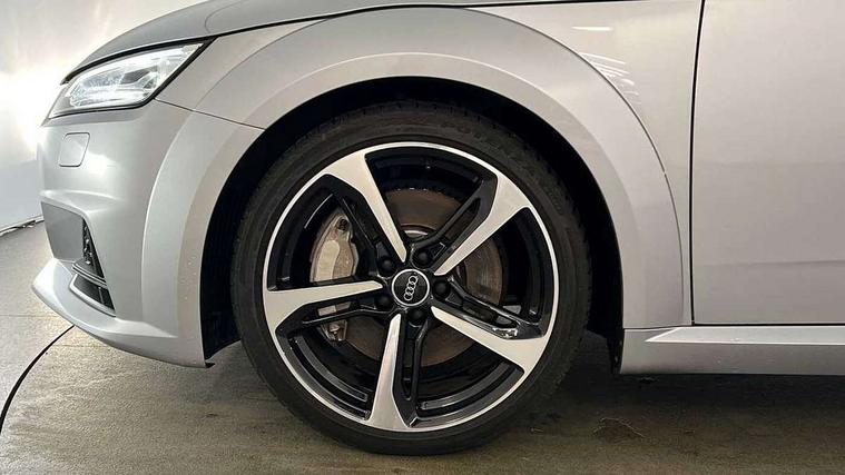 Audi drive select with 4 Pre configured modes, Audi smartphone interface, Audi virtual cockpit - 12.3" high-resolution LCD display with fully customisable instrument cluster, Cruise control + speed limiter, MMI touch panel, Mobile phone preparation with bluetooth interface, Progressive power assisted steering, Service interval indicator, Start/Stop system with energy recuperation, TP memo, Sports suspension, AM/FM radio, Bluetooth audio streaming, DAB Digital radio, MMI Radio with CD player and SD/XC card slot, Auto dimming rear view mirror, Electric folding door mirrors, Electric front windows, Electrically adjustable and heated door mirrors with integrated LED side indicators, Front fog lights, Green tinted heat insulating glass, Light and rain sensors, Retractable rear boot spoiler, Sunband for windscreen, Xenon headlights with LED daytime running lights with automatic headline range control + LED rear lights, brake lights and rear indicators, 12V socket, 3 spoke flat bottomed high multi-function leather sport steering wheel with gearshift paddles, Alcantara/Leather upholstery includes seat centre panels, door trim inserts in black Alcantara with side bolsters, head restraints in black leather, Aluminium door sill trims, Front centre armrest, Front sports seats, Heated front seats, Height adjustable driver's seat, Height adjustable front head restraints, Height/reach adjust steering wheel, ISOFIX child seat mounting for front passenger seat with airbag deactivation, Rear head restraints, Rear top tether child seat ISOFIX attachment, Split folding rear seat, Tool kit, Black styling pack - TT, Non smoking pack - TT/TT RS, 3 point front seat belts, ABS, ASR traction control, Curtain airbags, Driver and front passenger airbag with front passenger airbag deactivation, EDL traction control, Electromechanical parking brake, ESP, First aid kit, Front side airbags, Head airbags, Hill hold assist, Seatbelt warning, Tyre pressure loss indicator, Warning triangle, Anti theft alarm, Anti theft wheel bolts, Immobiliser, Keyless Go, Remote central locking, Aluminium design inlays, Tyre repair kit,
